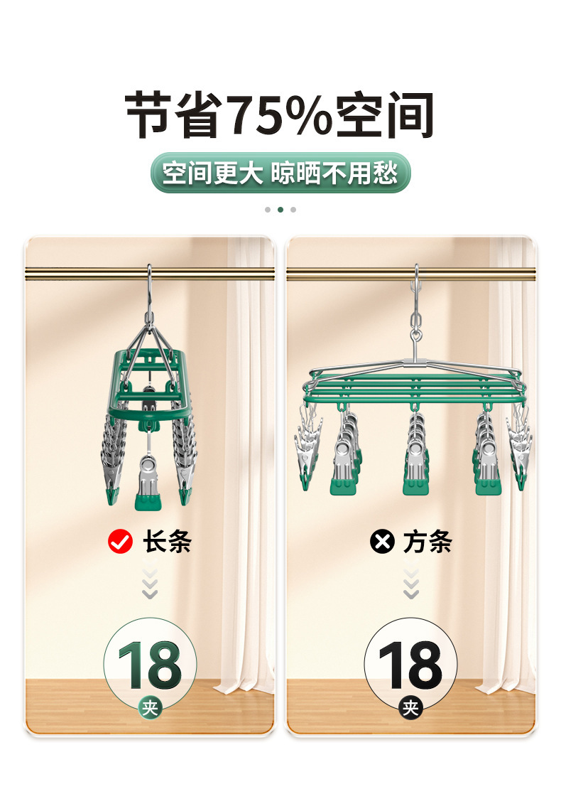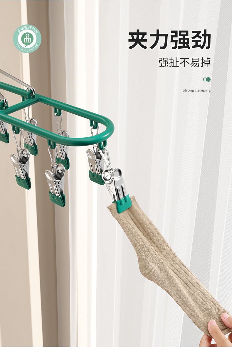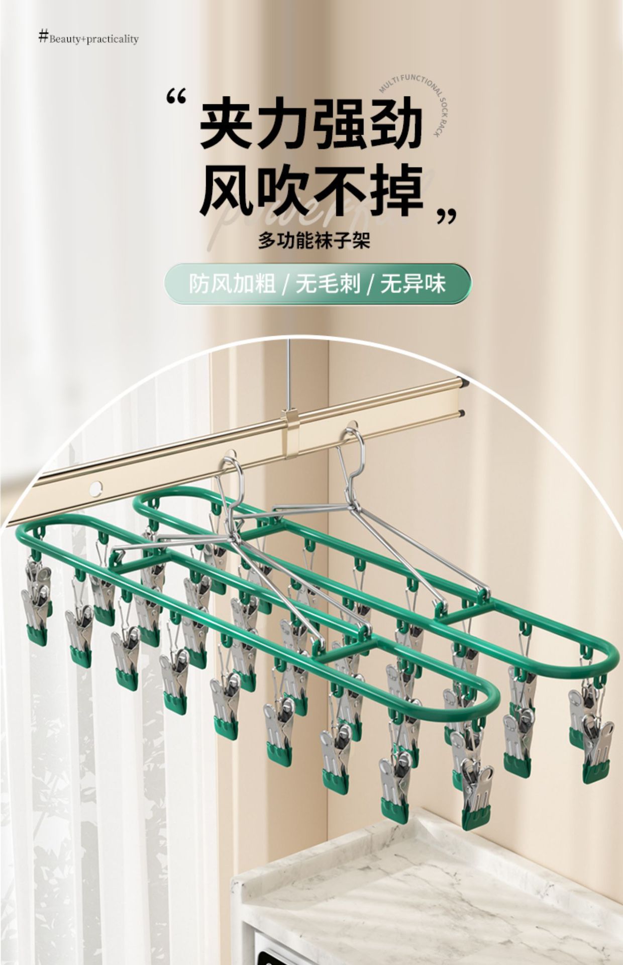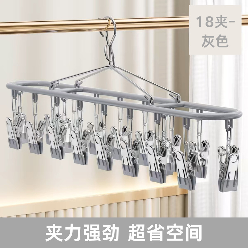 Многофункциональная ветрозащитная, компактная, без следов оставляющая следы сушилка для белья для домашнего использования, подходит для сушки носков и нижнего белья, нержавеющая сталь с защитой от ржавчины, с 18 зажимами.
