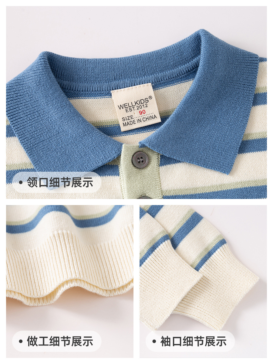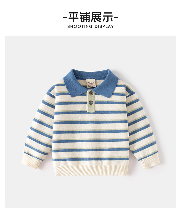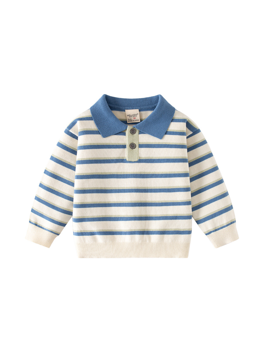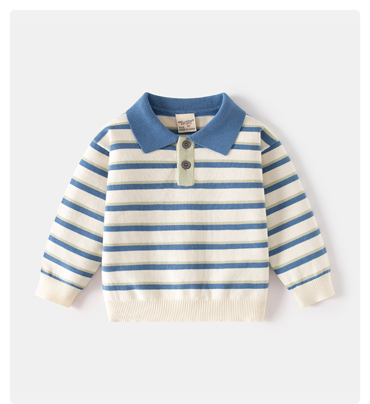 Детская одежда мальчик повседневный свитер ребенок весна и осень с отворотом свитер мальчик полосатый теплый топ прилив оптом