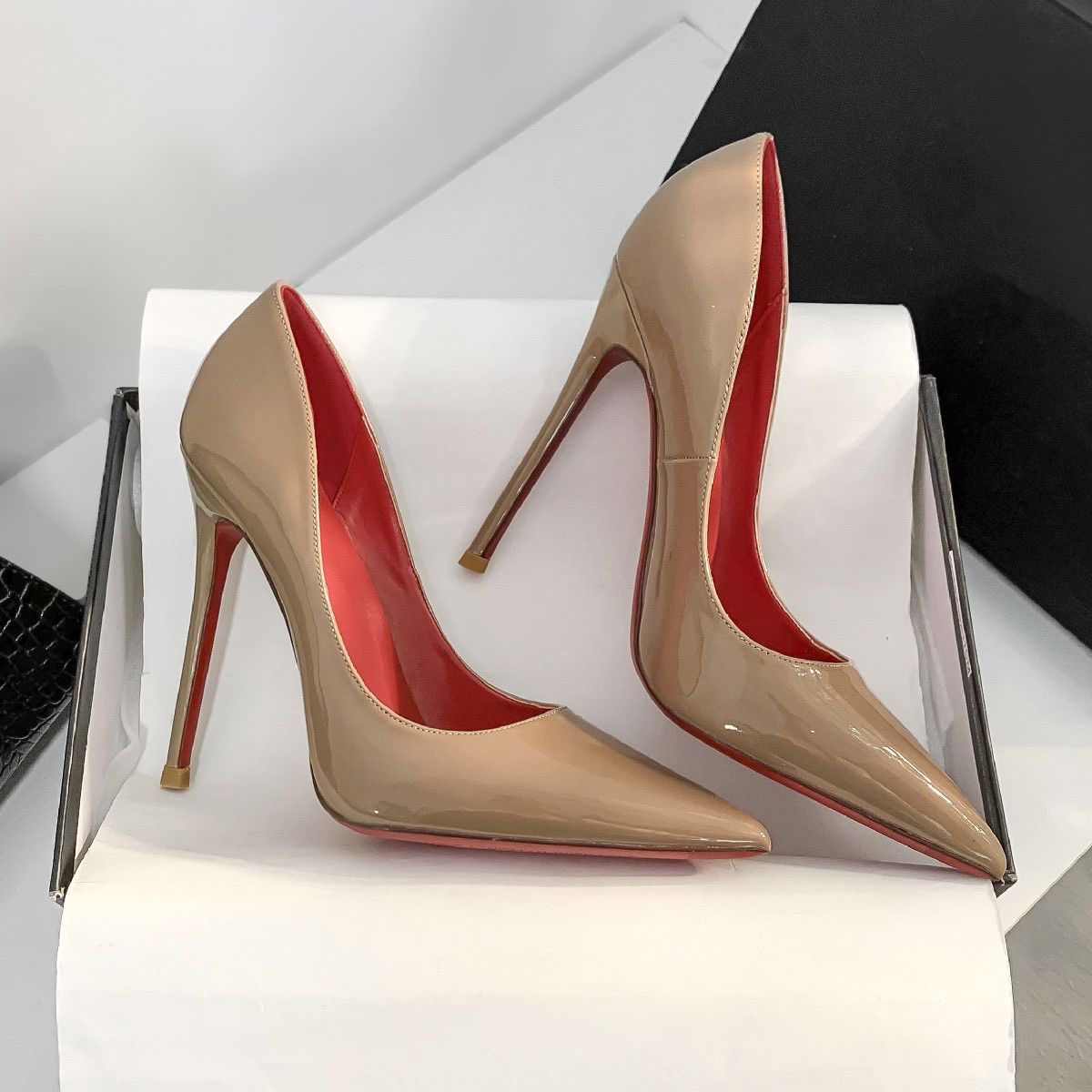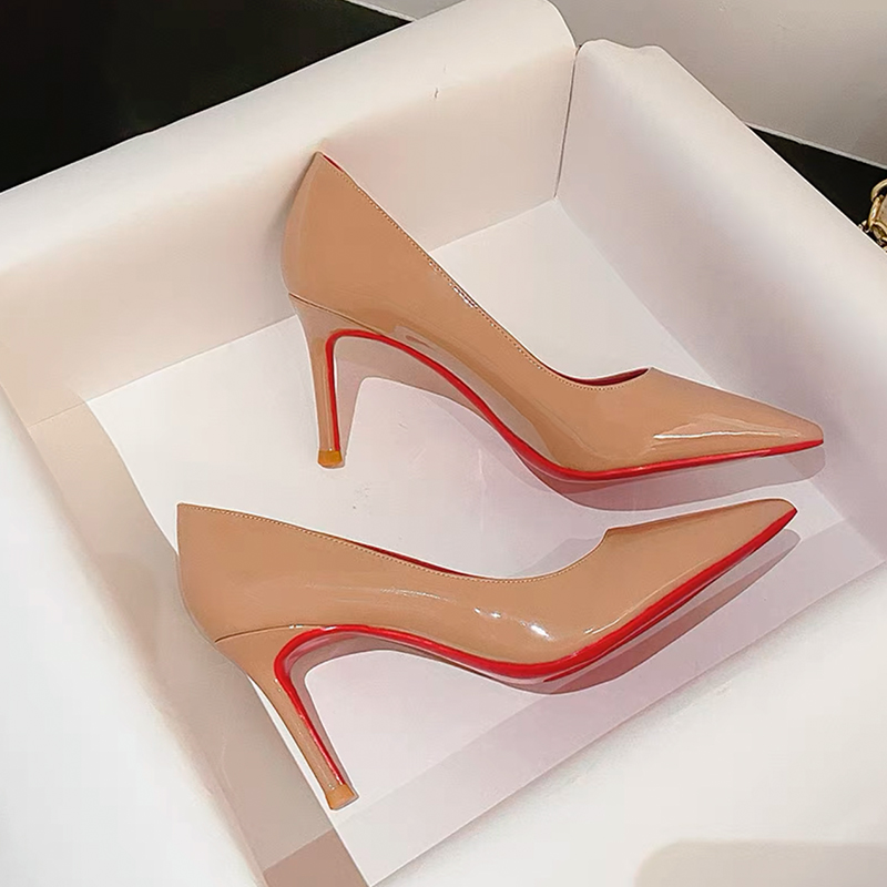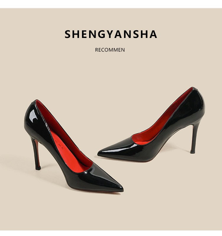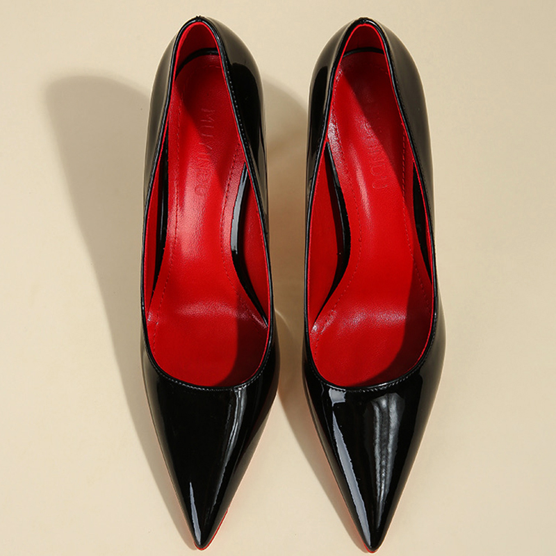 Европейские и американские острые туфли с тонким каблуком на тонком каблуке на красном фоне черные лакированные рабочие туфли 32-43 свадебные туфли