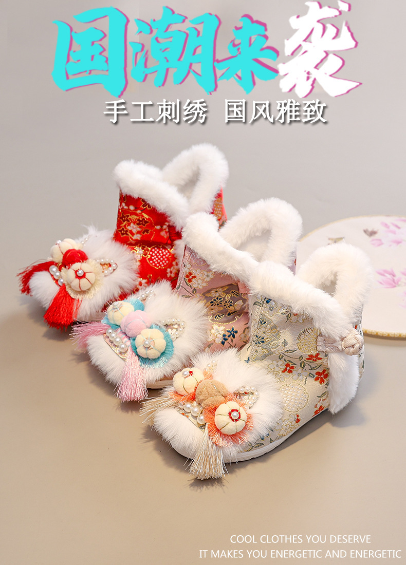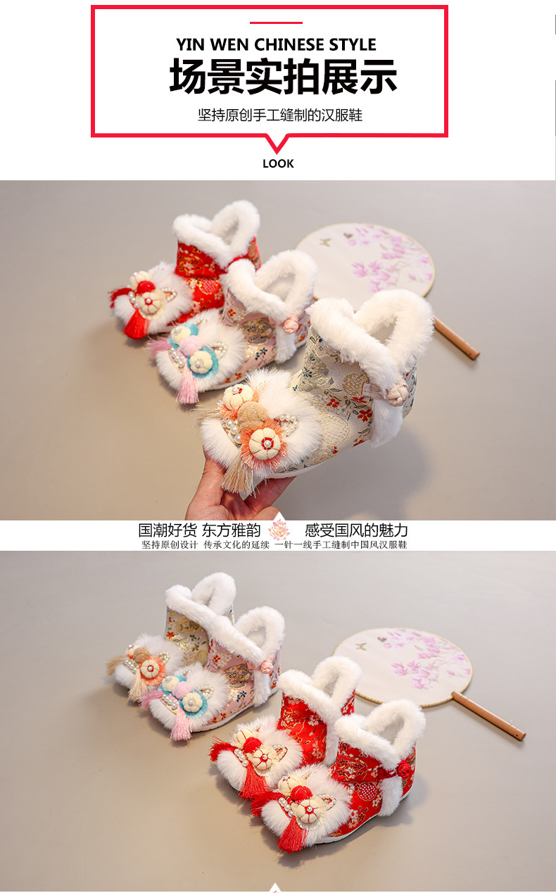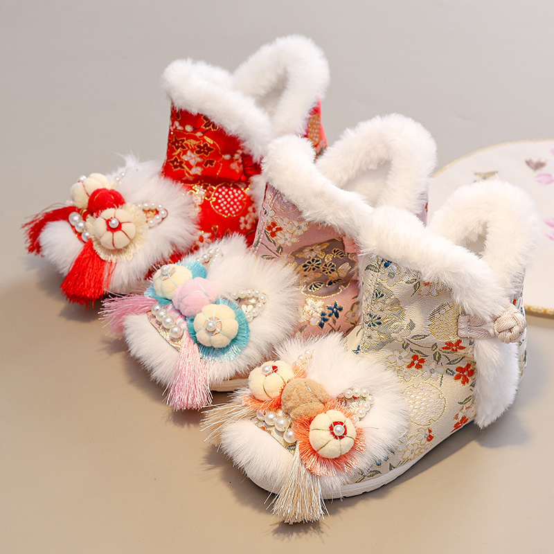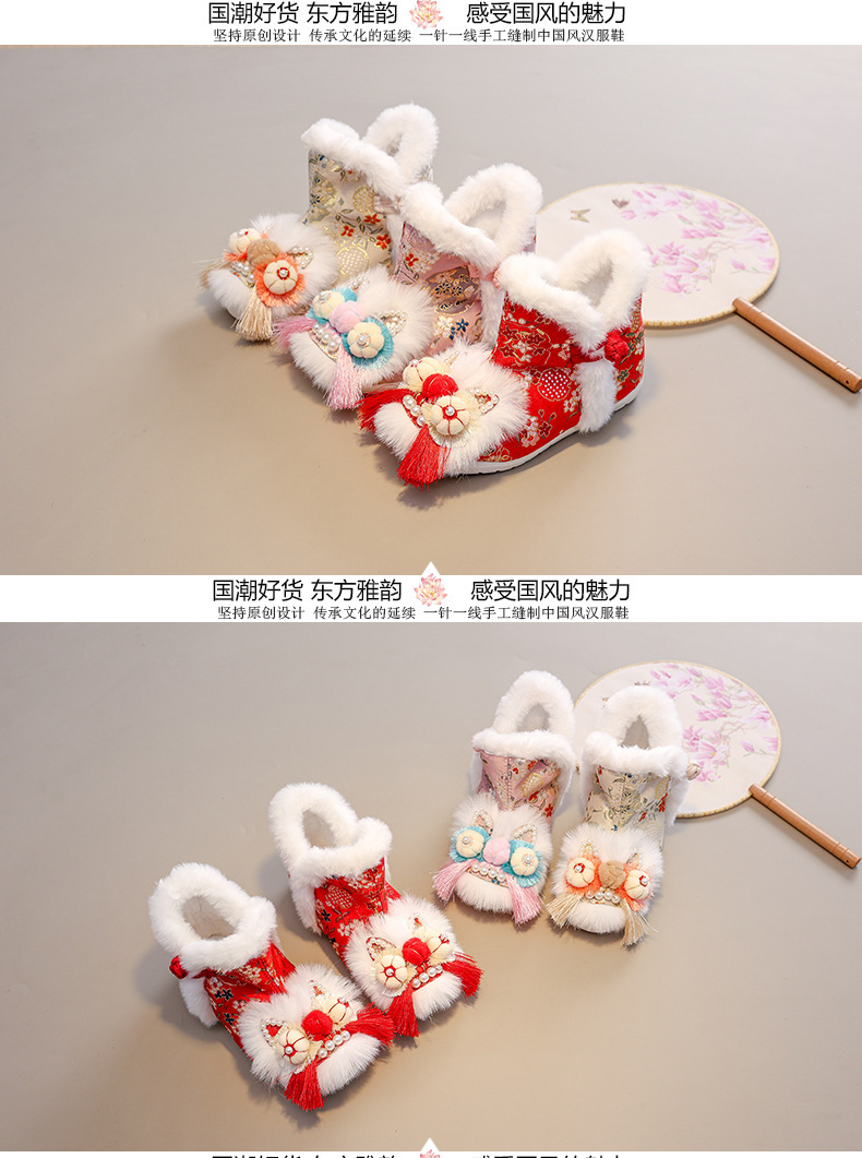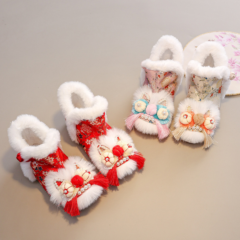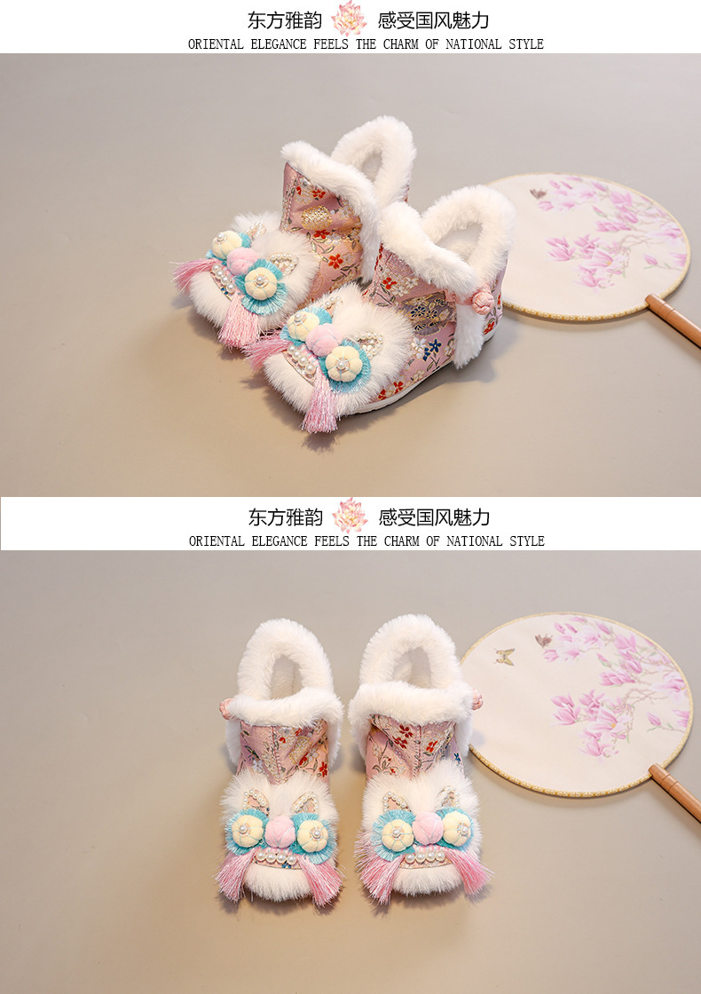 Тигровая обувь для девочек зимой плюшевая детская обувь Hanfu