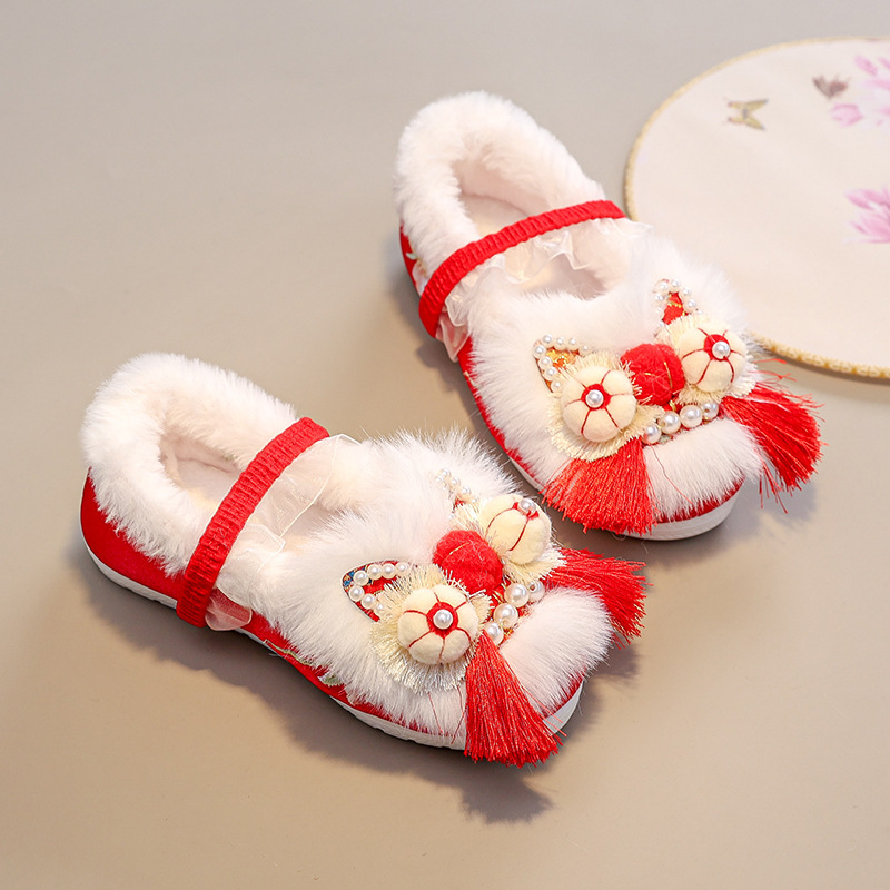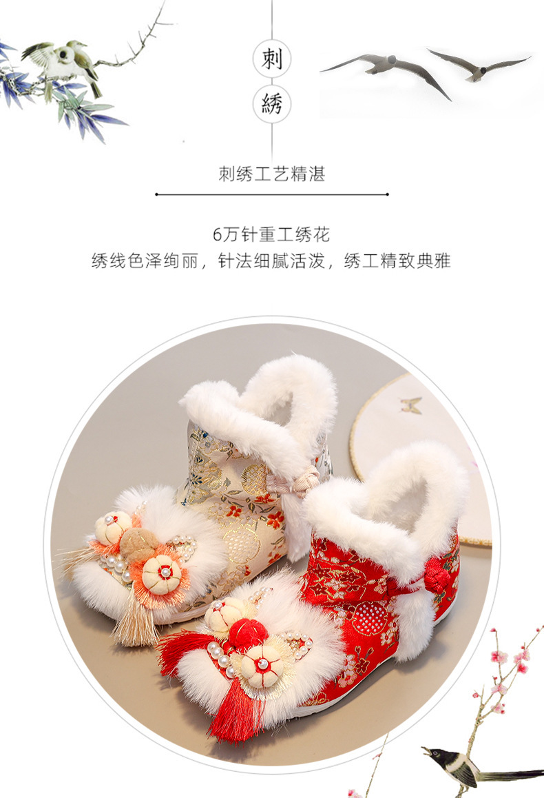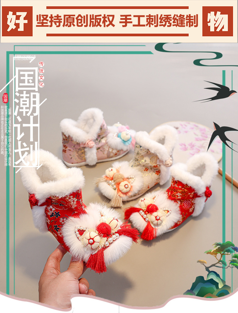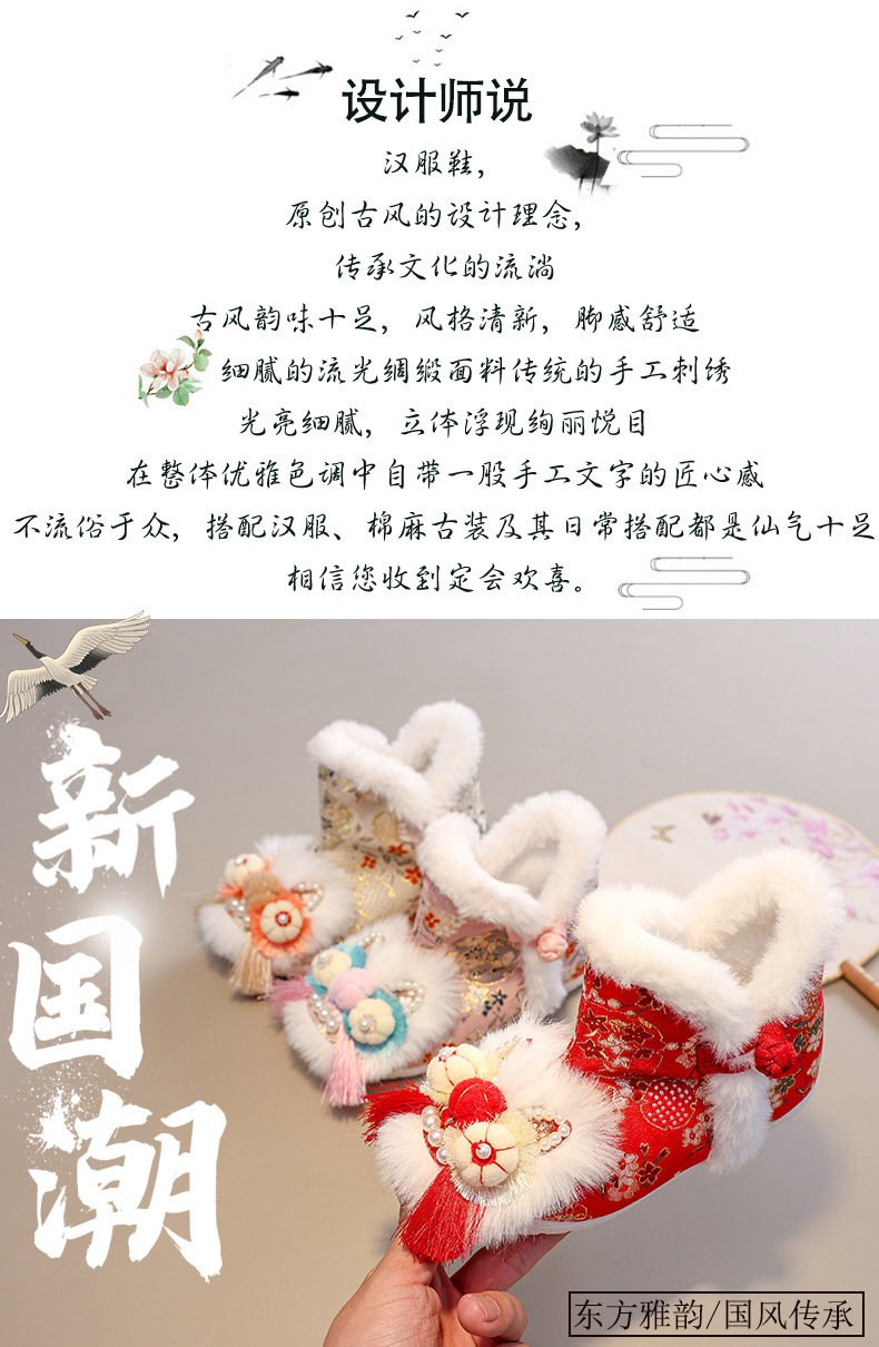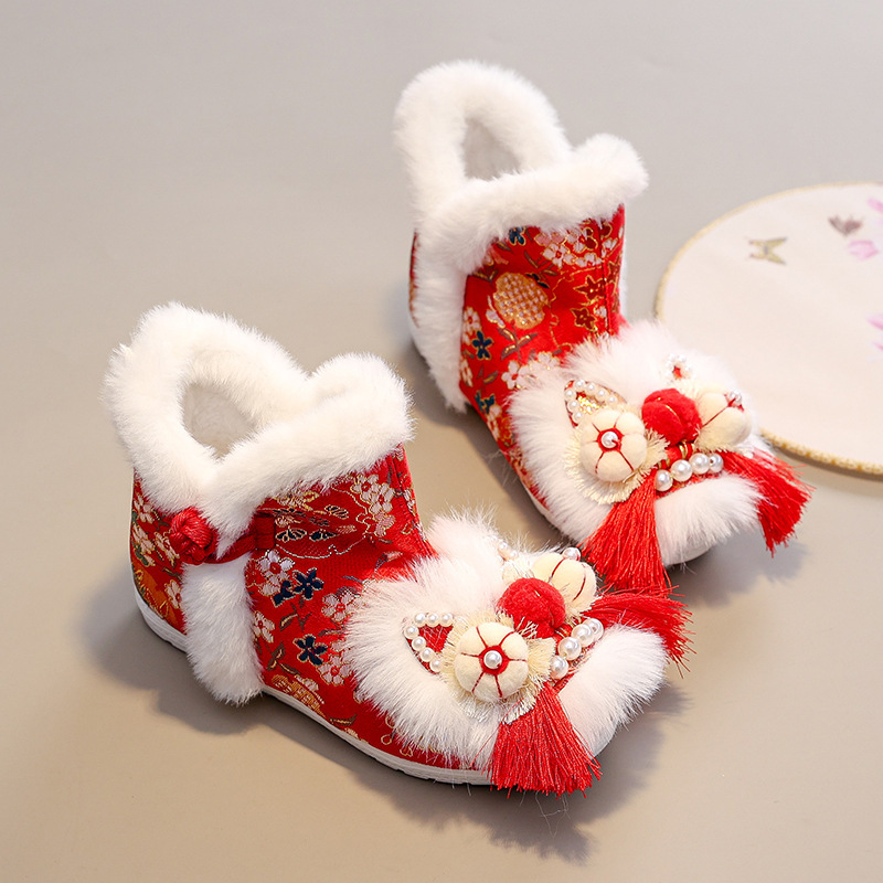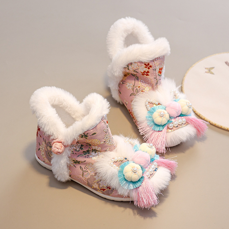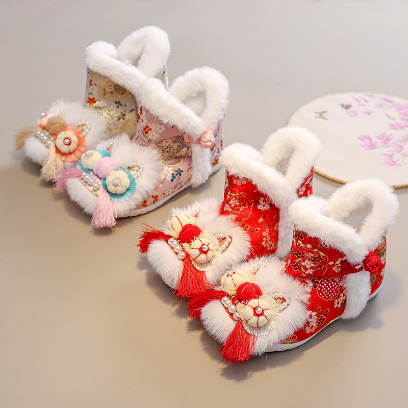 Тигровая обувь для девочек зимой плюшевая детская обувь Hanfu