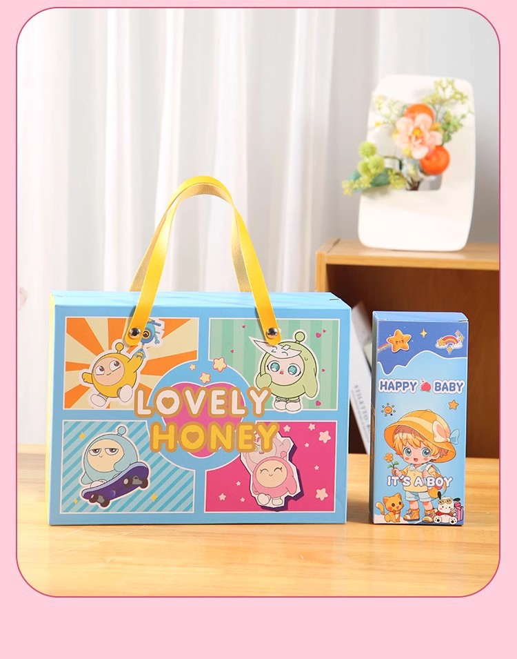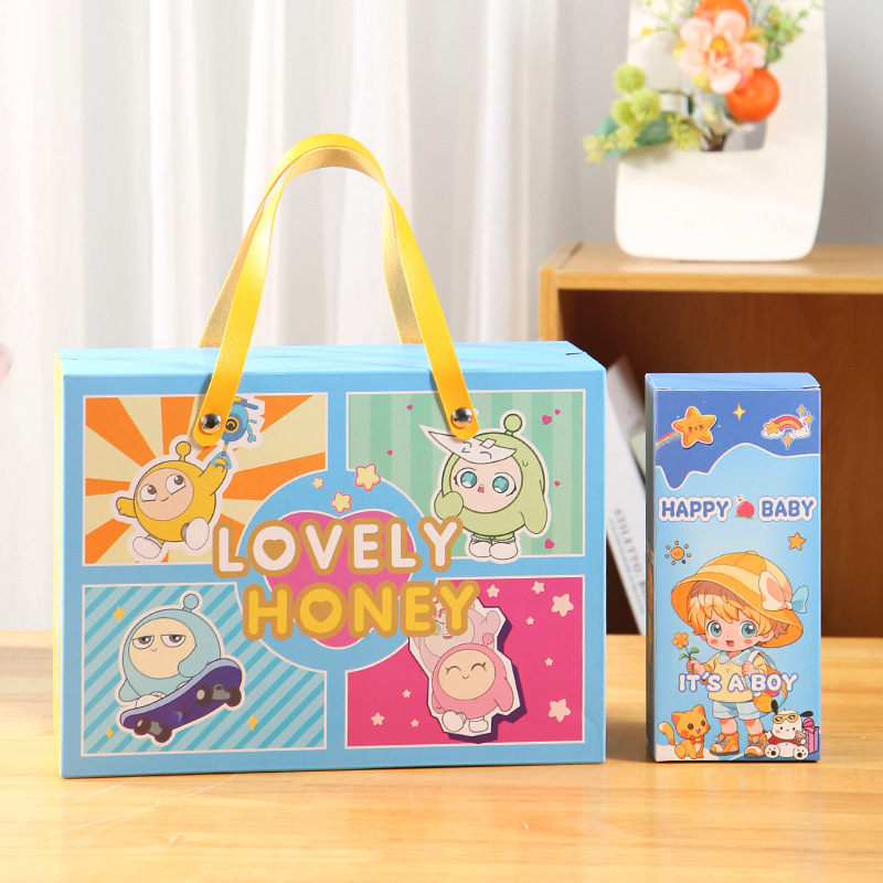 Подарочный набор на первый месяц жизни малыша, сумка из искусственной кожи, пустая подарочная коробка, подарочная коробка с мультяшным дизайном на десяточку дня рождения ребенка