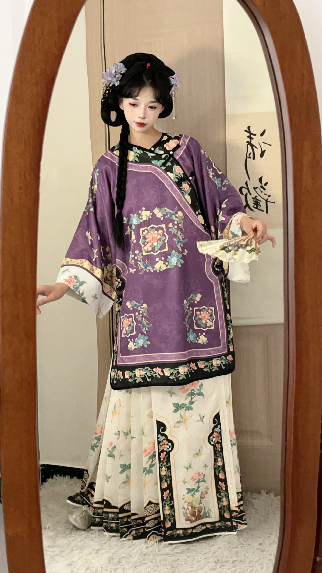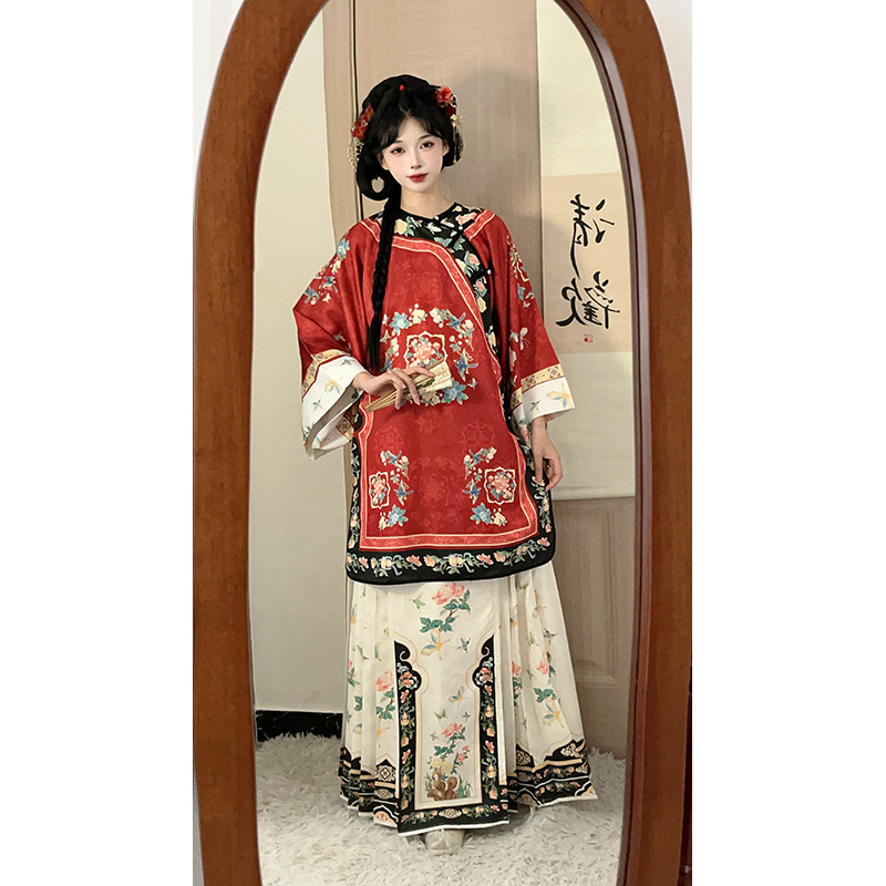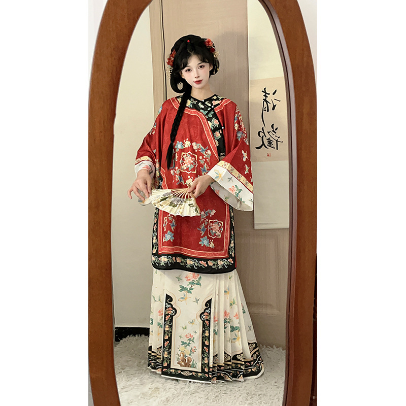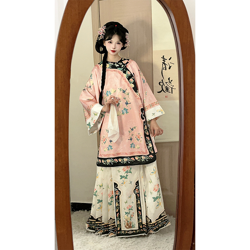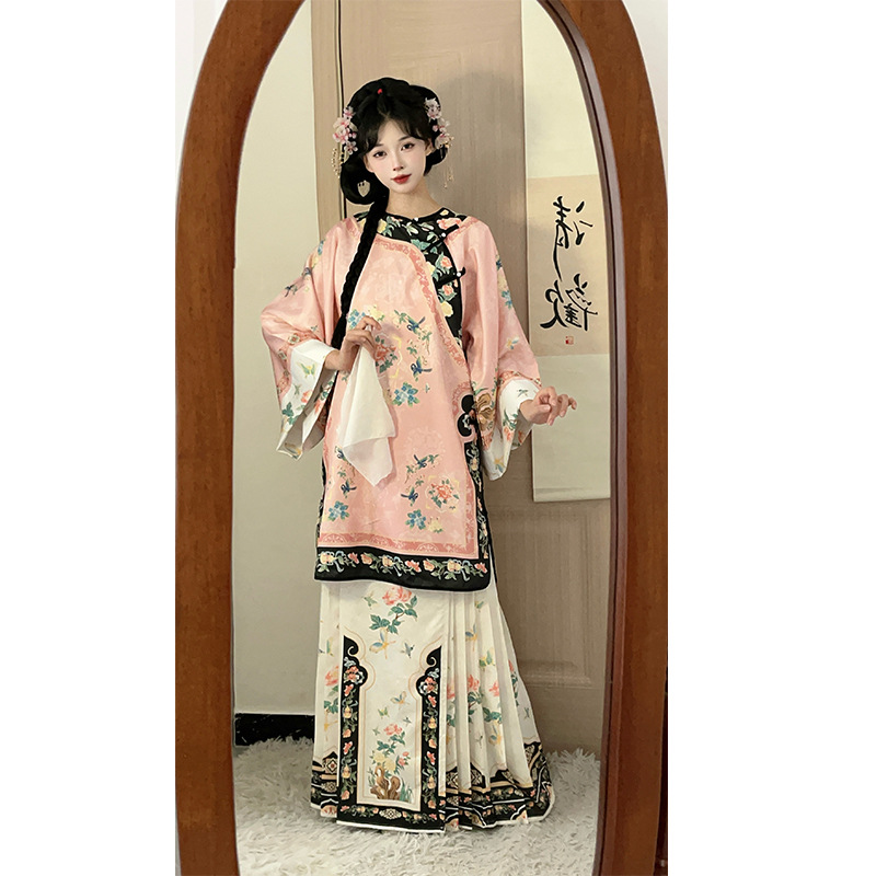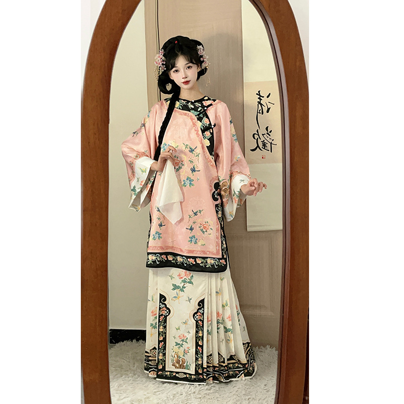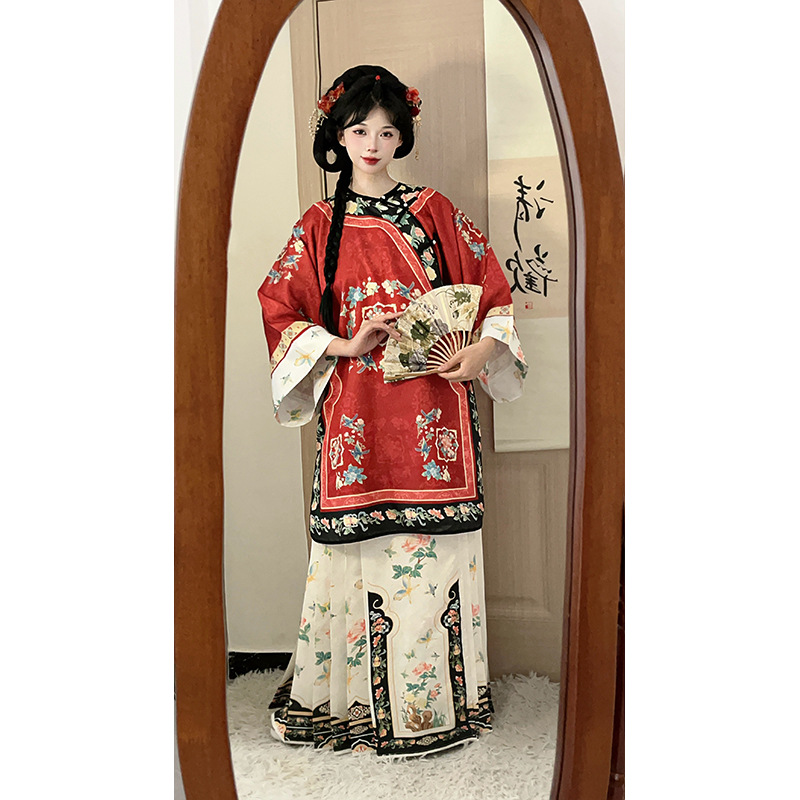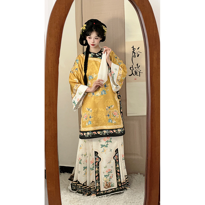 Новый осенний и зимний костюм в клетку Hanfu династии Цин с диагональным круглым вырезом