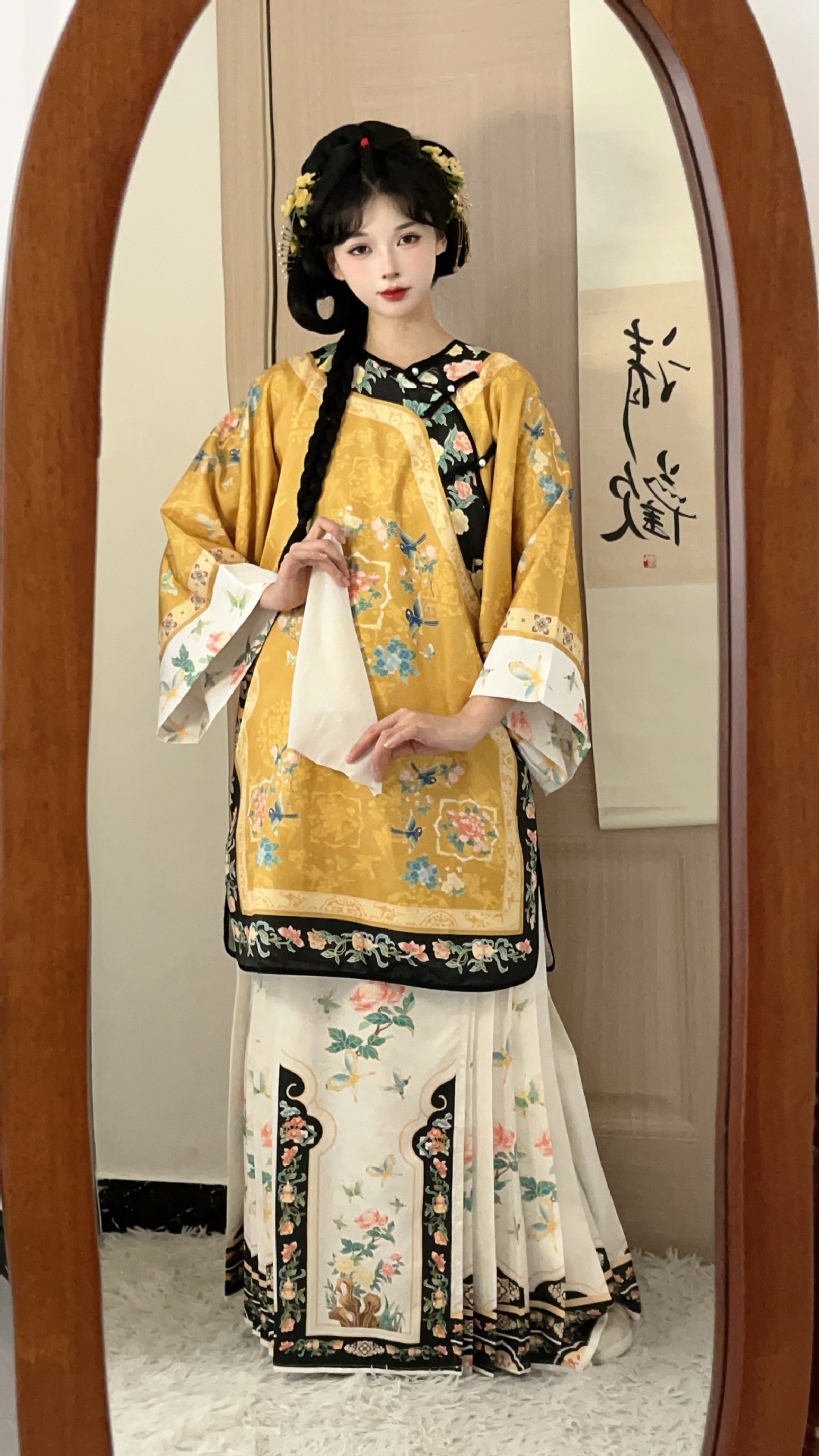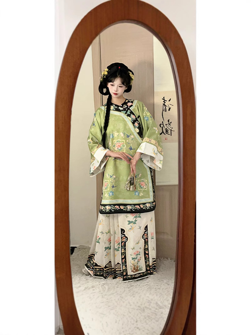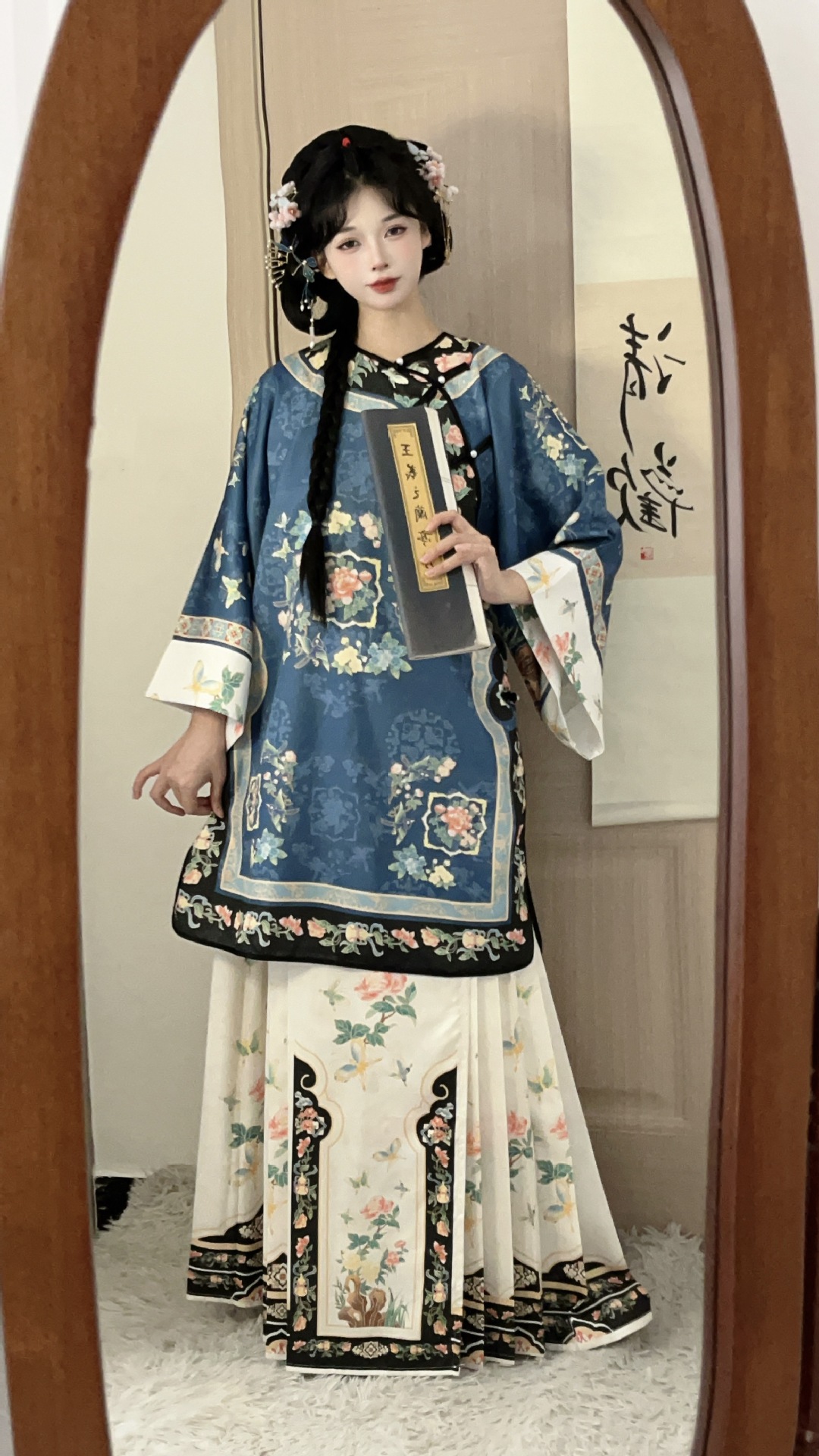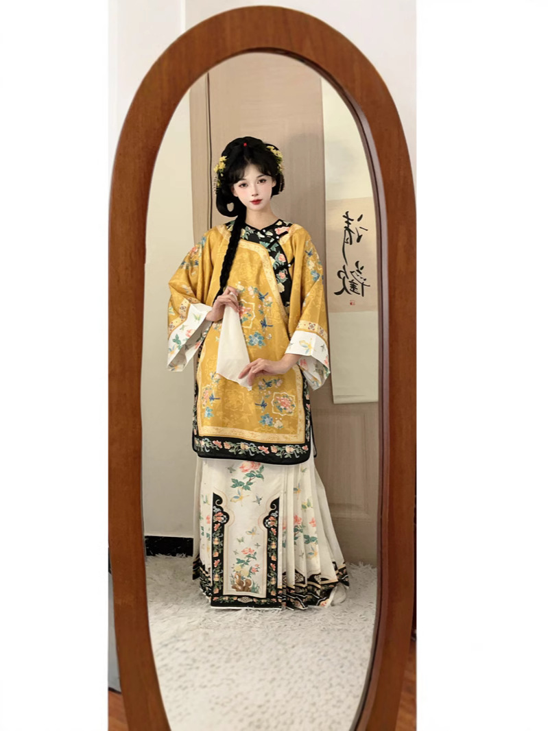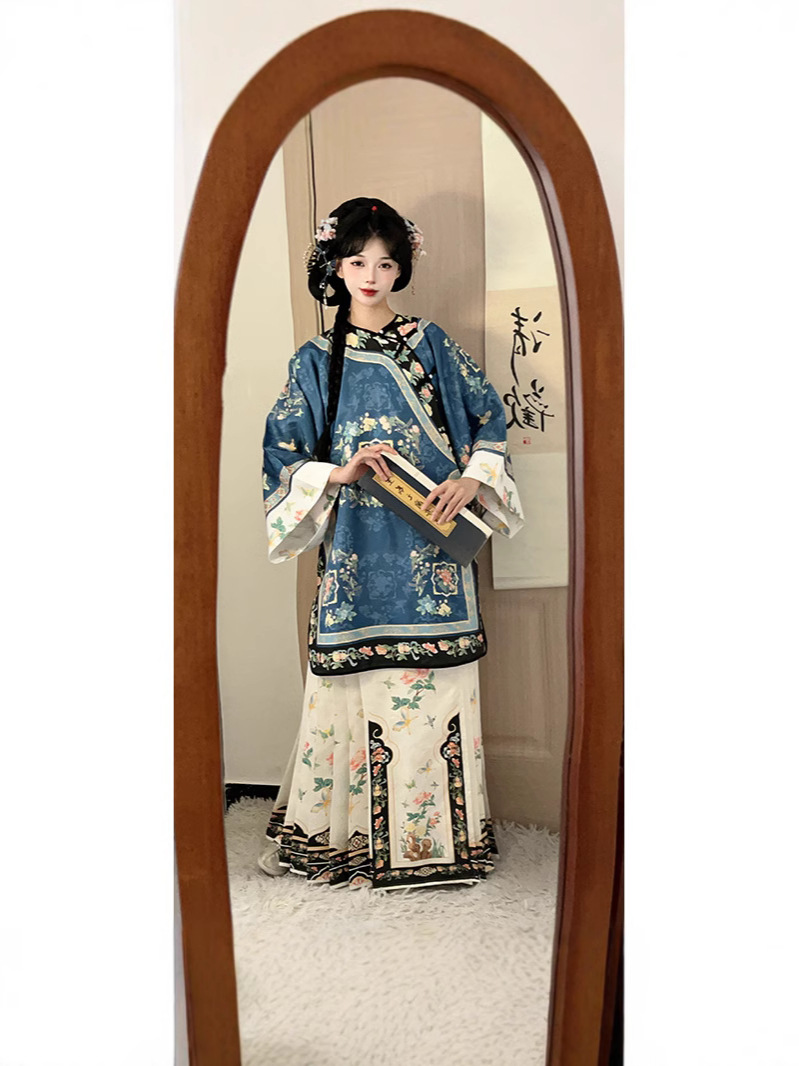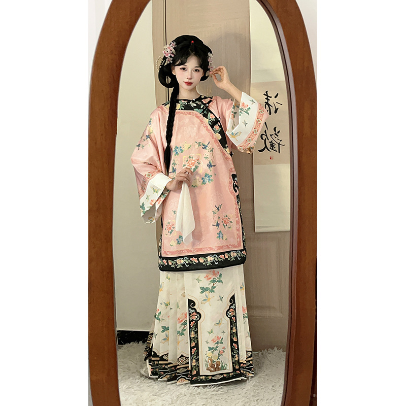 Новый осенний и зимний костюм в клетку Hanfu династии Цин с диагональным круглым вырезом