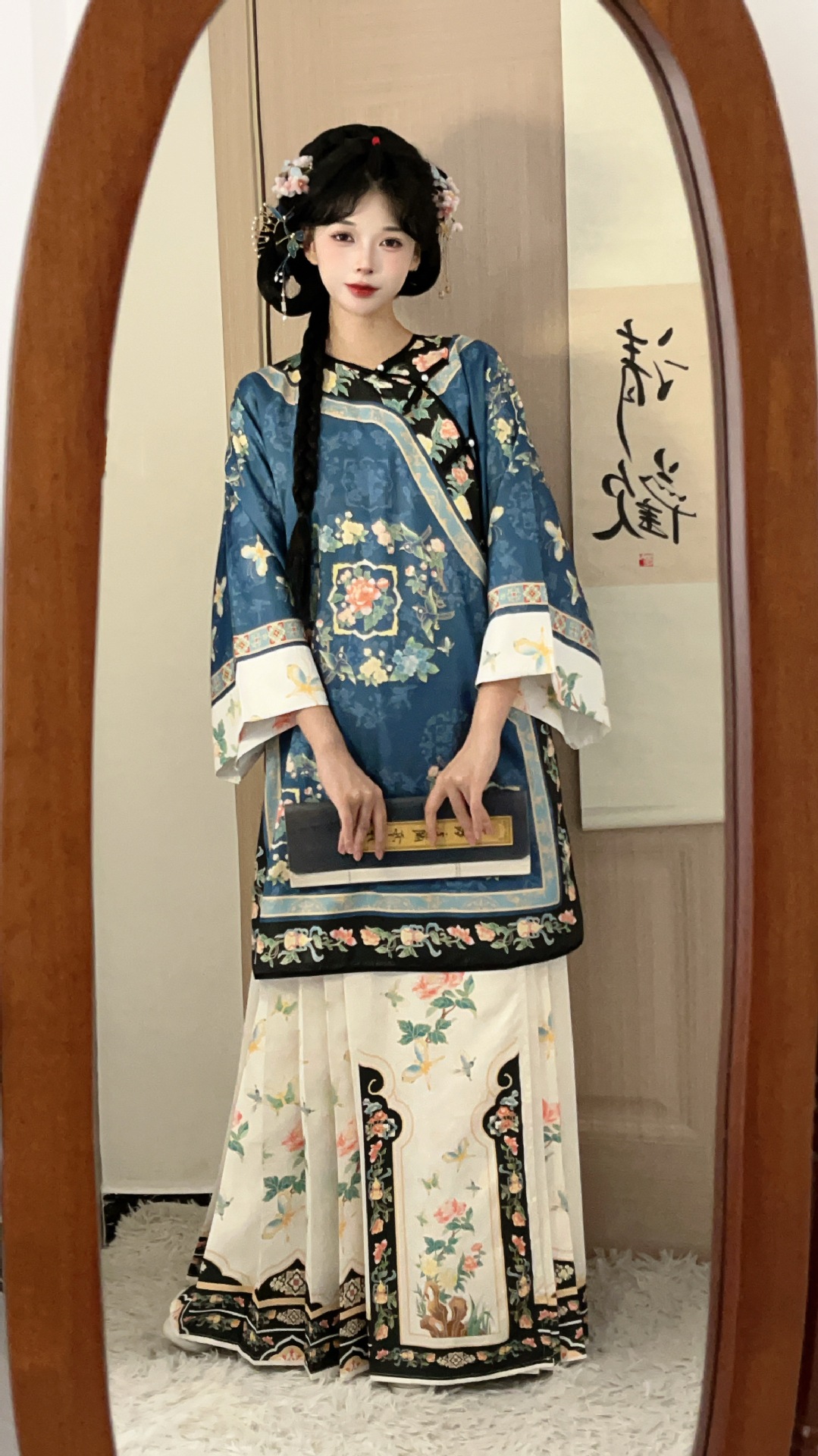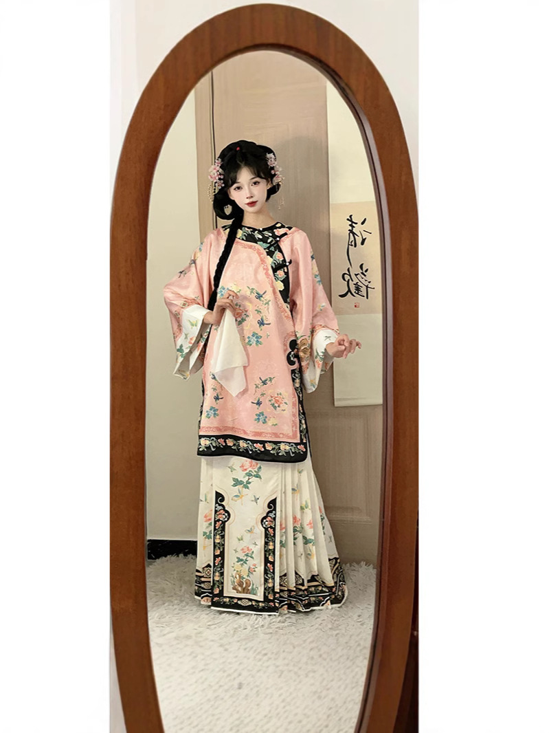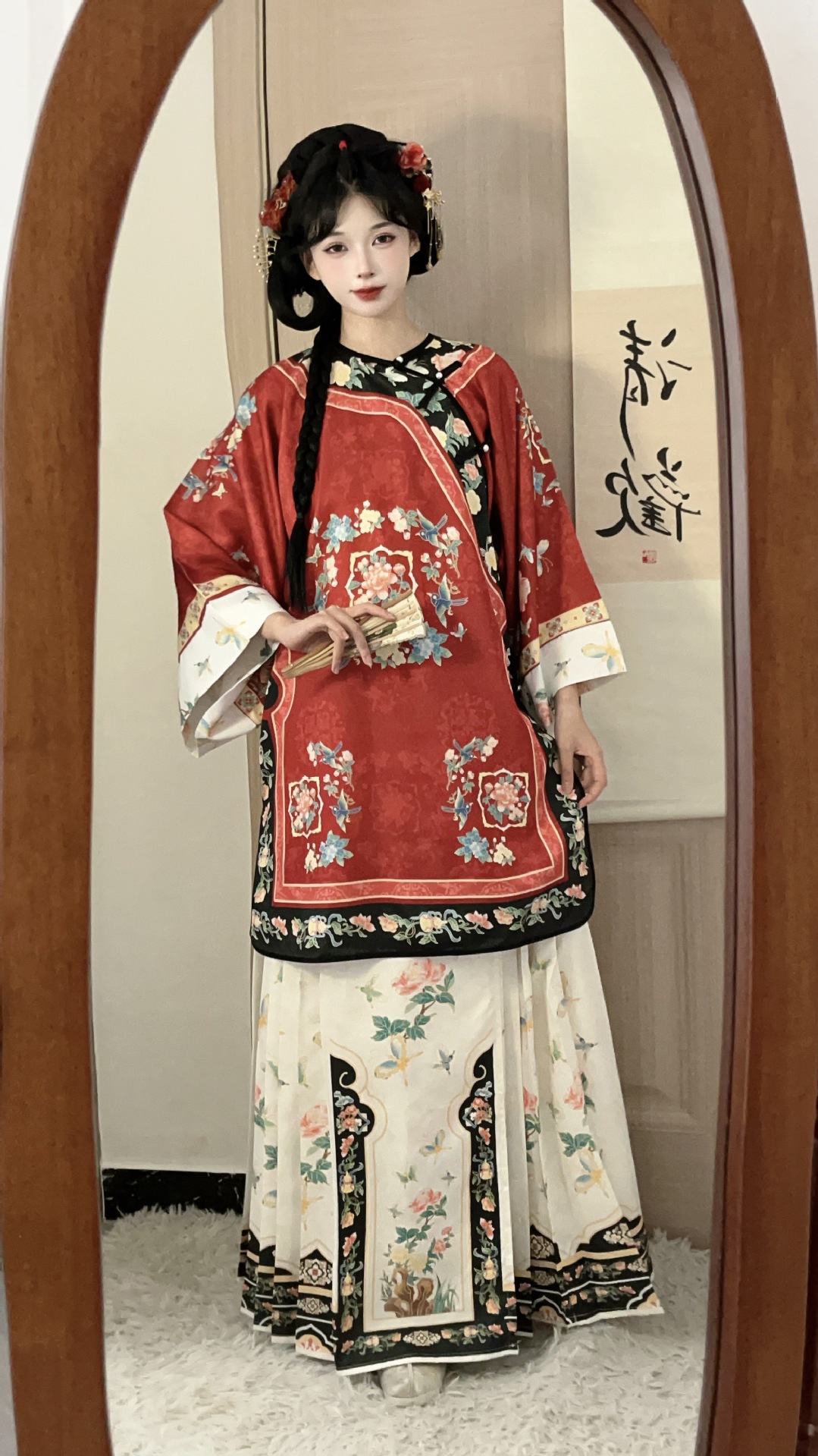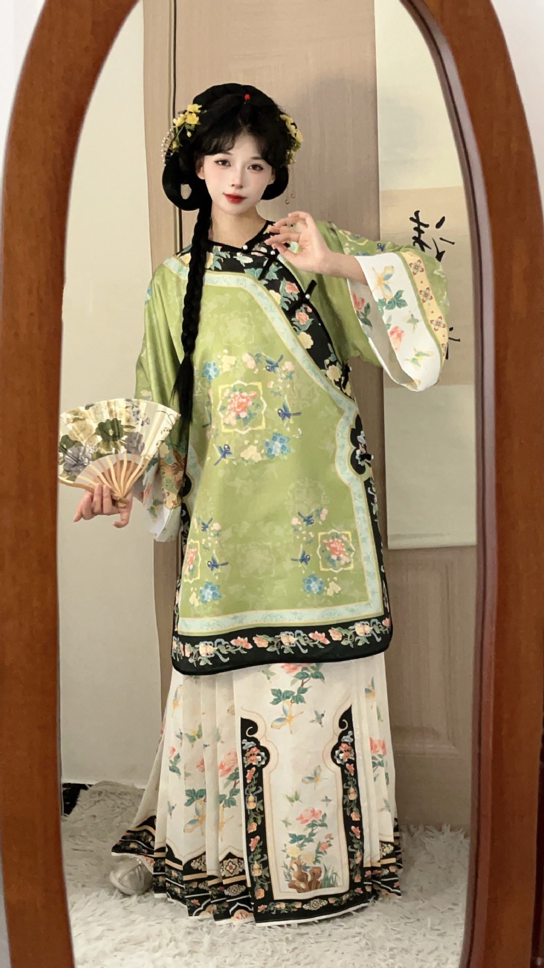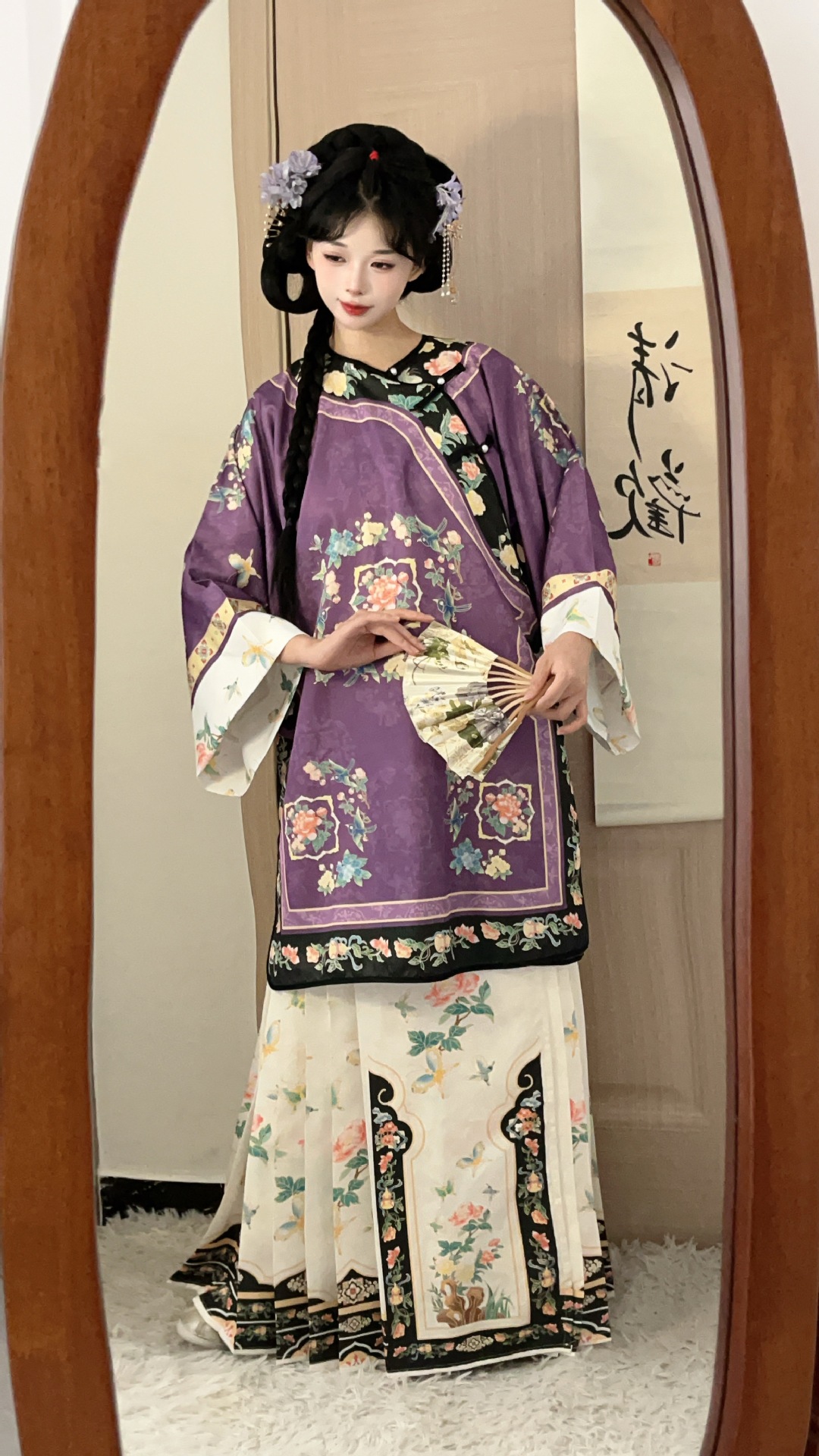 Новый осенний и зимний костюм в клетку Hanfu династии Цин с диагональным круглым вырезом