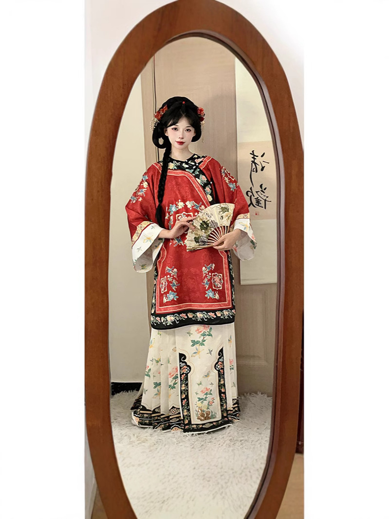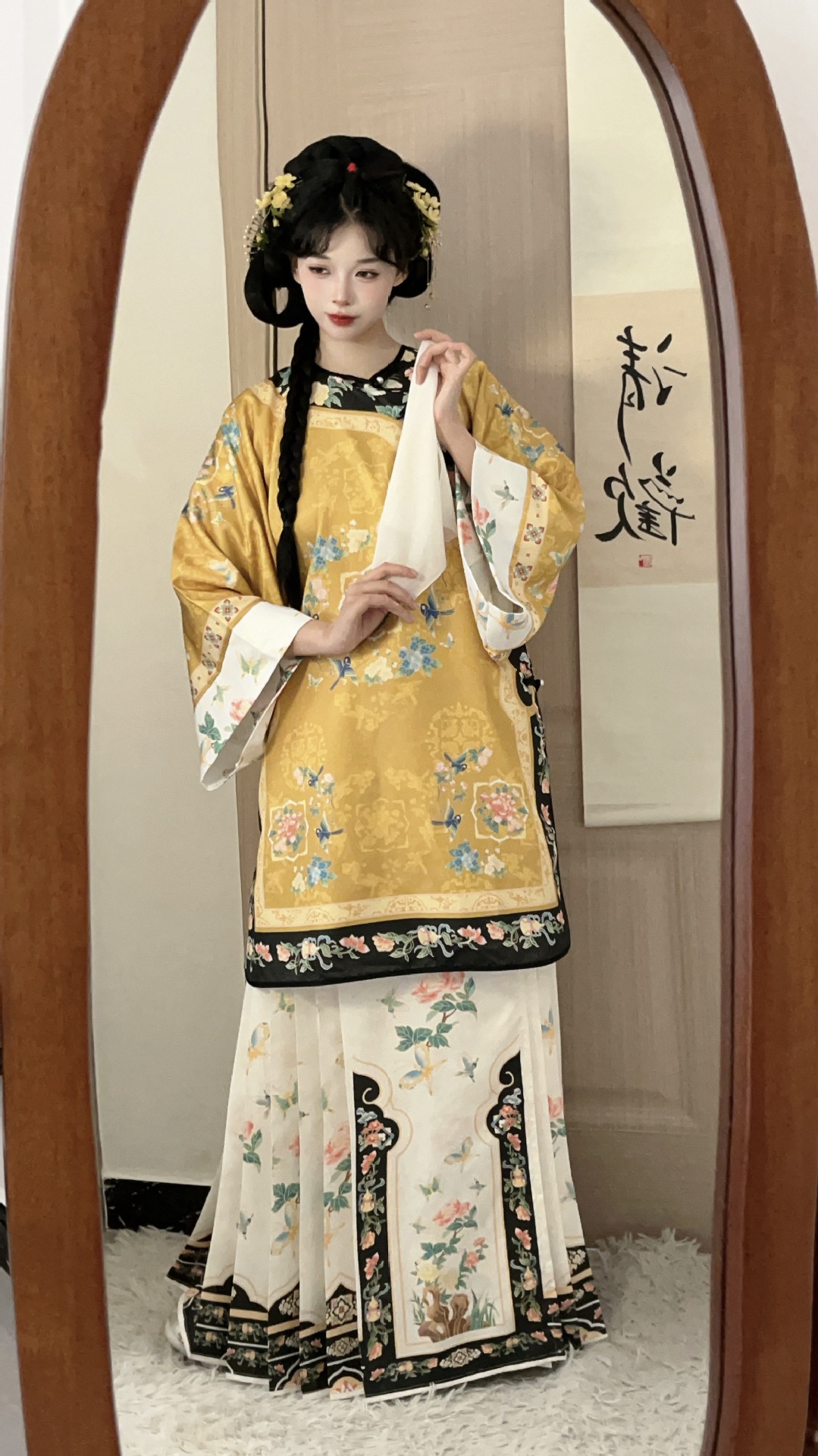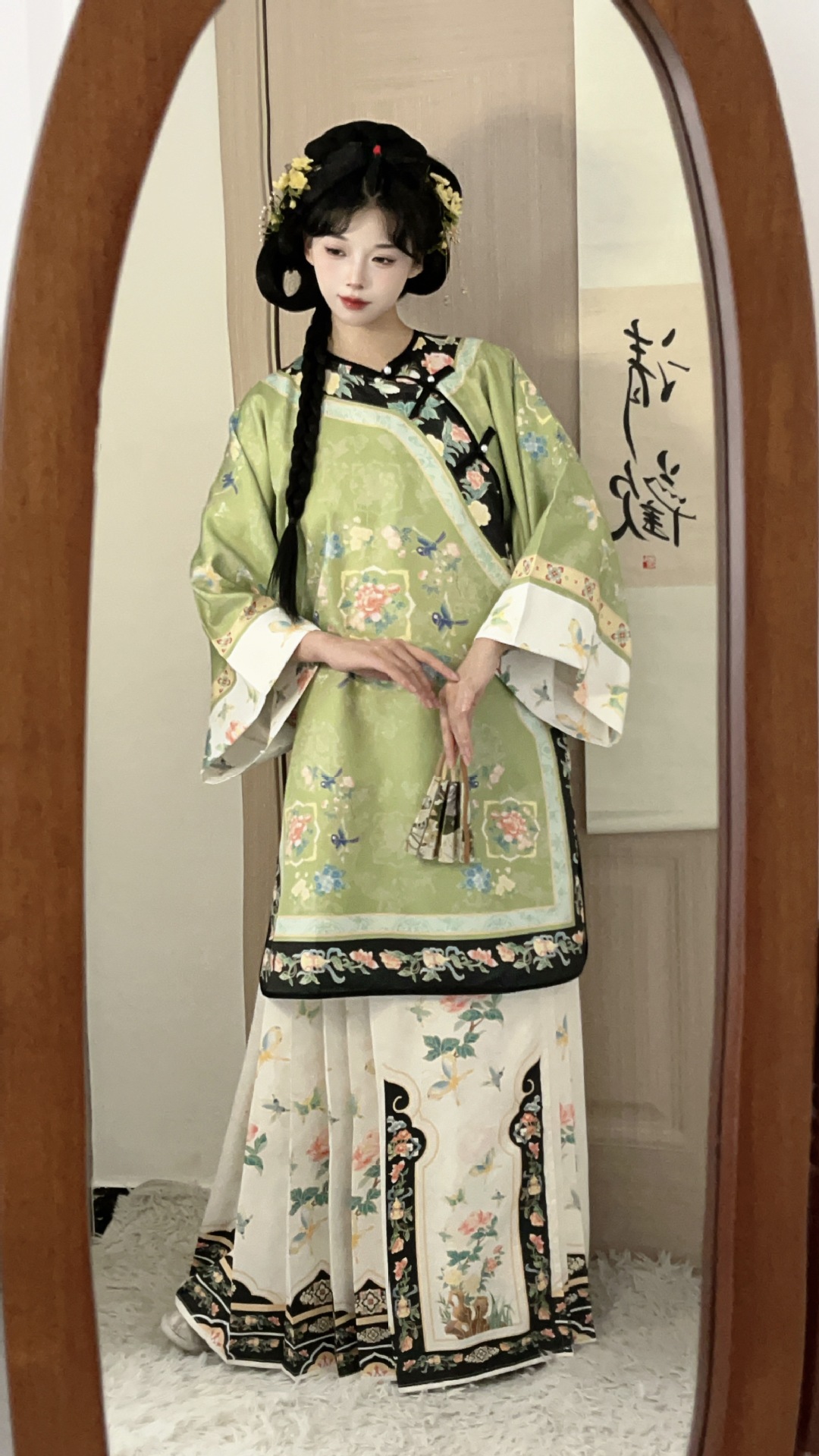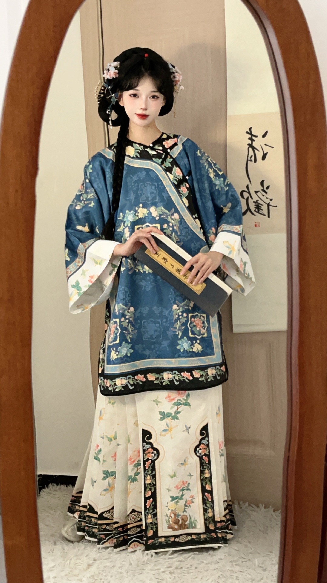 Новый осенний и зимний костюм в клетку Hanfu династии Цин с диагональным круглым вырезом