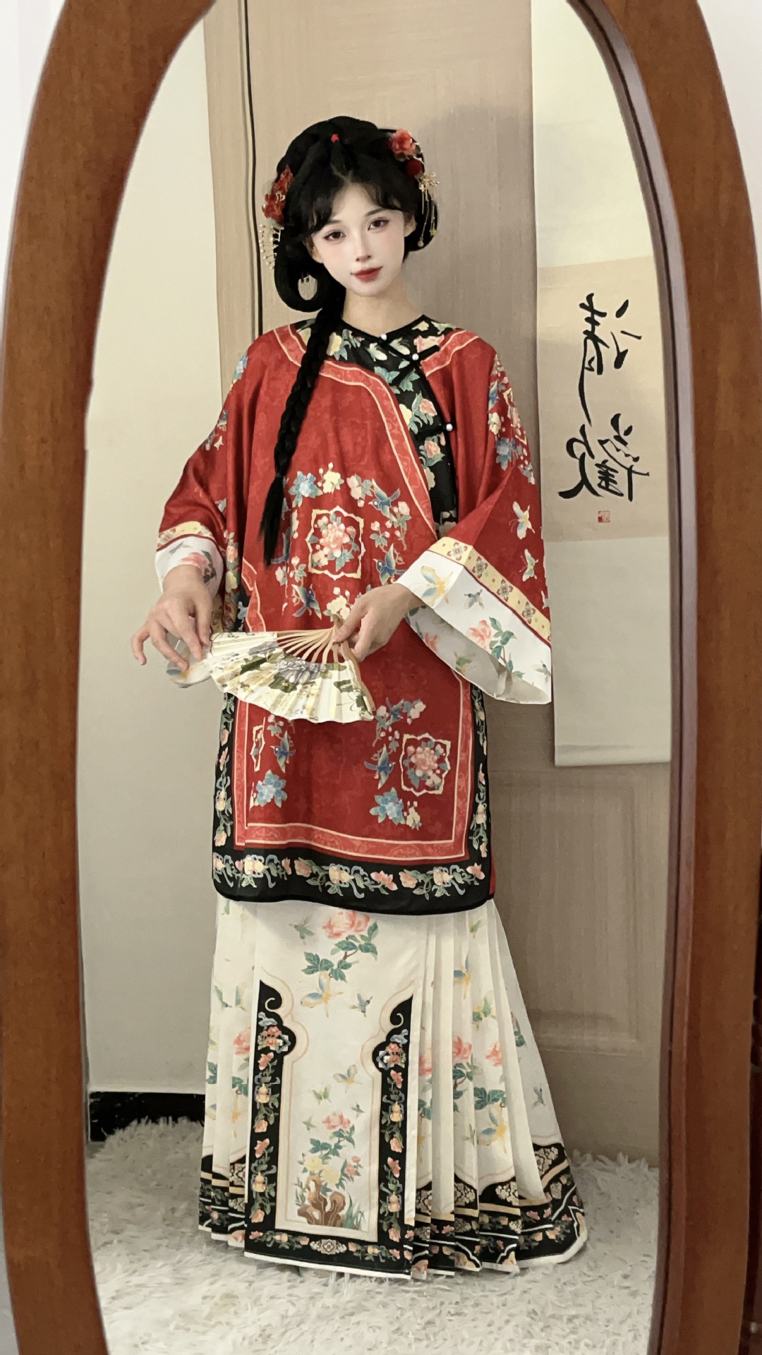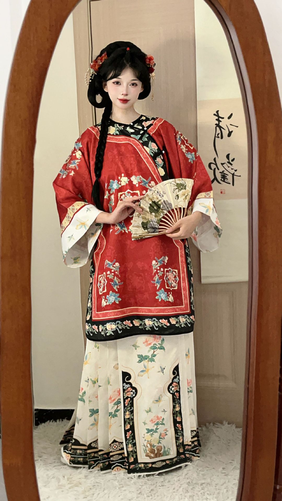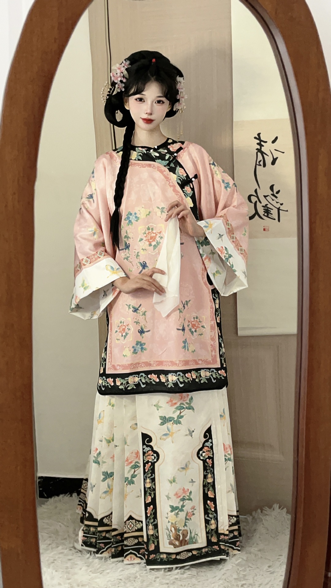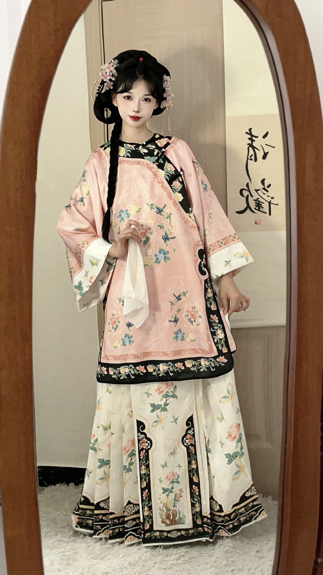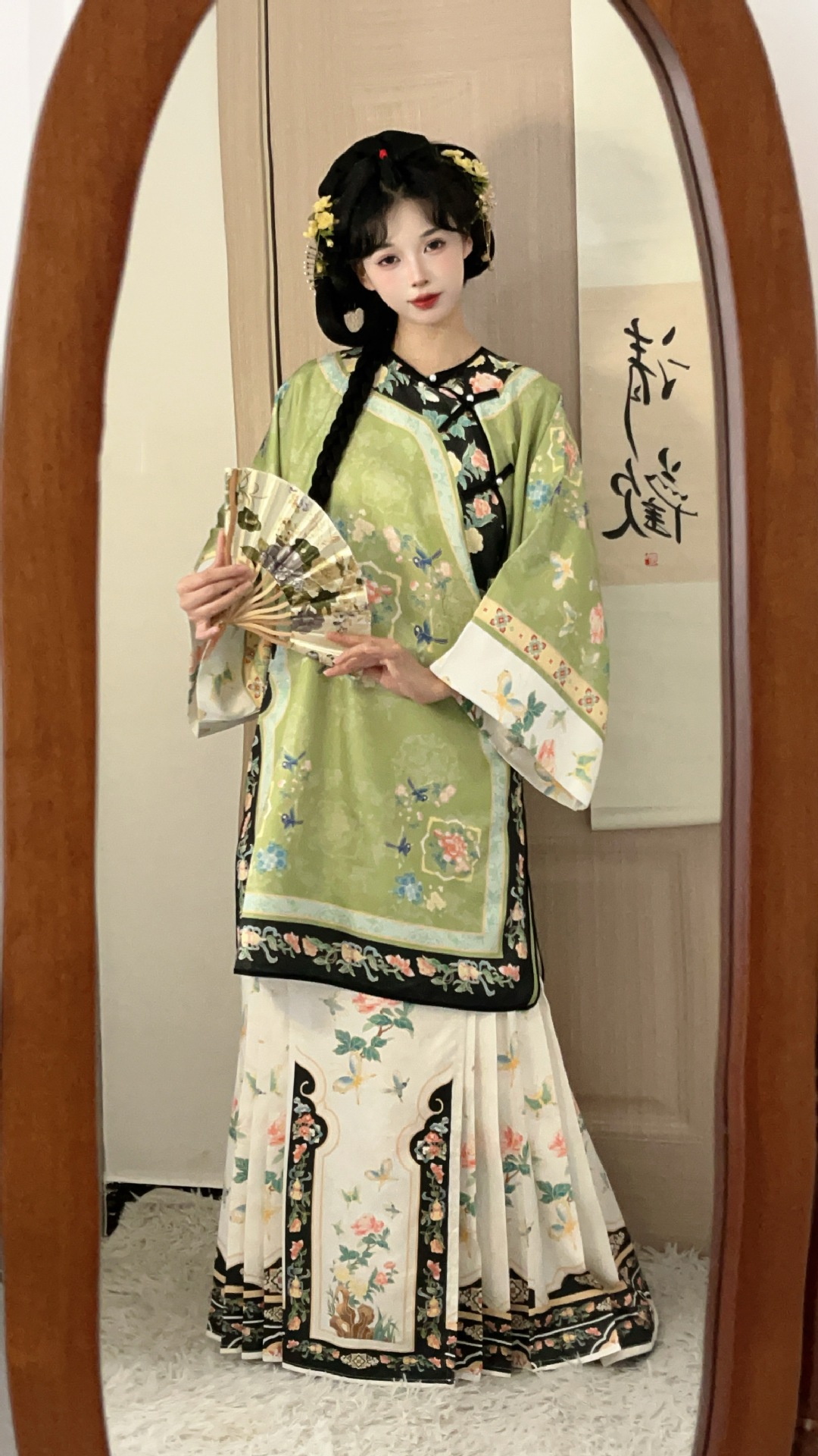 Новый осенний и зимний костюм в клетку Hanfu династии Цин с диагональным круглым вырезом
