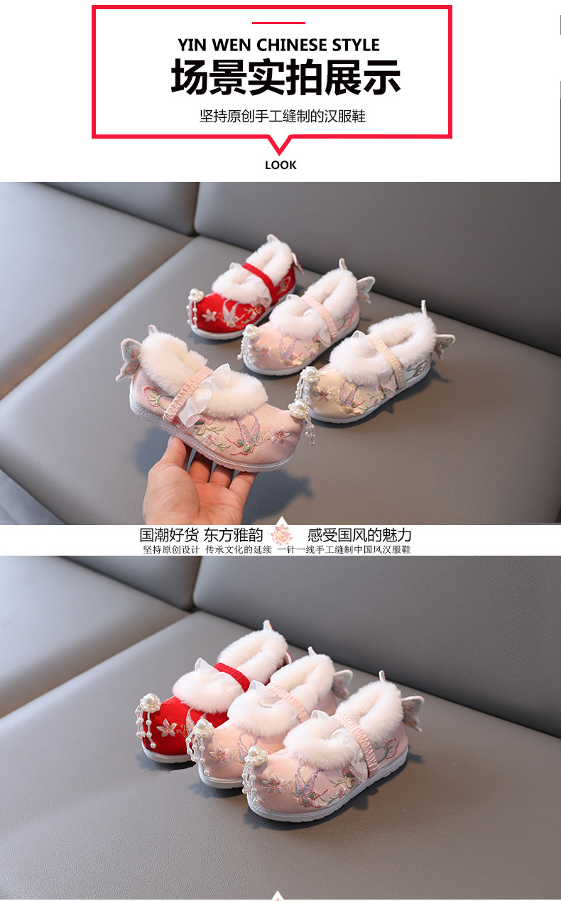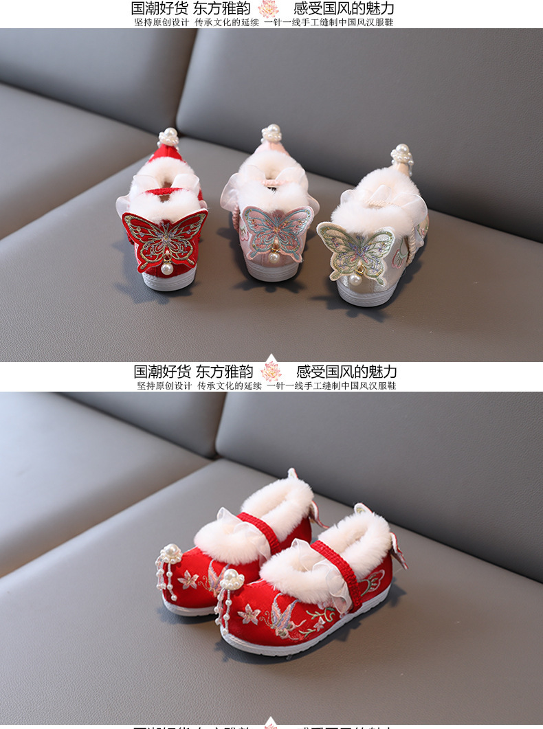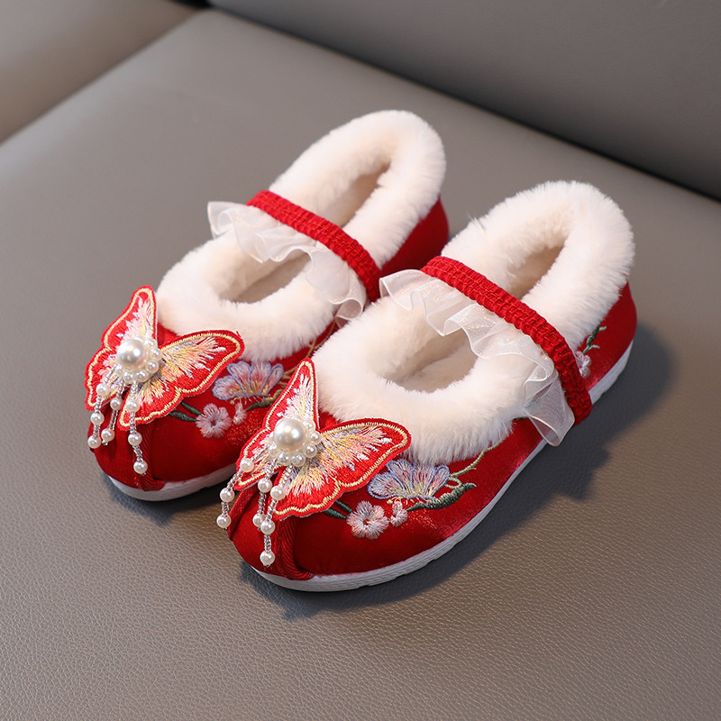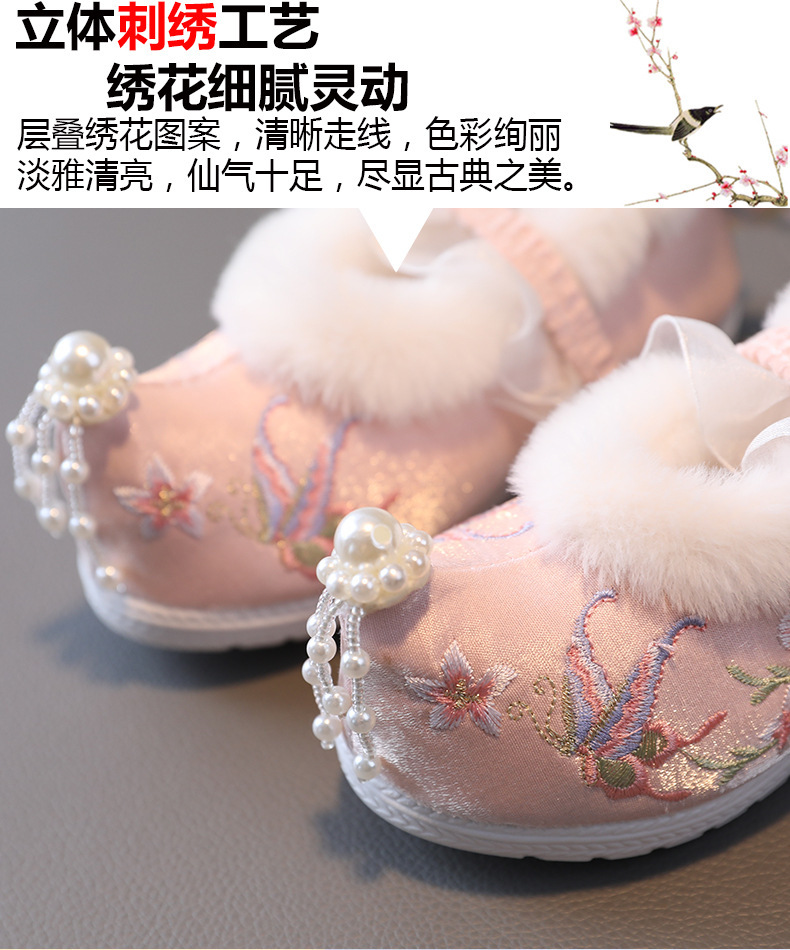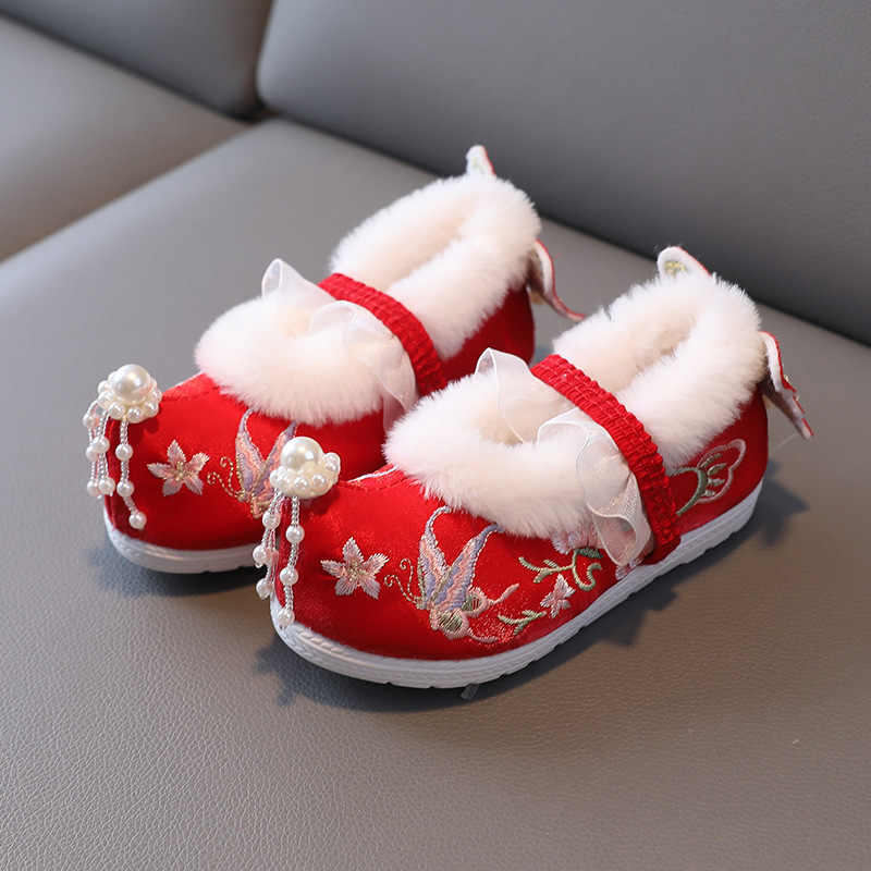 Туфли для девочек Ханфу зимние бархатные костюмы детские вышитые туфли