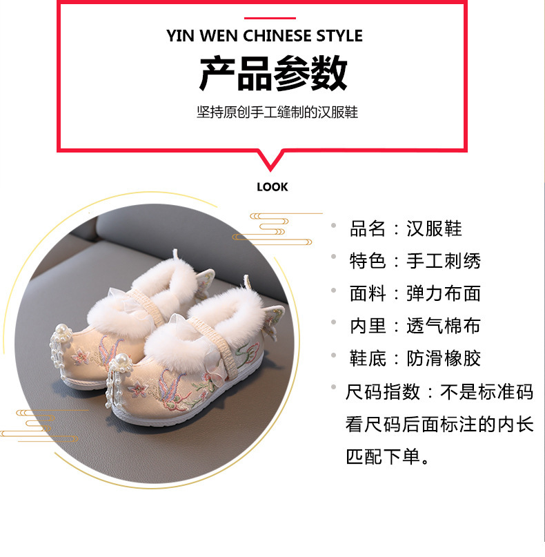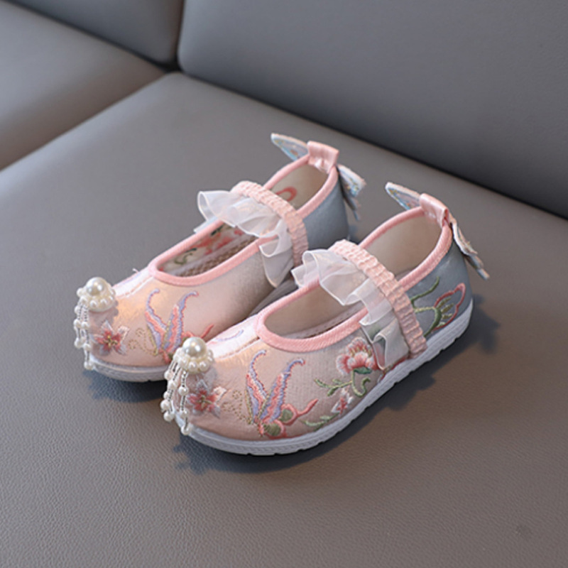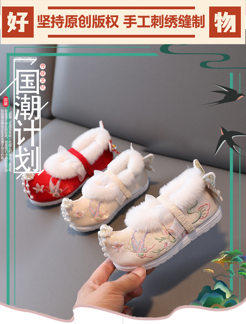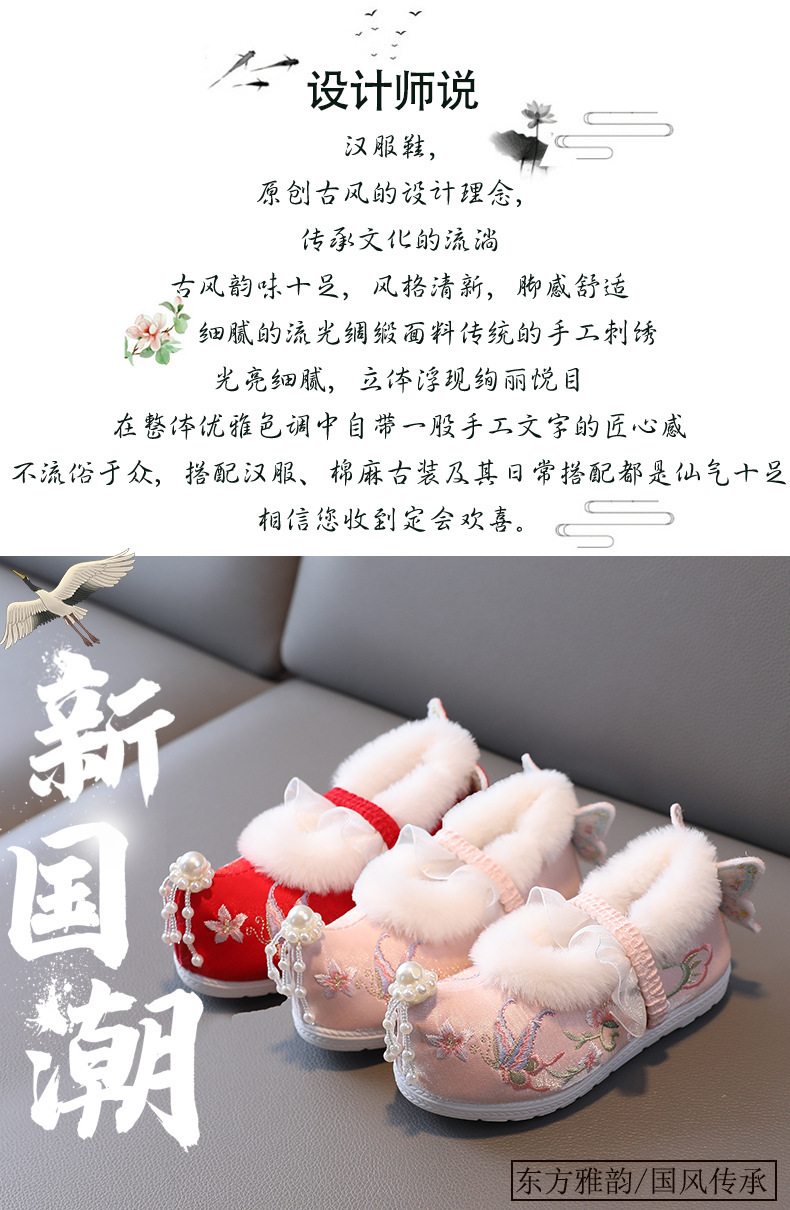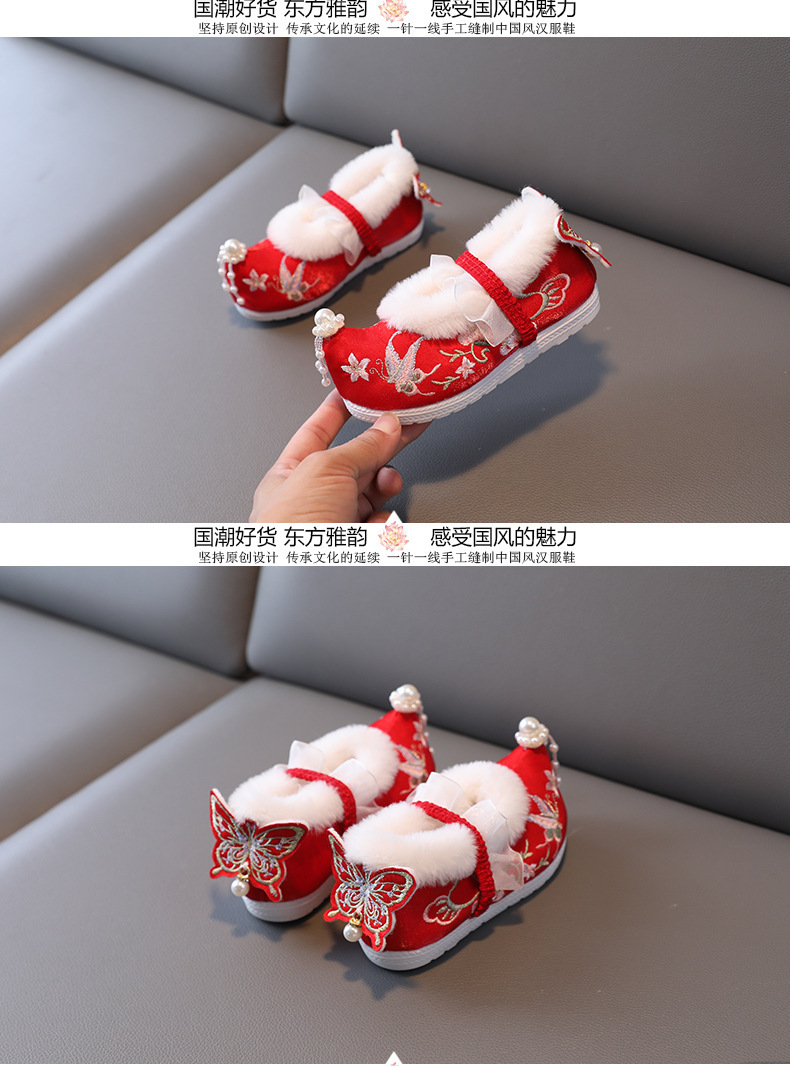 Туфли для девочек Ханфу зимние бархатные костюмы детские вышитые туфли