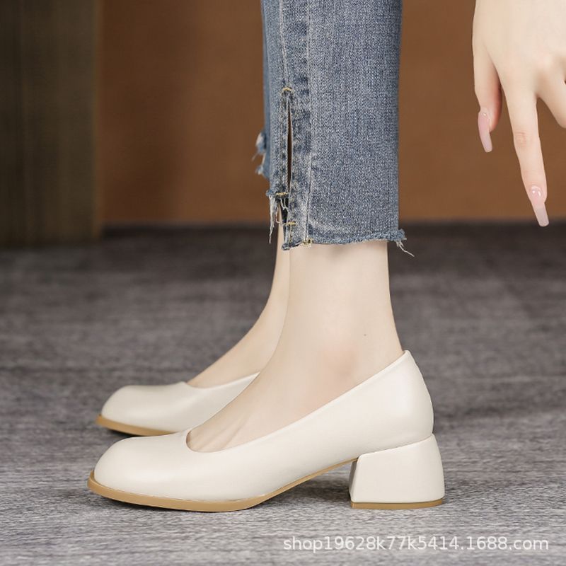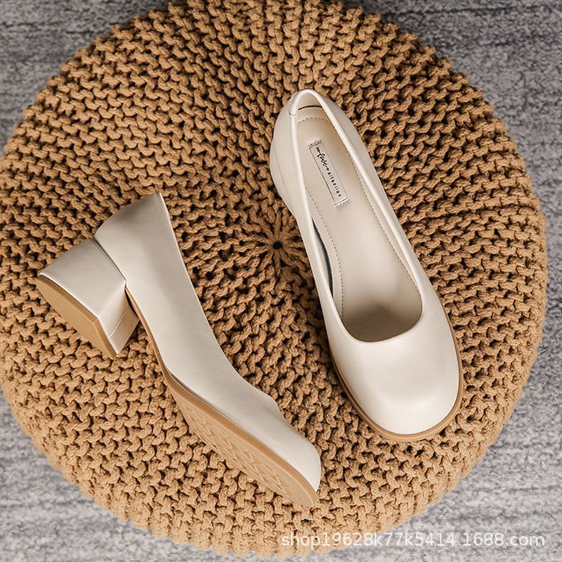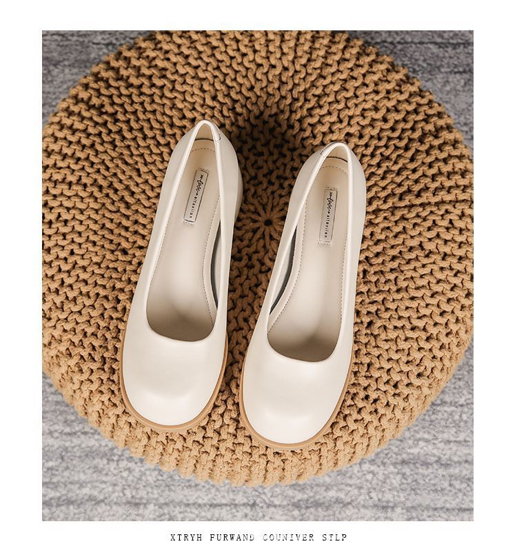 Французские минималистские не совсем белые маленькие кожаные туфли Мэри Джейн 2023 новые кожаные туфли с небольшим ртом