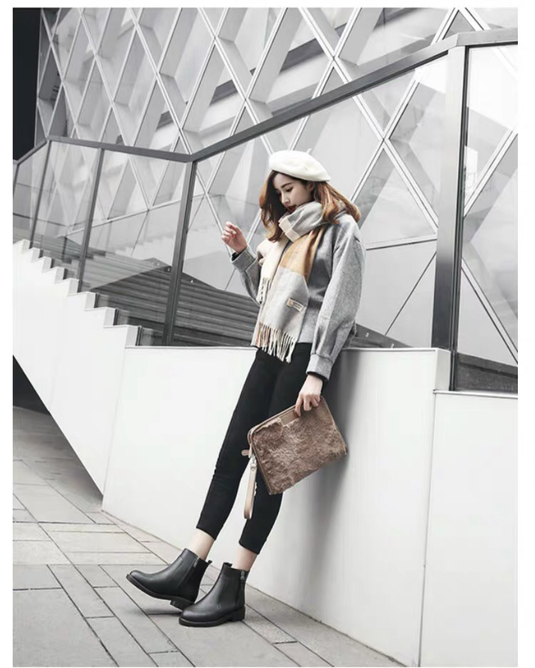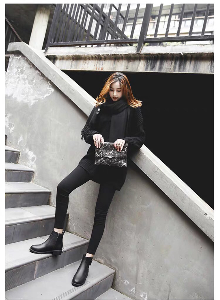 Корейская версия черных коротких сапог женский 2025 новый осенний и зимний сетка красный тощий Мартин сапоги плоская корейская версия большого размера 4142