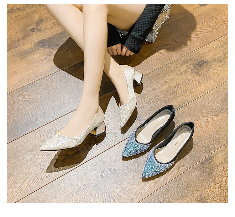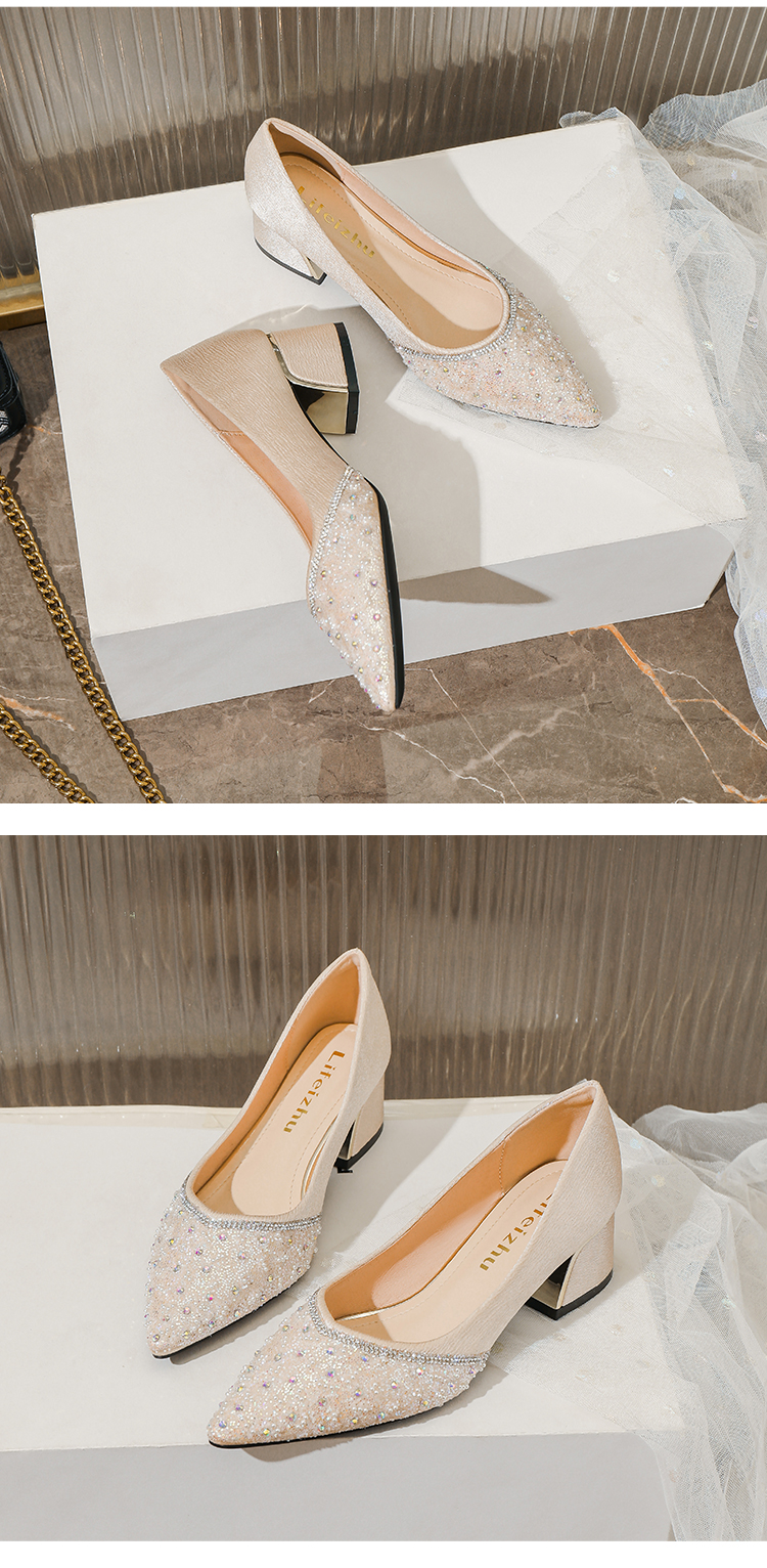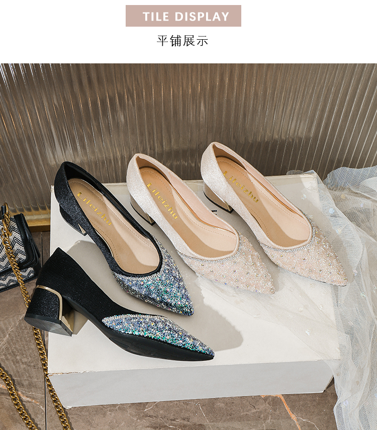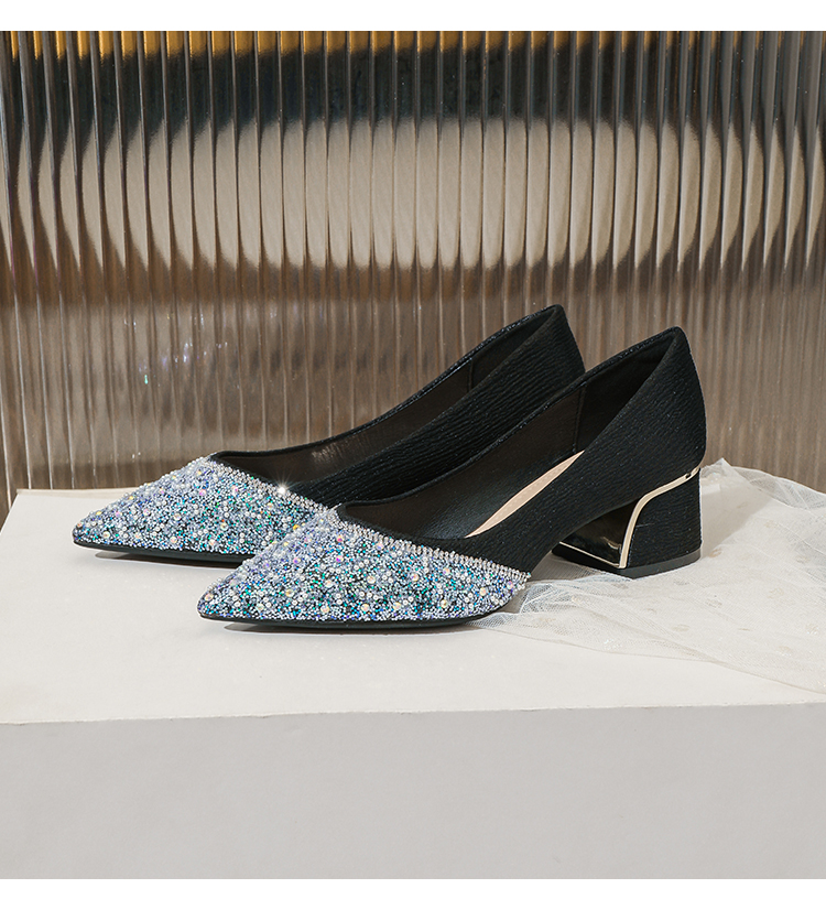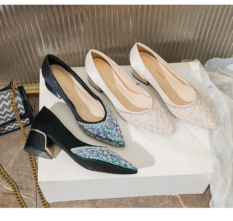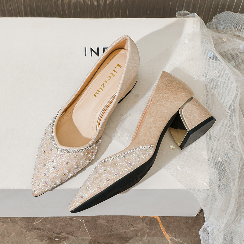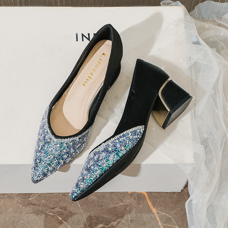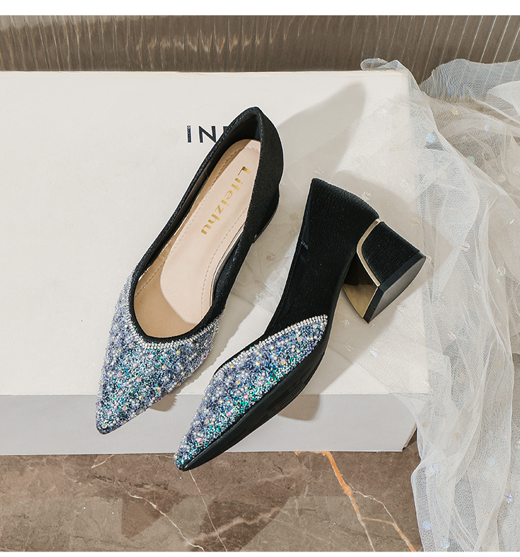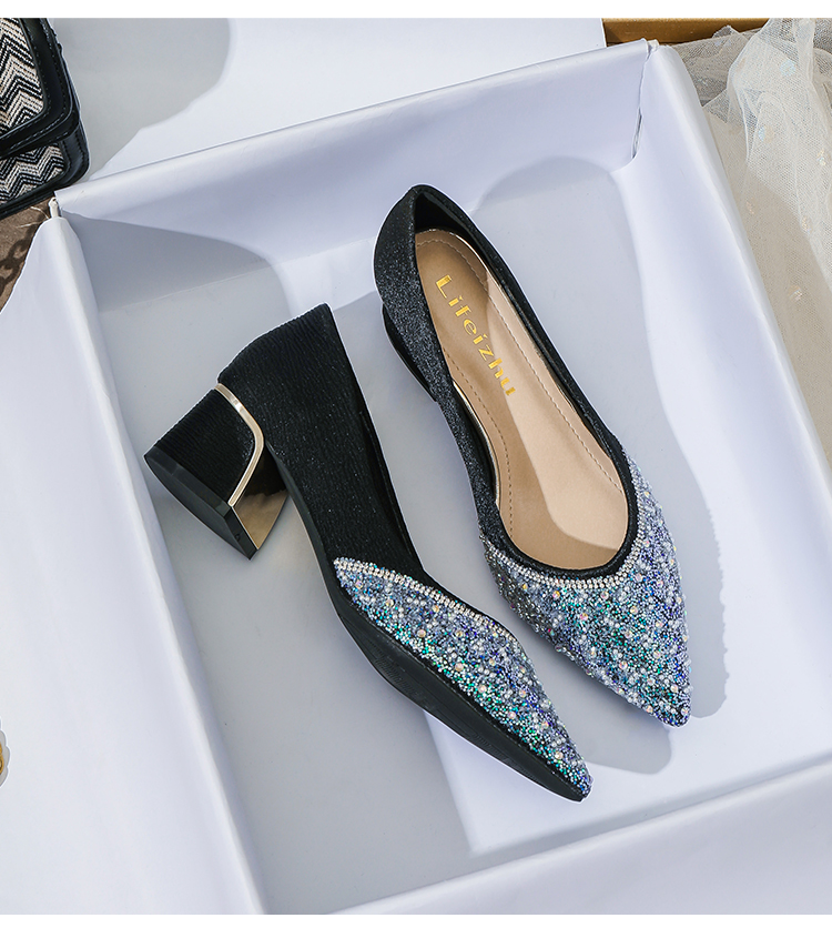 Французские туфли на высоком каблуке с толстыми каблуками с заостренными наконечными осенними одиночными туфлями женщины 2025 новая модель большой размер женской обуви 41-43