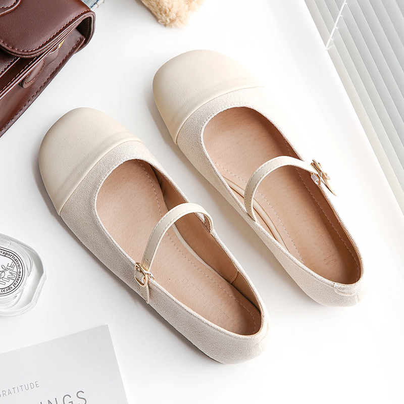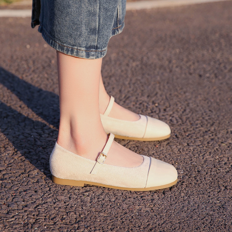 Овчинная версия ~ Вечерние туфли Весенние новые сказочные ветры нежные туфли Французские плоские туфли с мелким ртом одиночные туфли Мэри Джейн женские туфли