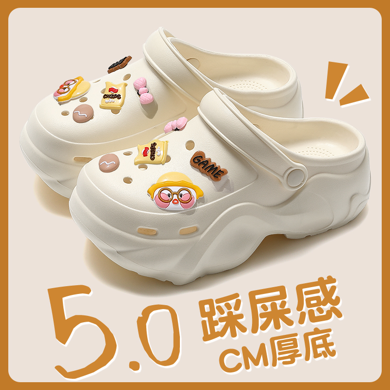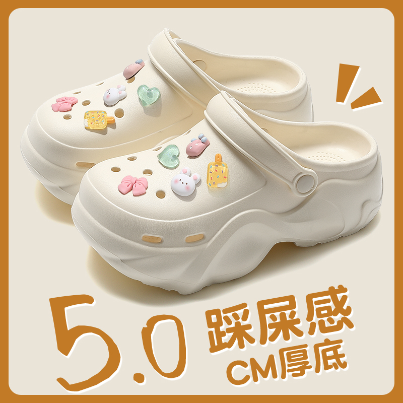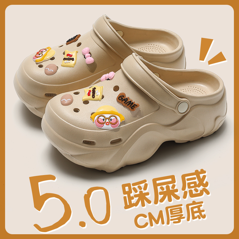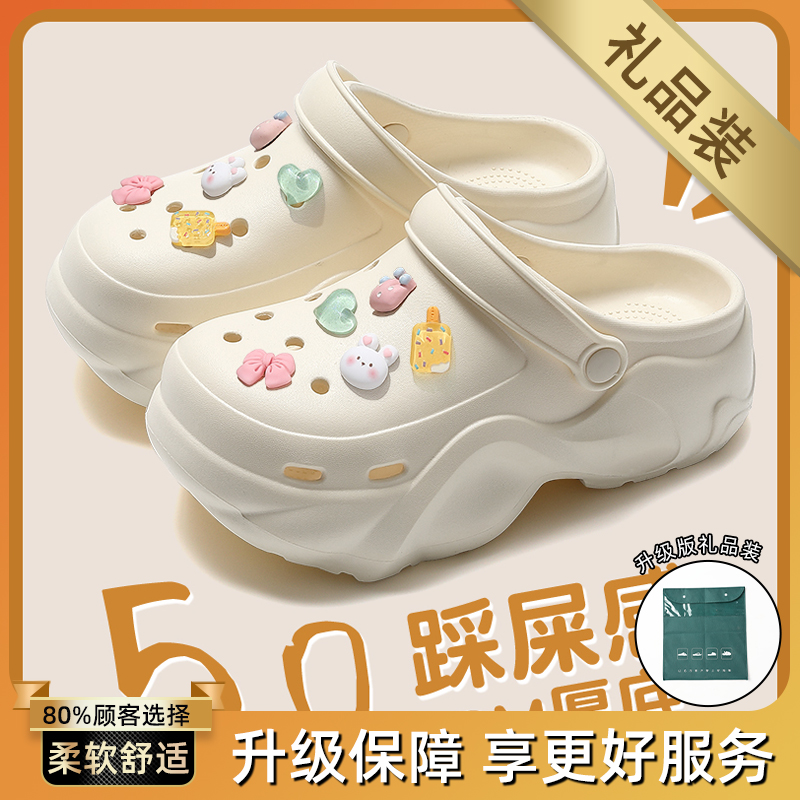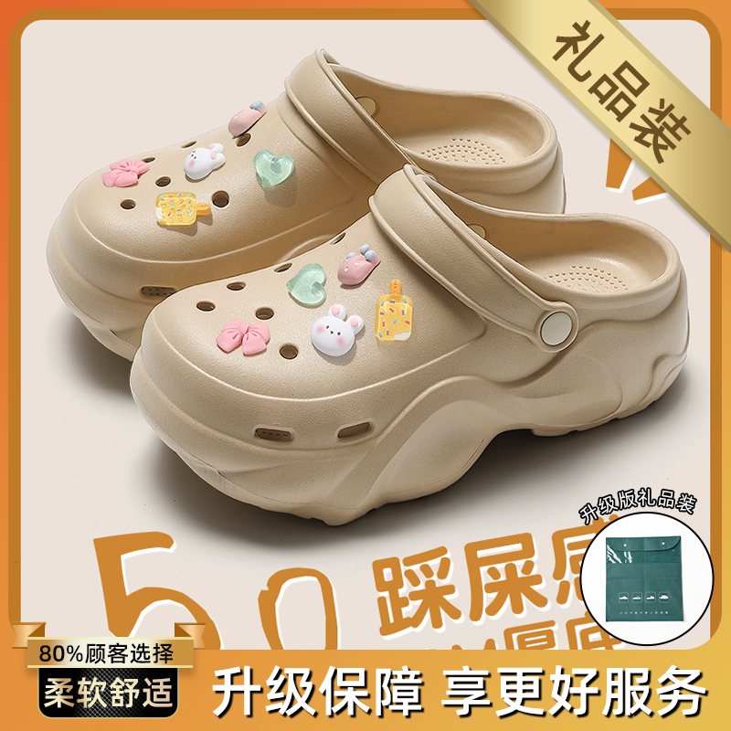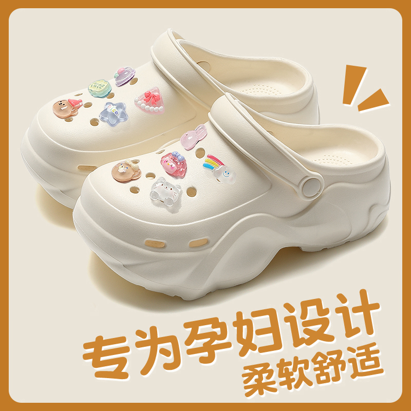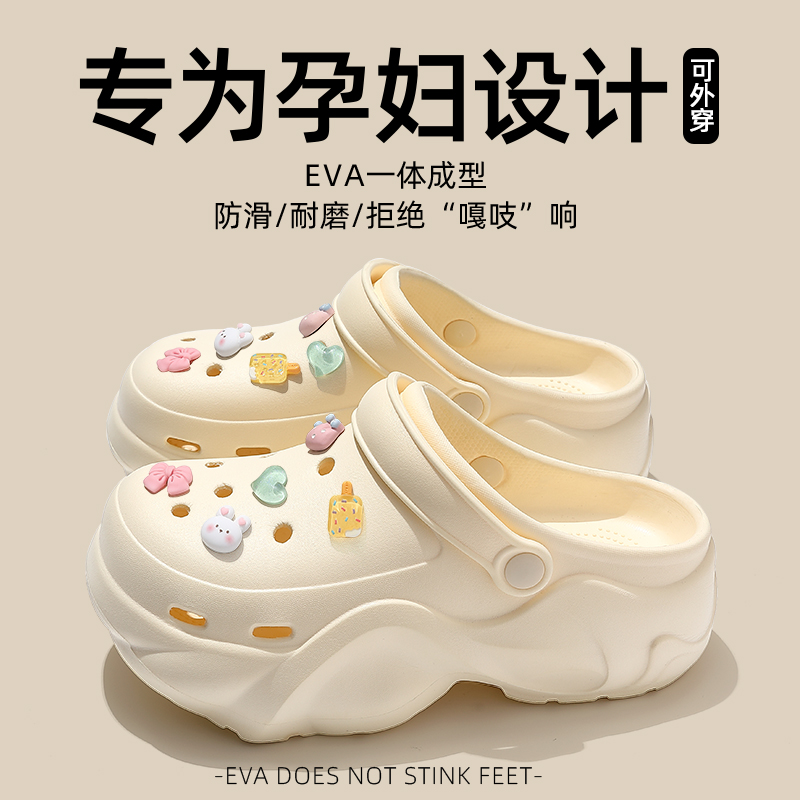 Обувь с толстой подошвенной пещерой женщины 2025 новая летняя одежда может носить пляжную обувь Baotou по беременности и родам обувь сандалии тапочки