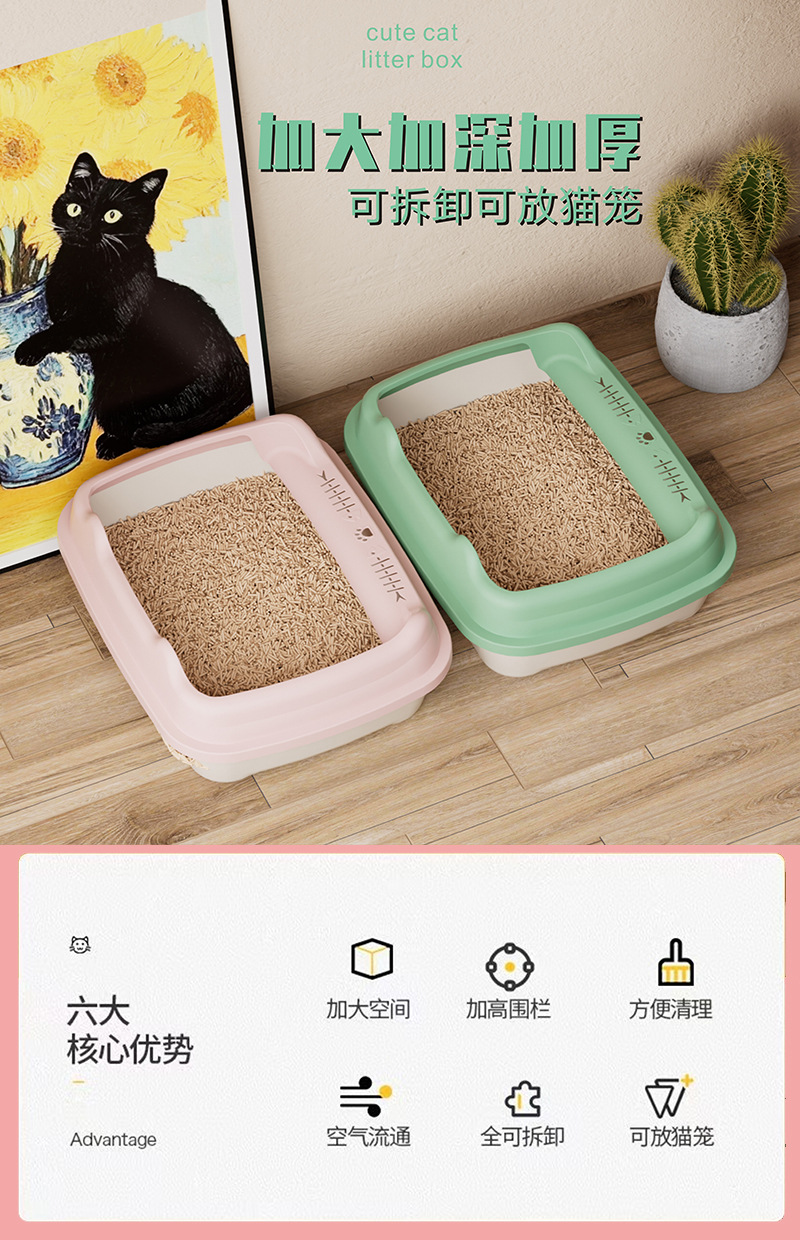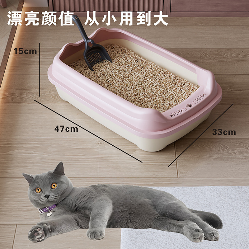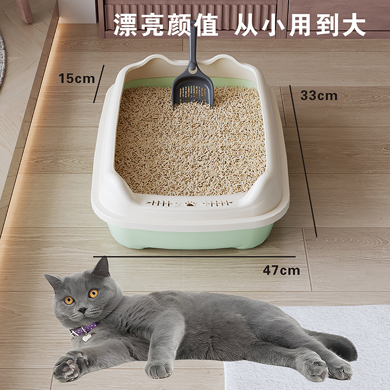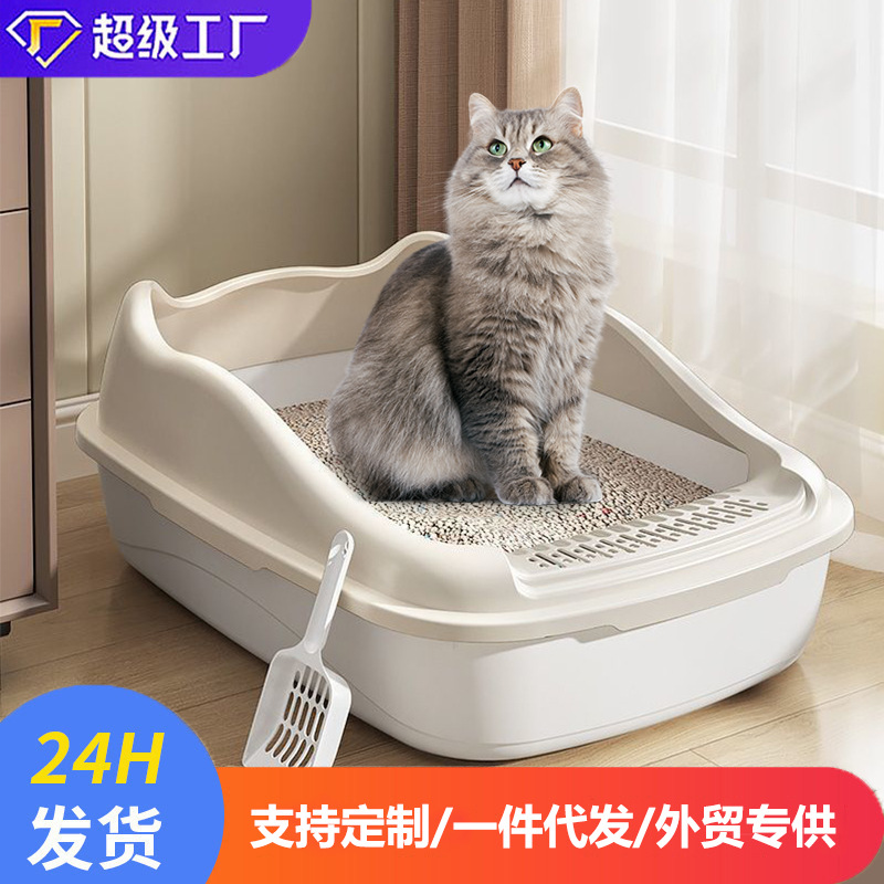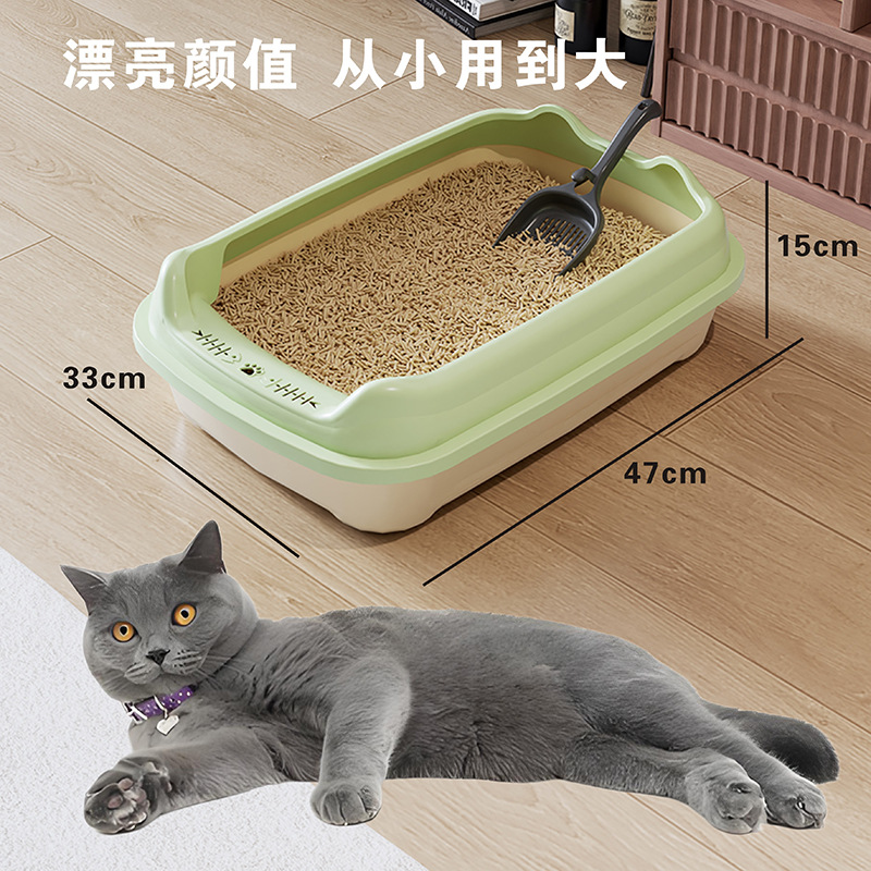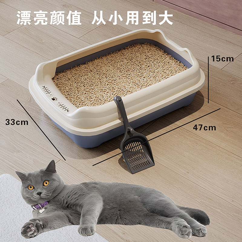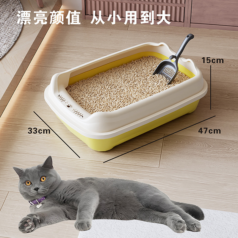 Лоток для кошек увеличенный, открытый туалет для взрослых и щенков, оптовая продажа от производителя зоотоваров, улучшенная защита от разбрызгивания