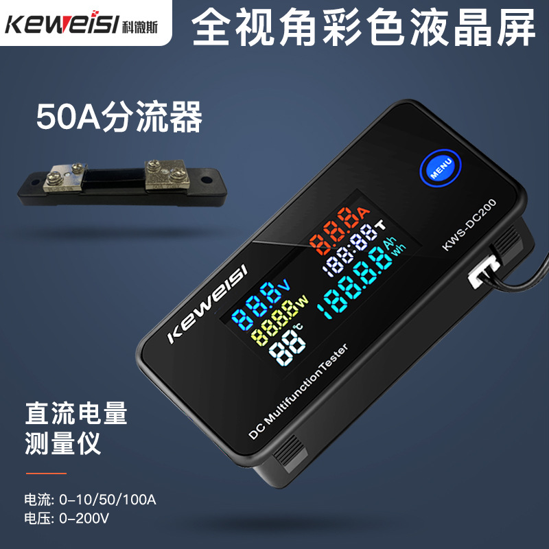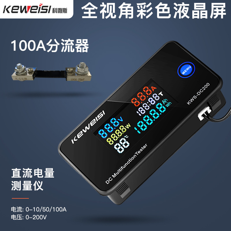 KEWEISI DC цифровой измеритель напряжения цветного экрана тестер мощности 0-200V 0-100A