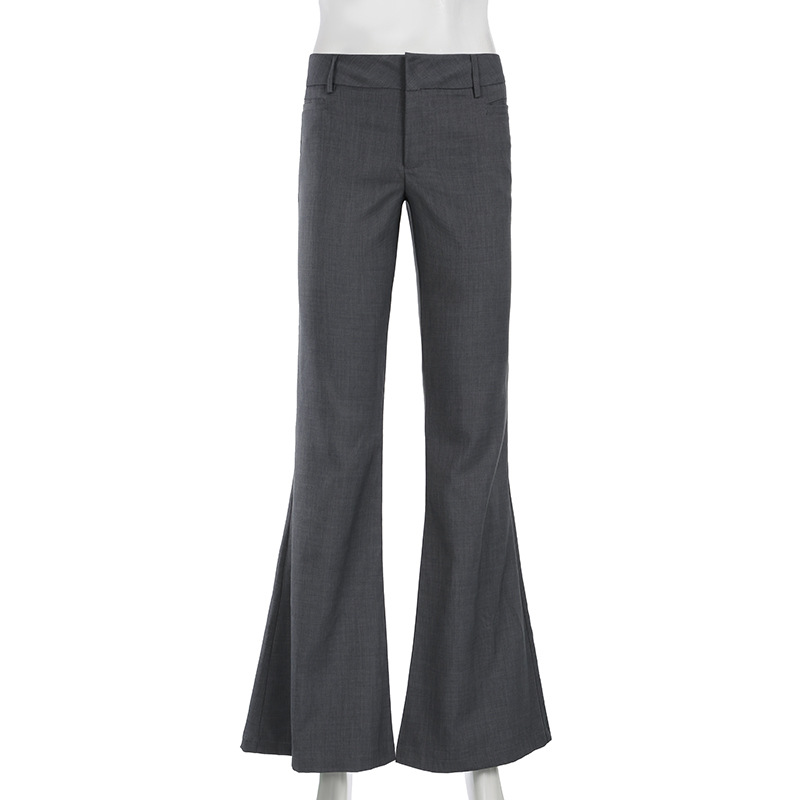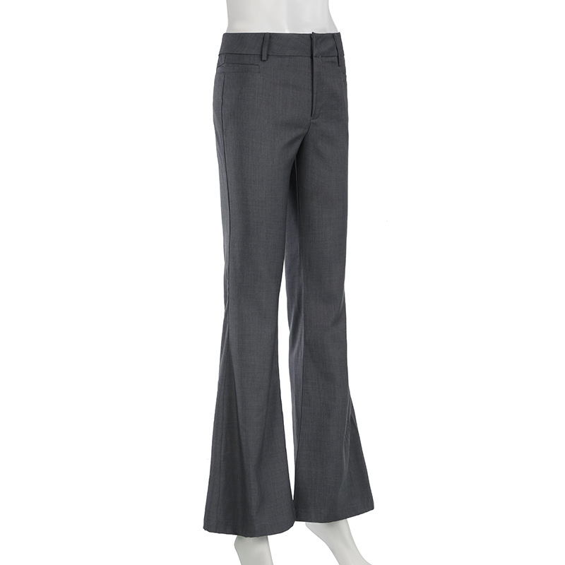 Трансграничные амазонские темпераментные пригородные брюки с низкой талией микро-рога брюки европейские и американские серые горячие девушки базовые повседневные брюки