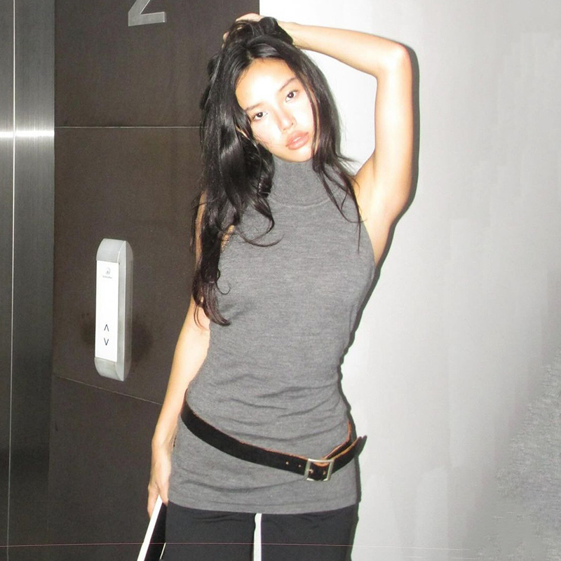 серый; Серый топ MJT24864; Коричневый ремень WFY05181
