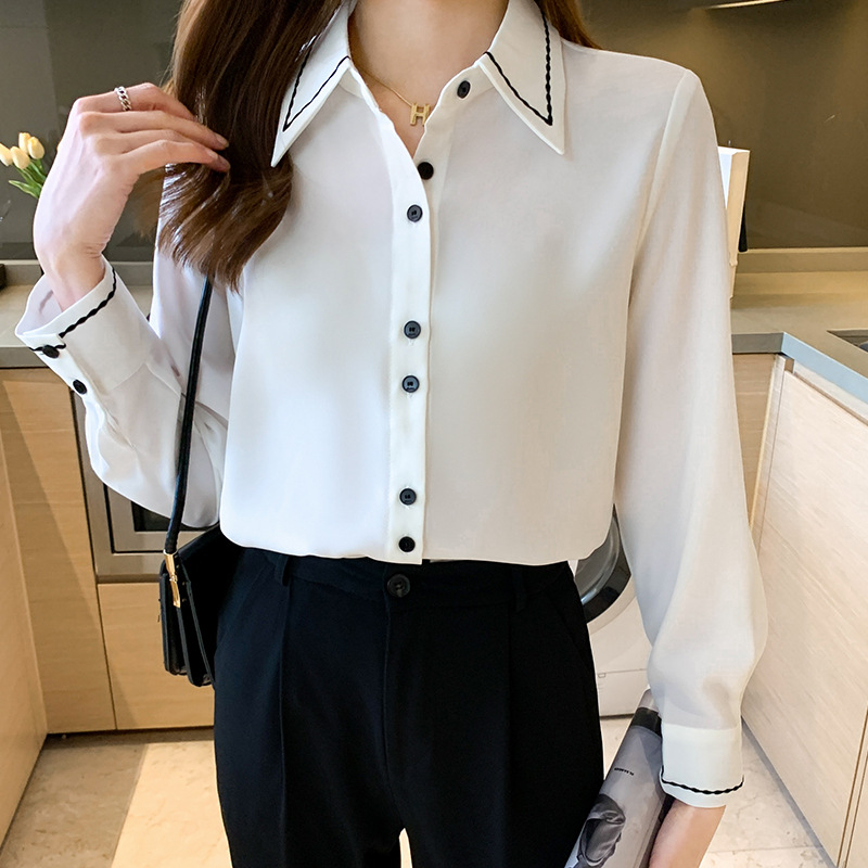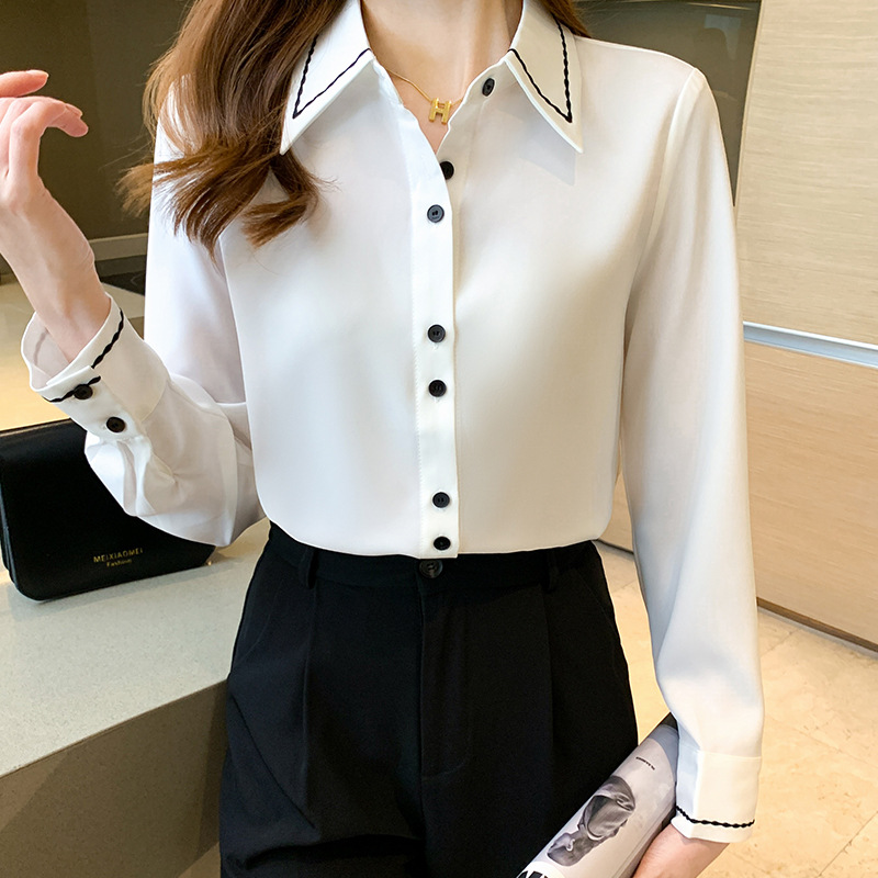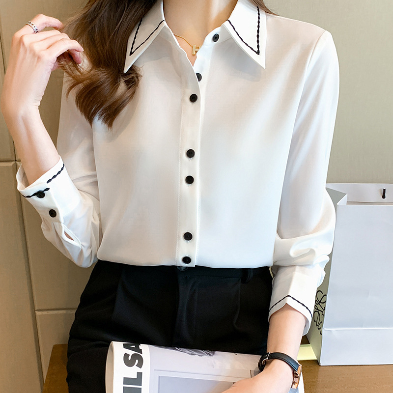Пятно атласная рубашка женская весна 2025 новый французский дизайн высокого уровня темперамент вышитая шифоновая рубашка
