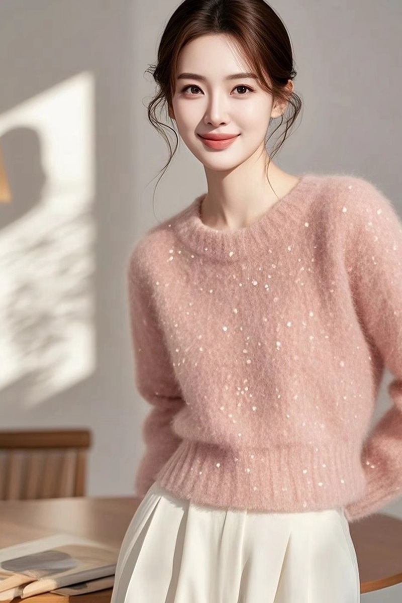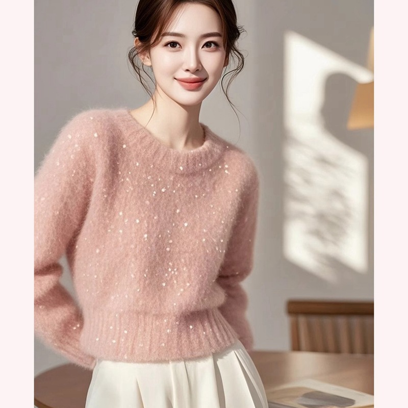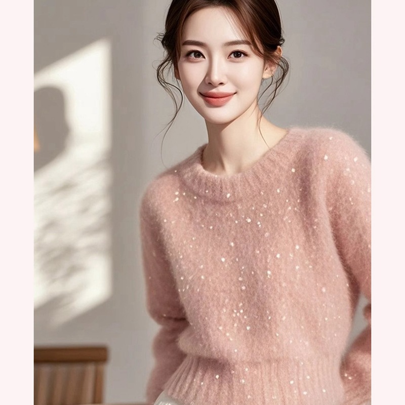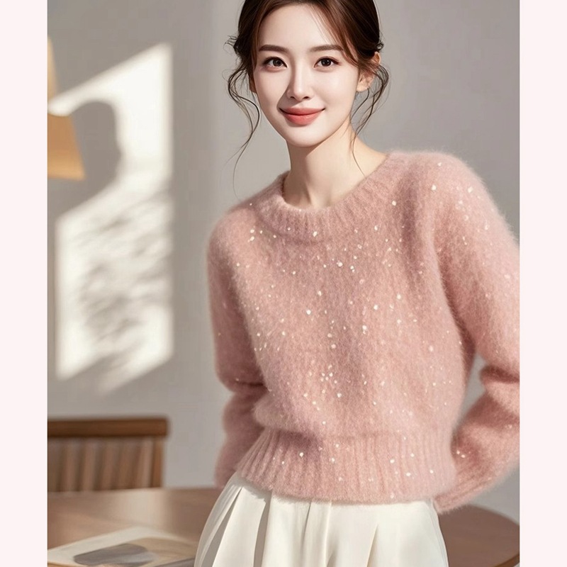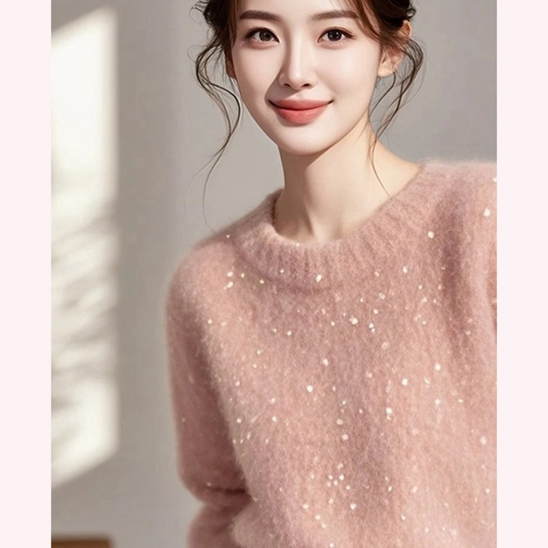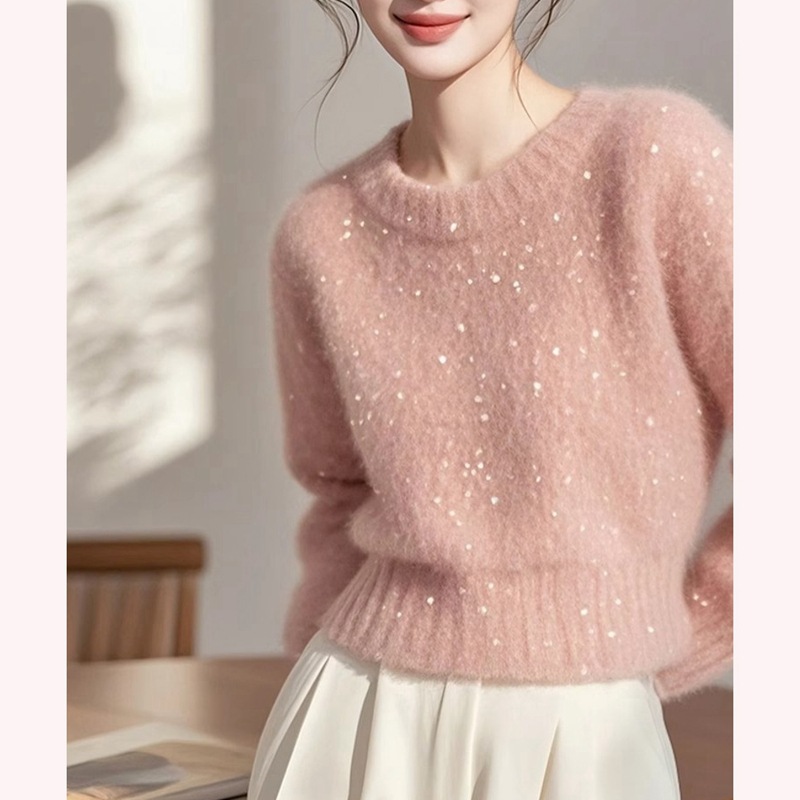 2024 новый супер красивый ленивый высокий оттенок розовый дизайн свободный внешний свитер женский зимний