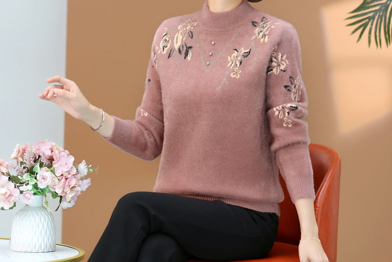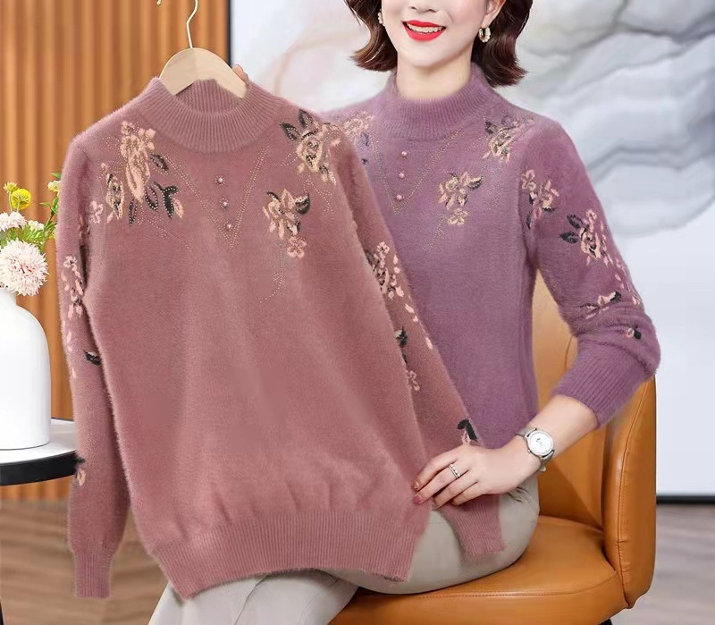 Мама свитер женщина теплая и утолщая, пожилые люди теплая внутри топ