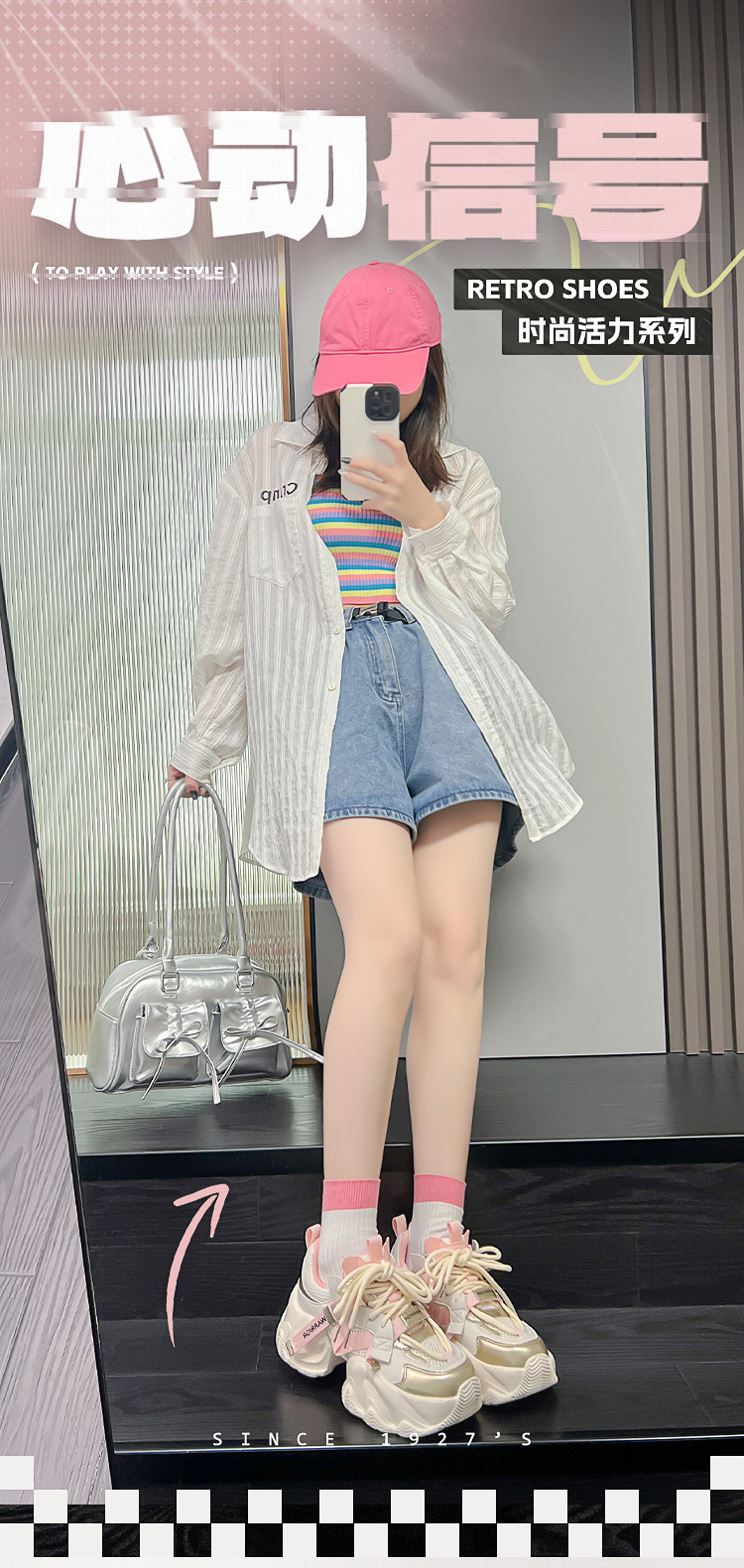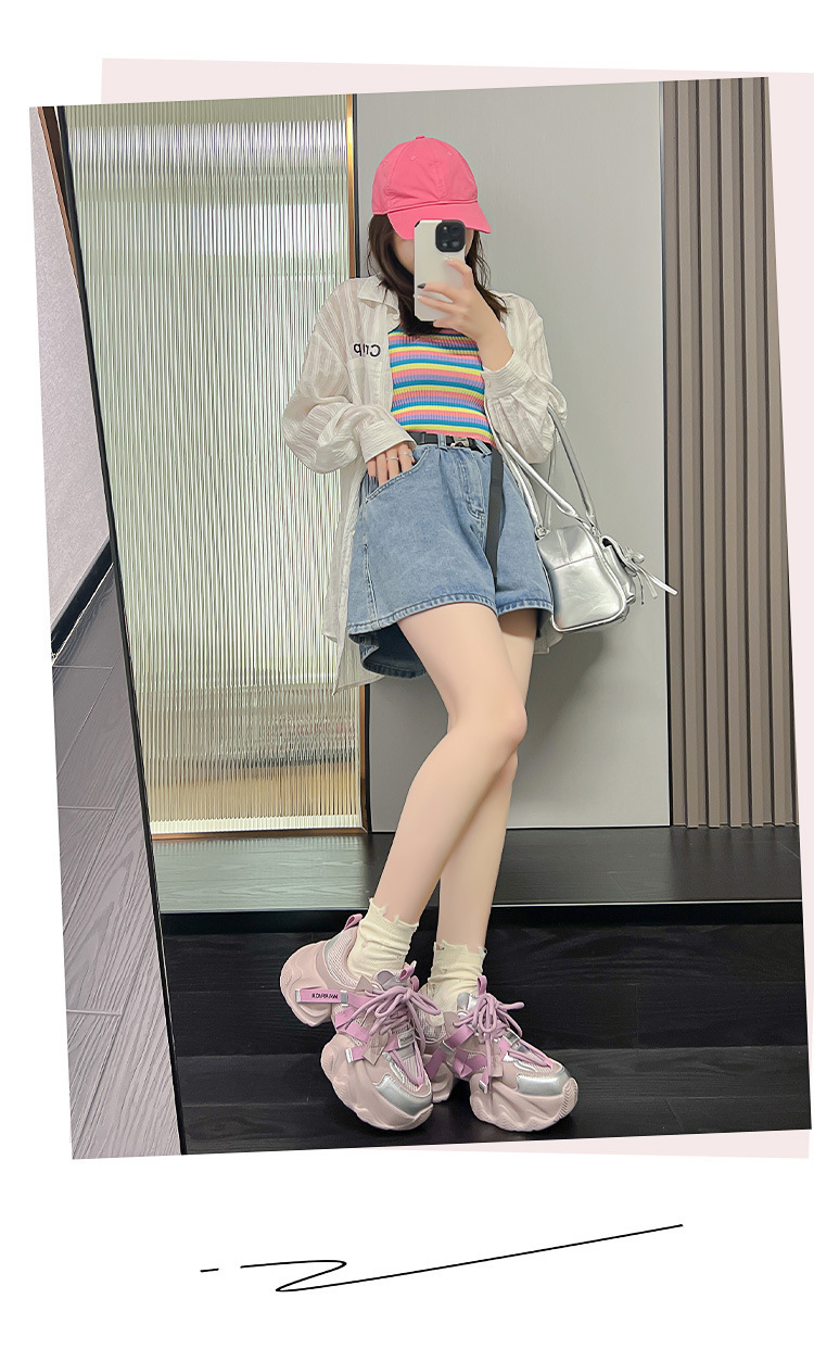 Женские летние кроссовки 2025 года, новые универсальные модные повседневные туфли на толстой подошве, спортивная обувь с эффектом увеличения роста.