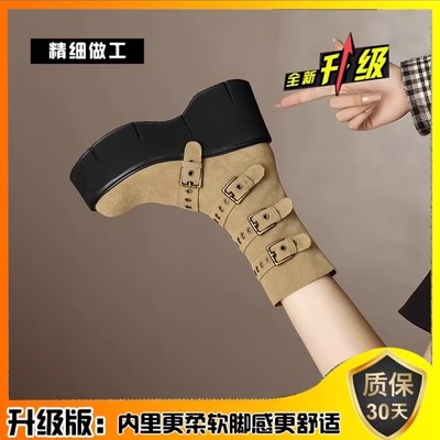 Маленькие сапоги Martin на высоком каблуке женские кожаные сапоги с толстым подошвом средней каблуки 2023 новые приливные прохладные матовые сапоги весной и осенью