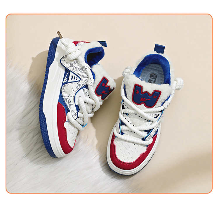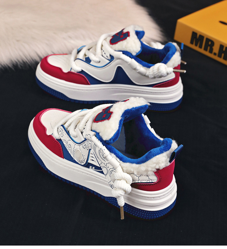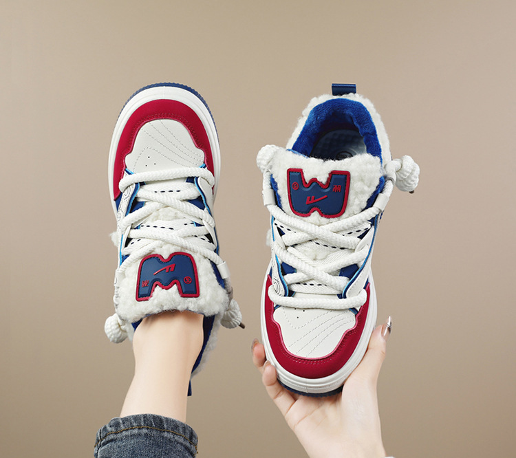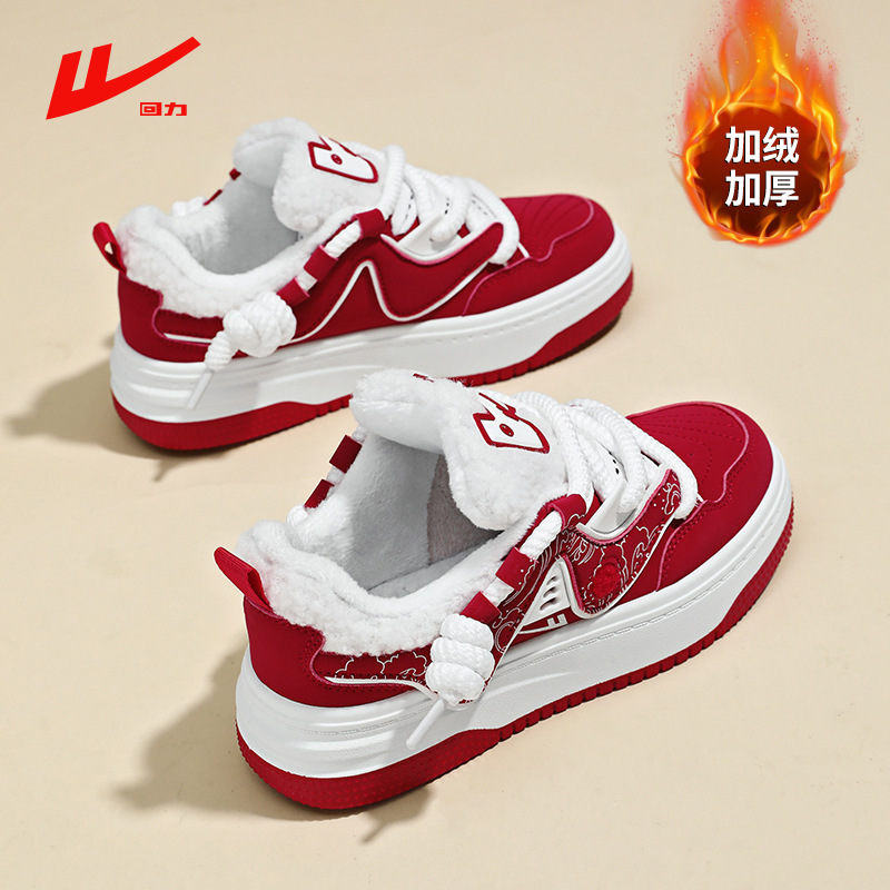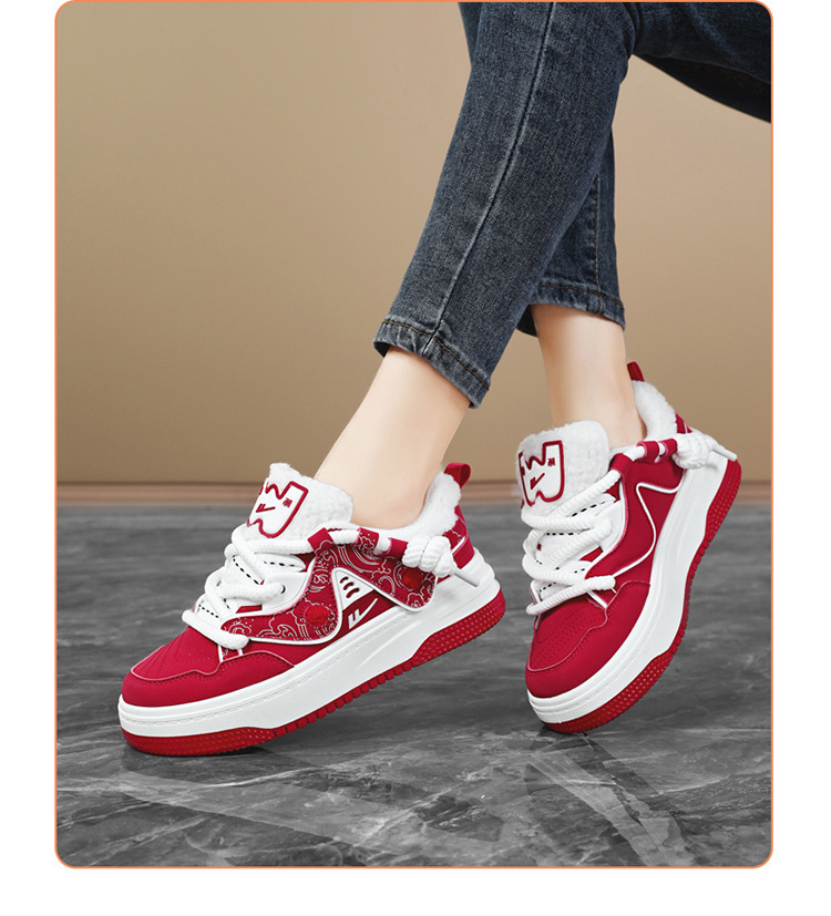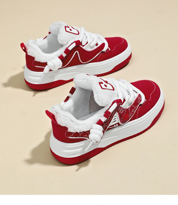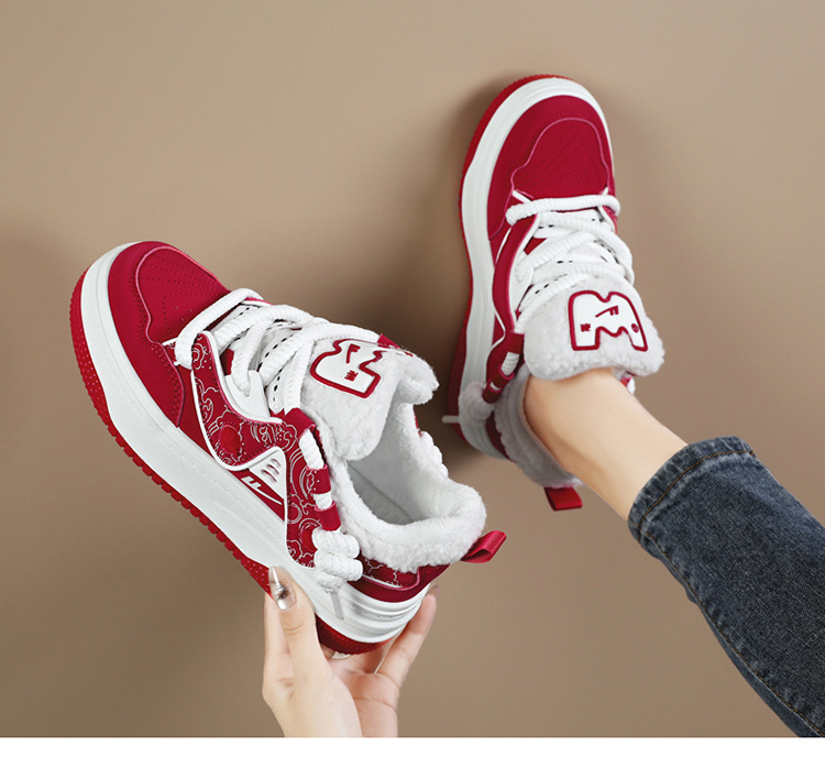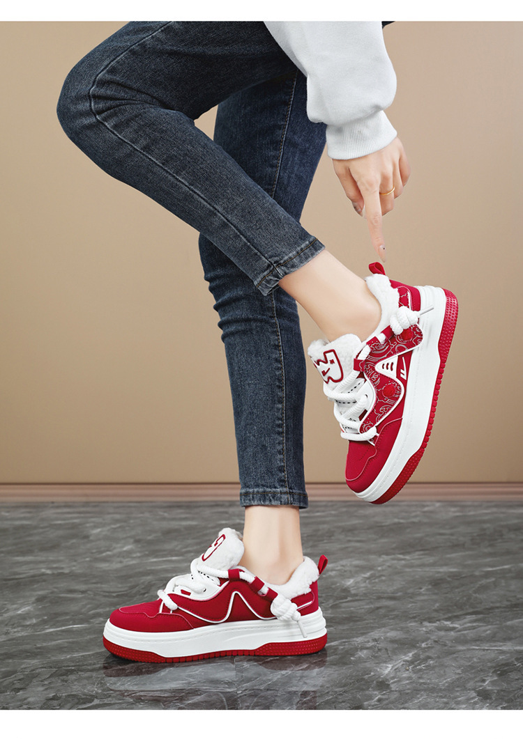 Опушенные хлопчатобумажные туфли плюс бархатные женские туфли зимой теплые хлопчатобумажные мужские туфли красные туфли праздничный повседневный большой размер 45 кроссовки