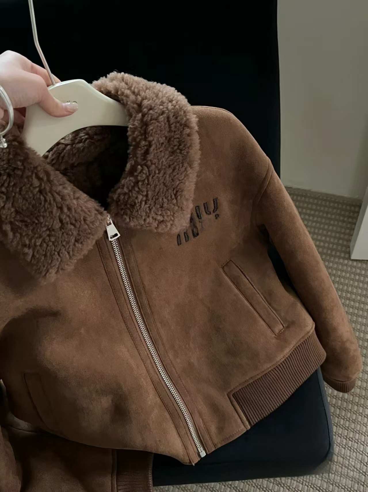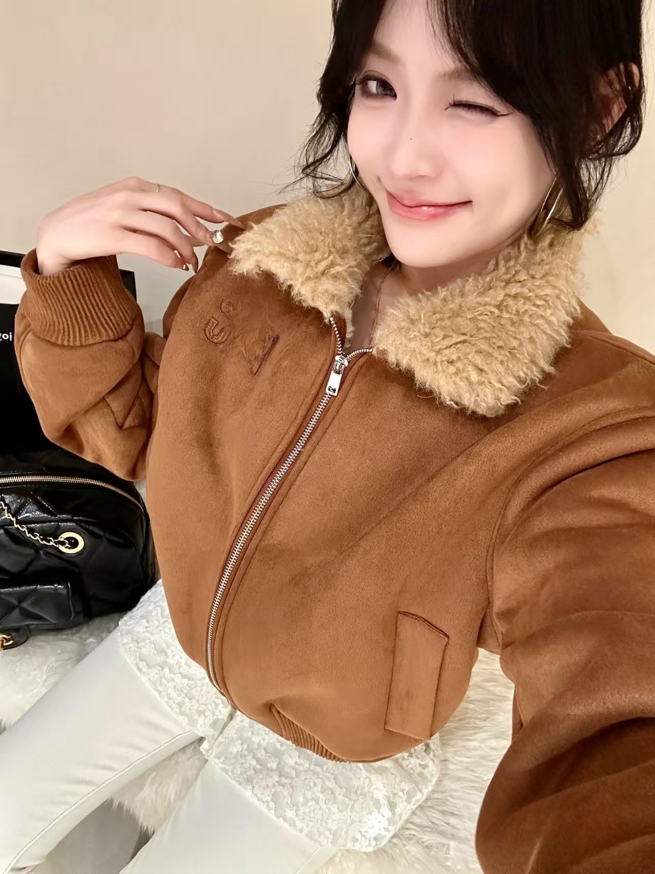 Пятно] MM элитная женская зимняя маленькая ароматная замшевая шерстяная воротник толстая куртка куртка женская волна