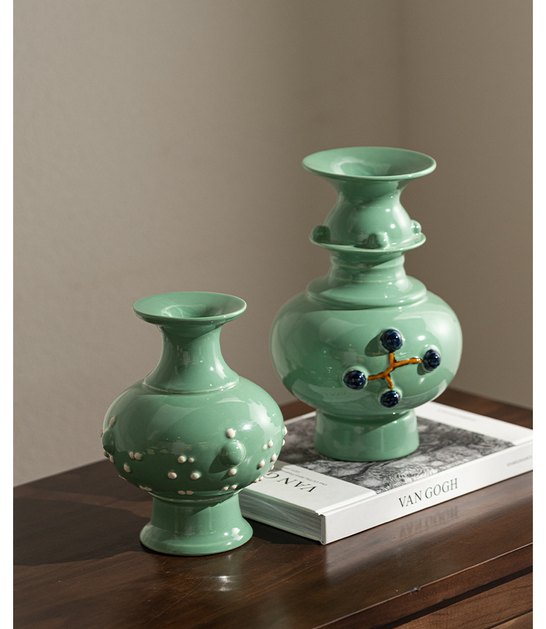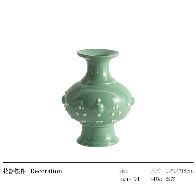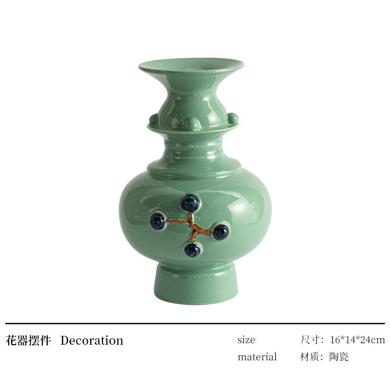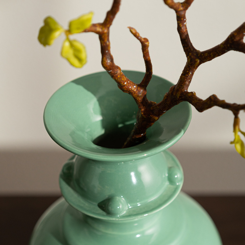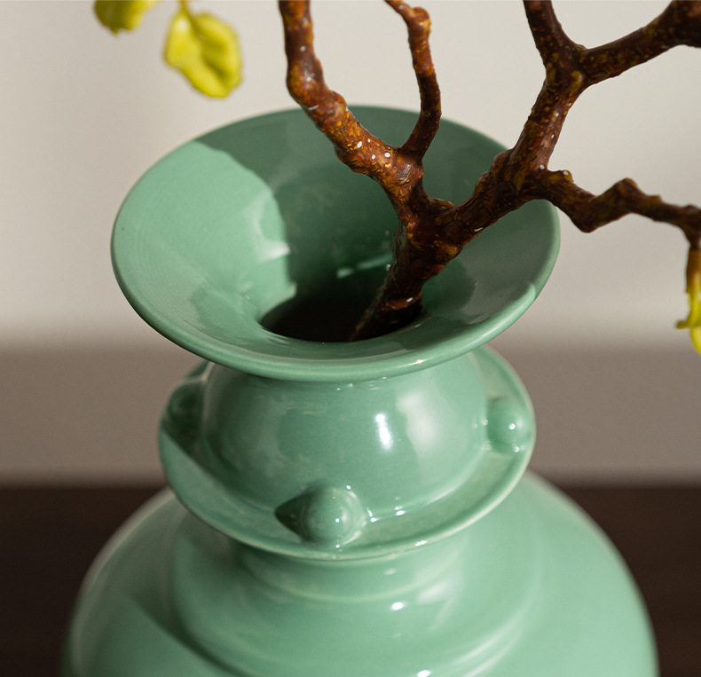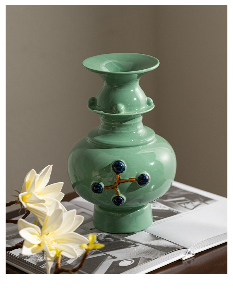 Продвинутые сенсорные керамические вазы ремесла Jingdezhen теневой селадон национальный стиль цветочного рельефа новый китайский орнамент