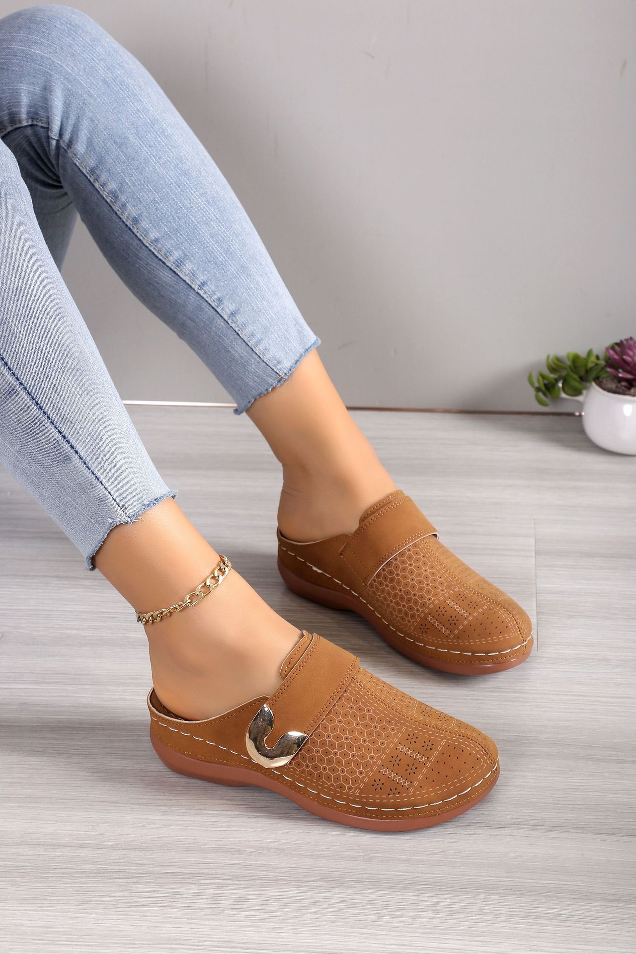 Внешняя торговля большой размер Баотоу плоское дно повседневная половинная тапочки женский 2024 новый сплошной цвет наклон с металлической пряжкой Пляжные тапочки