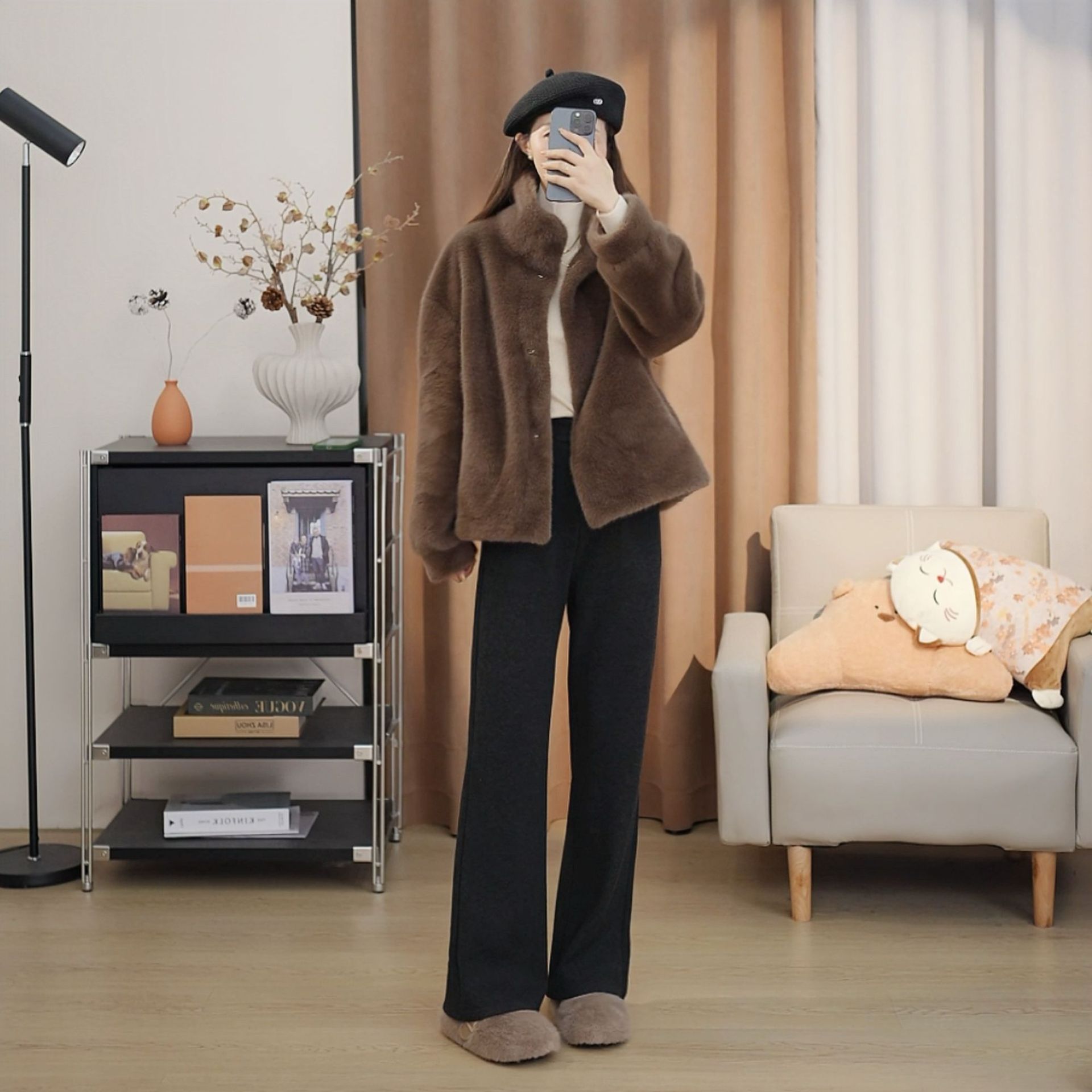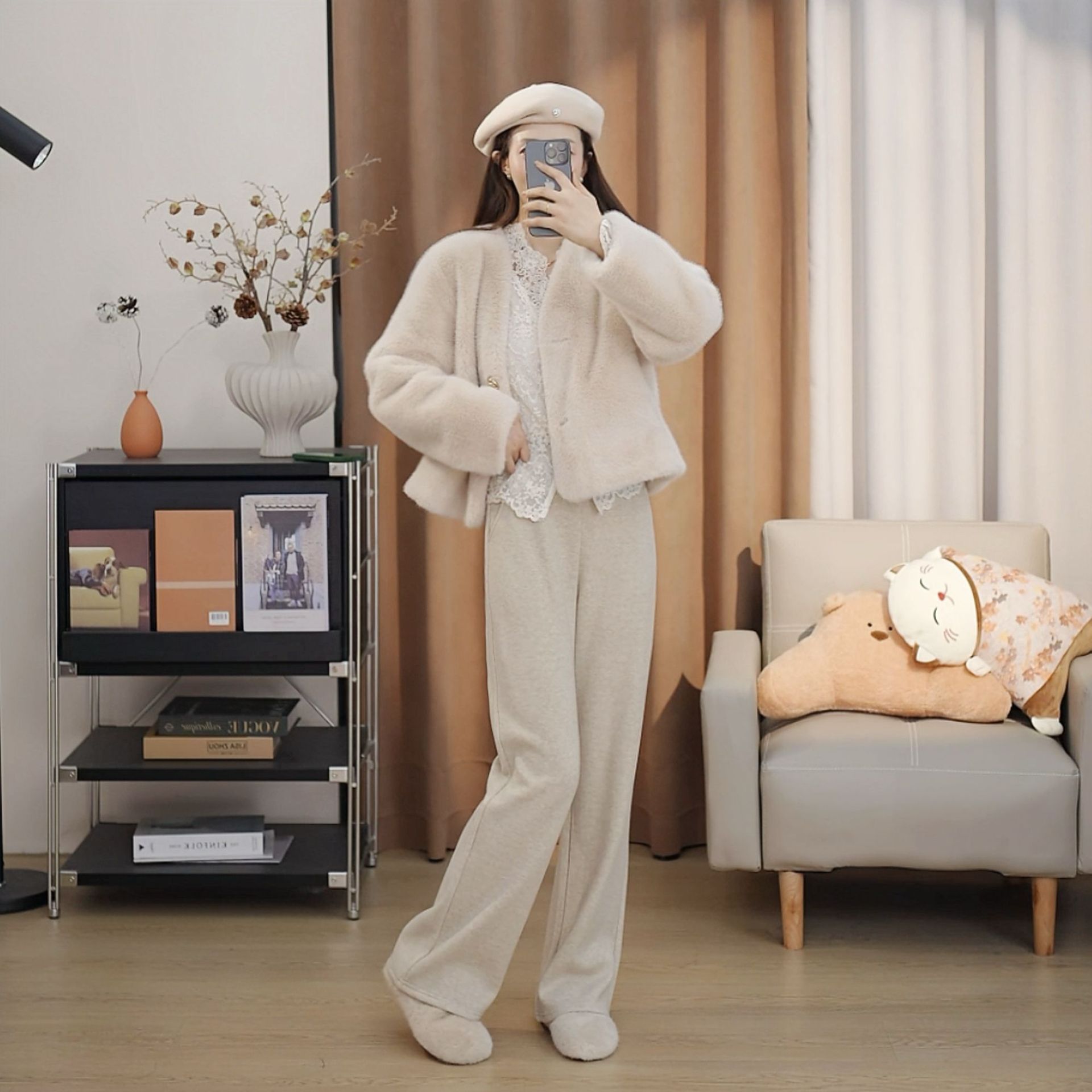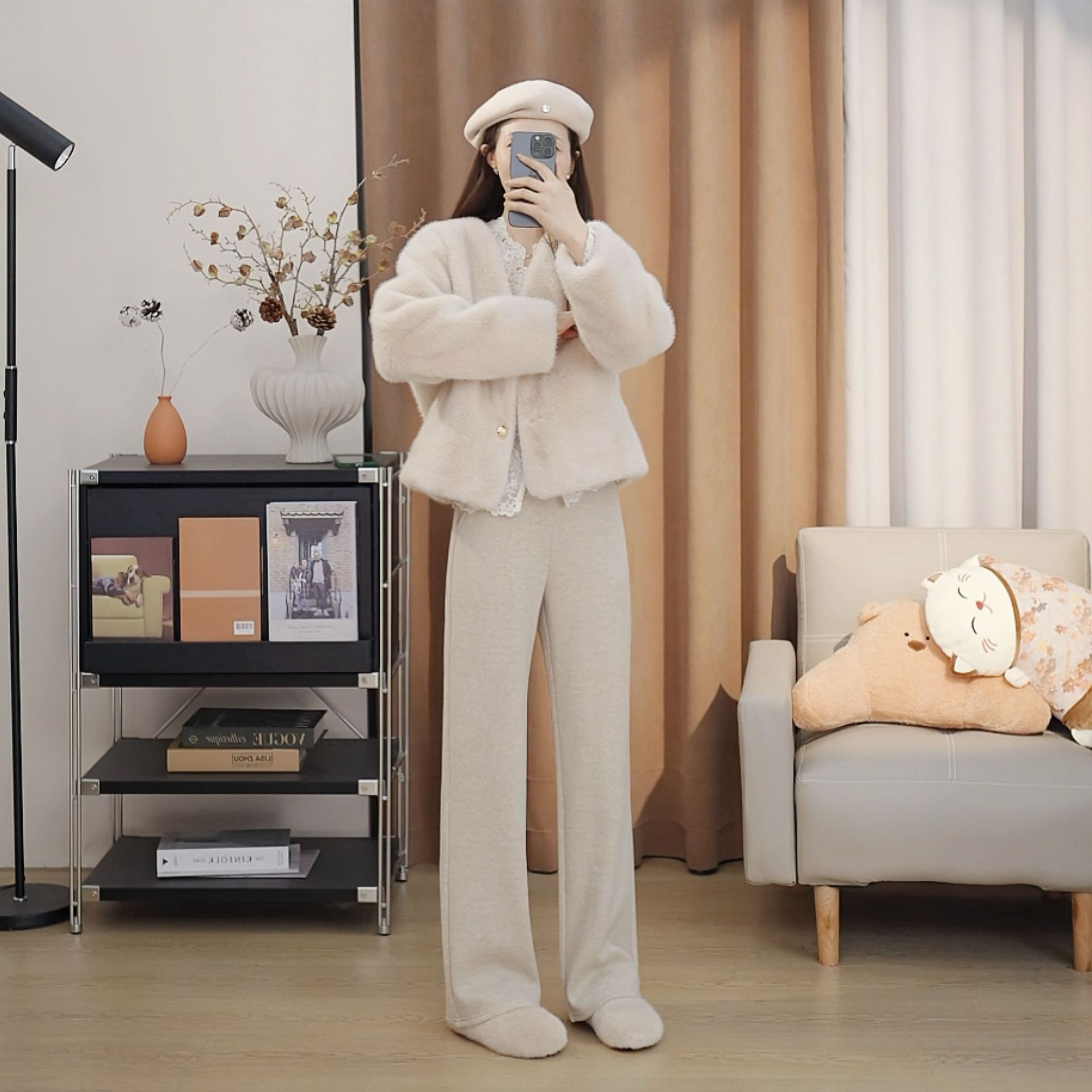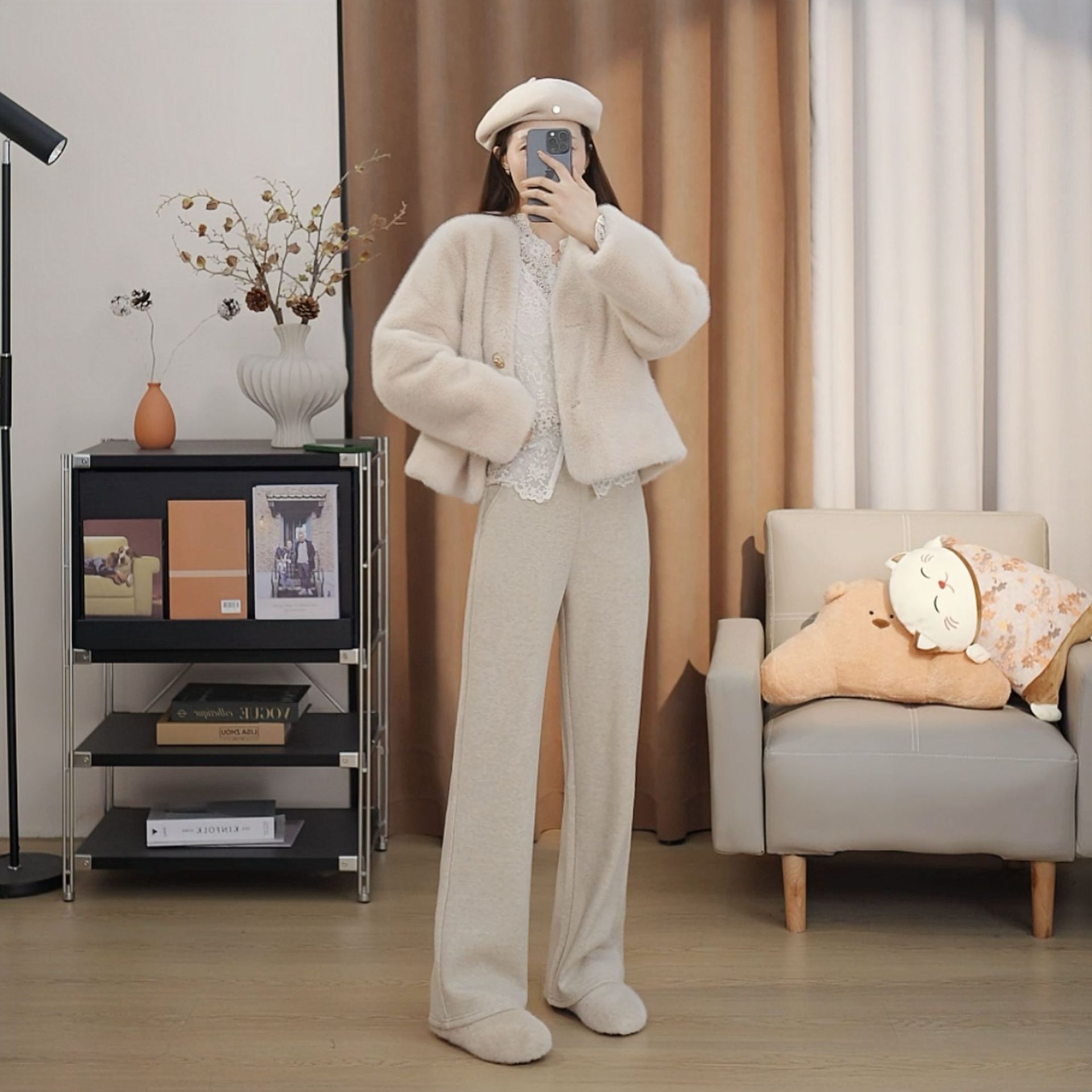 Толстый и пушистый маленький осенне-зимний досуг широкие ноги свободные дикие штаны тонкого темперамента