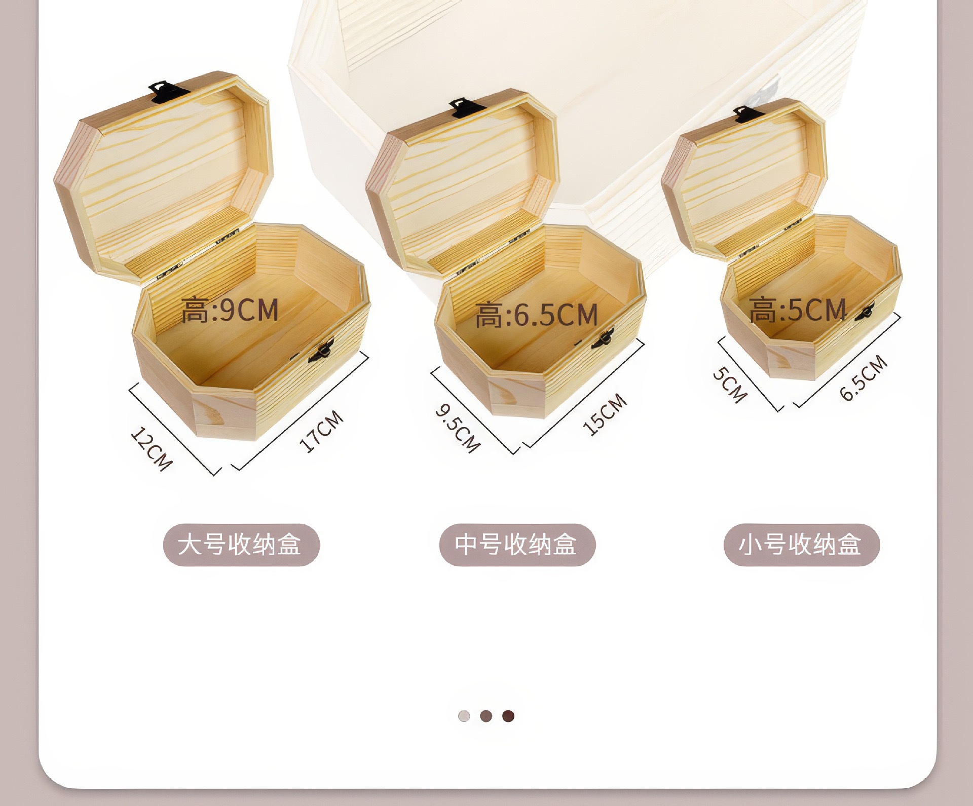 Осьмиугольная коробка 17/12/9 см.; Восьмиугольная коробка 15/9,5/6,5 см; Осьмиугольная коробка 6,5/5/5 см; восьмиугольная коробка 12/12/10,5 см; Шестиугольная коробка 12,5/11/6,7 см