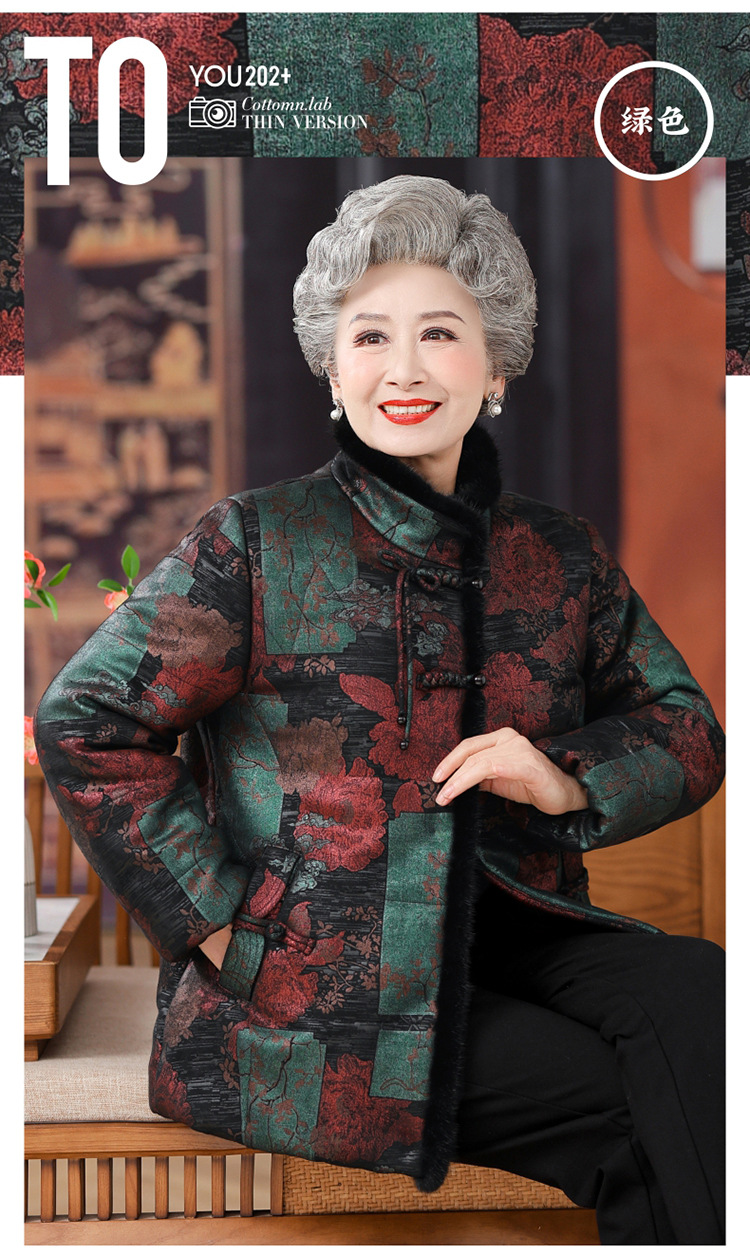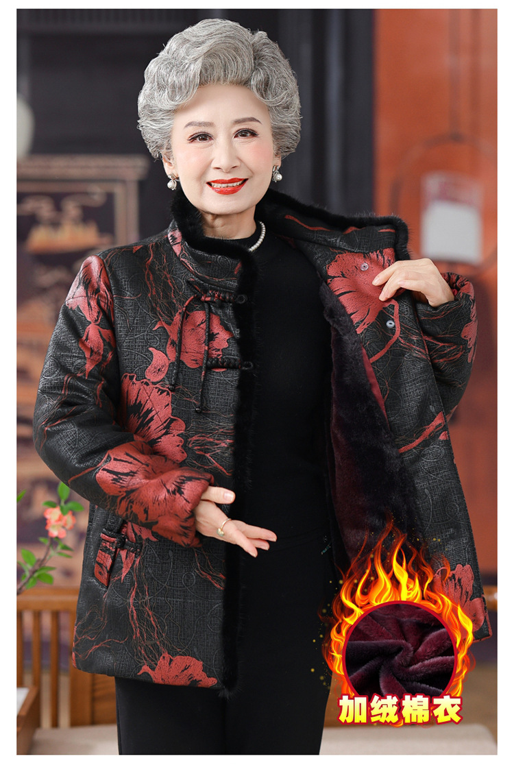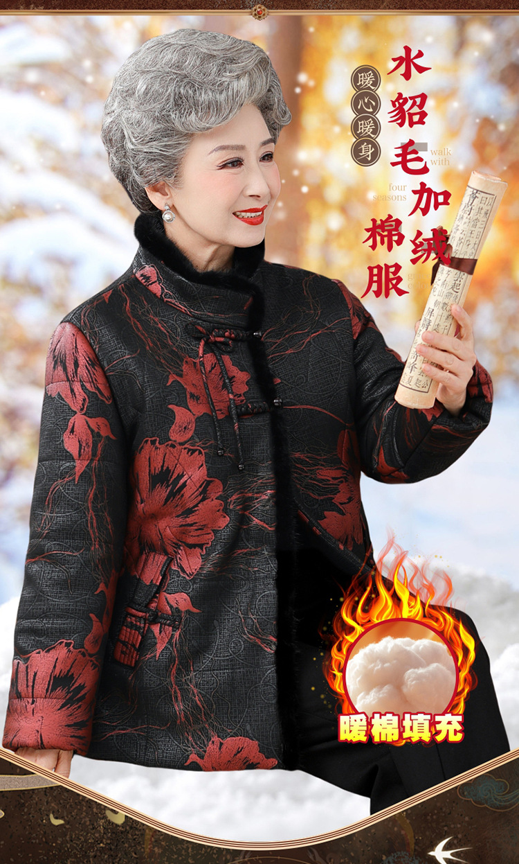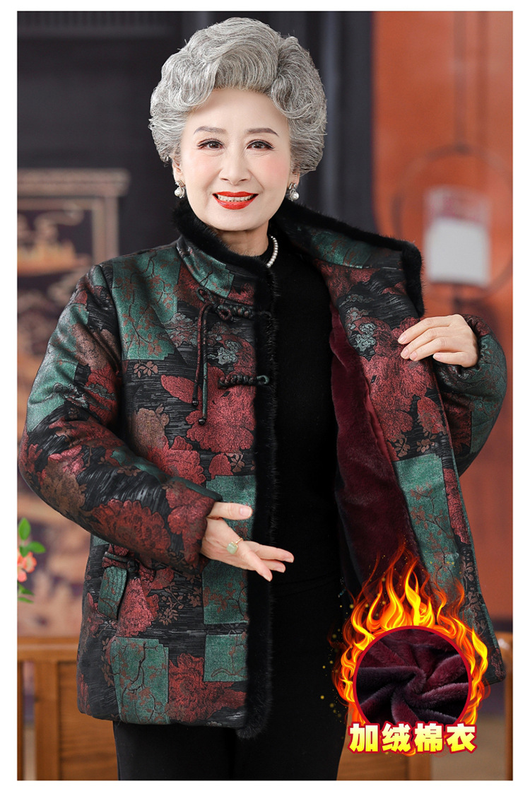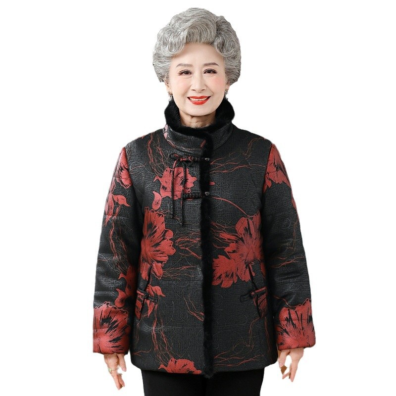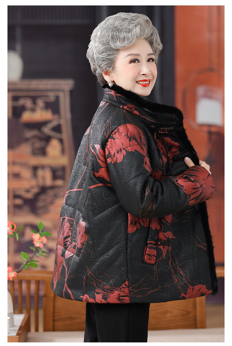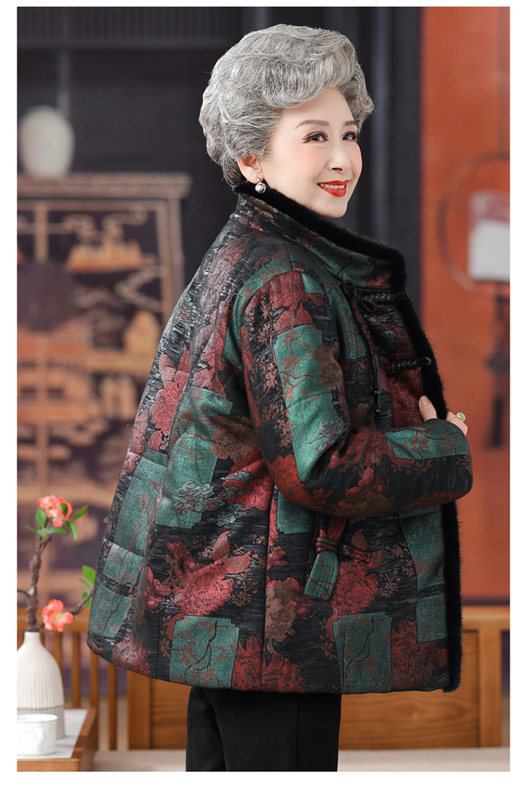 Бабушка зимний бархат толстый хлопчатобумажный костюм женщина пожилая мама норка шерстяной воротник пальто старуха теплая куртка