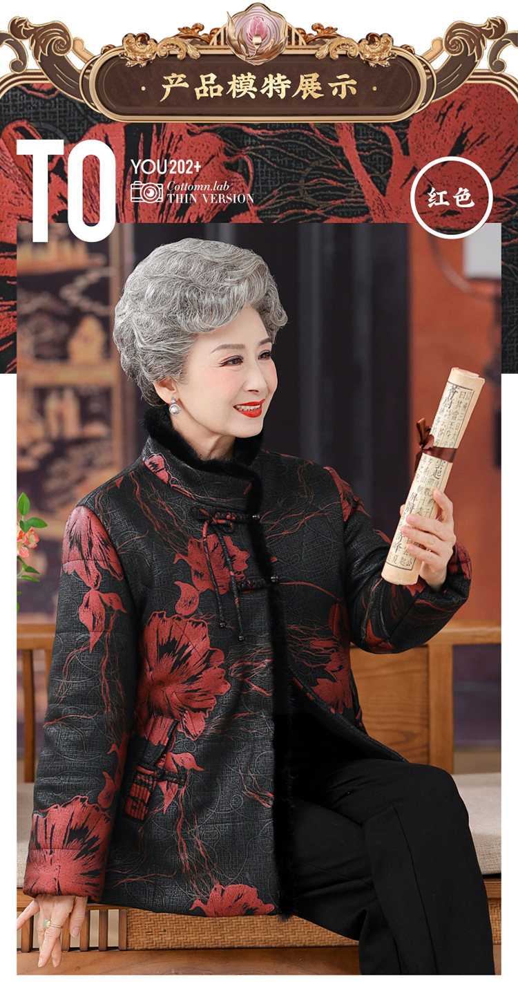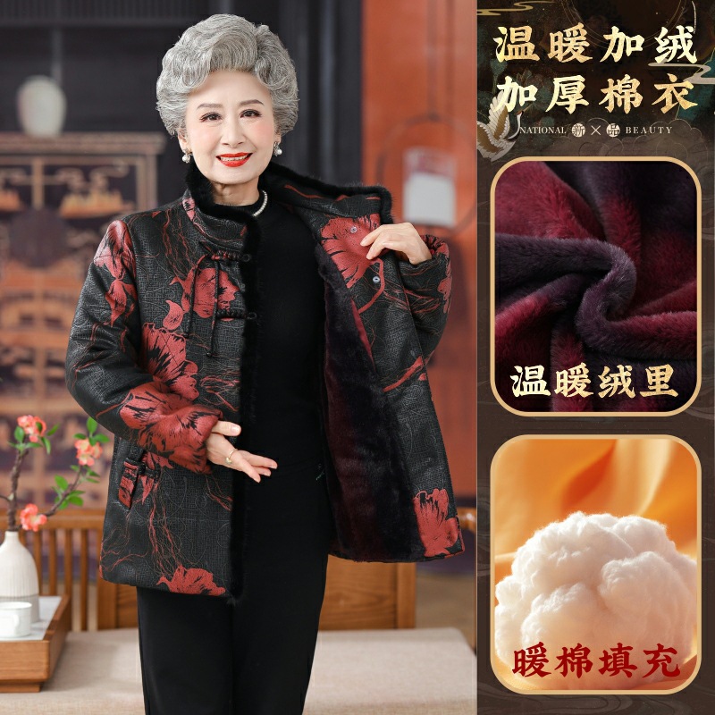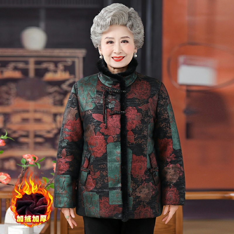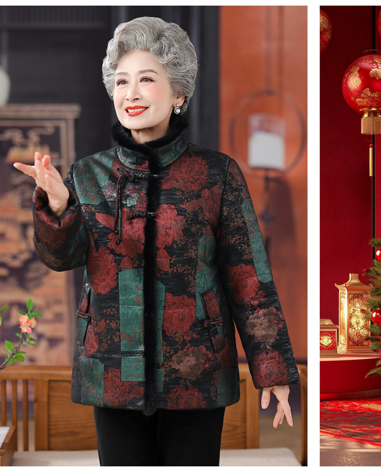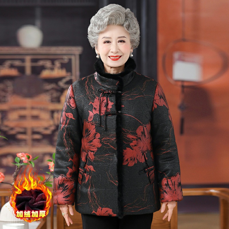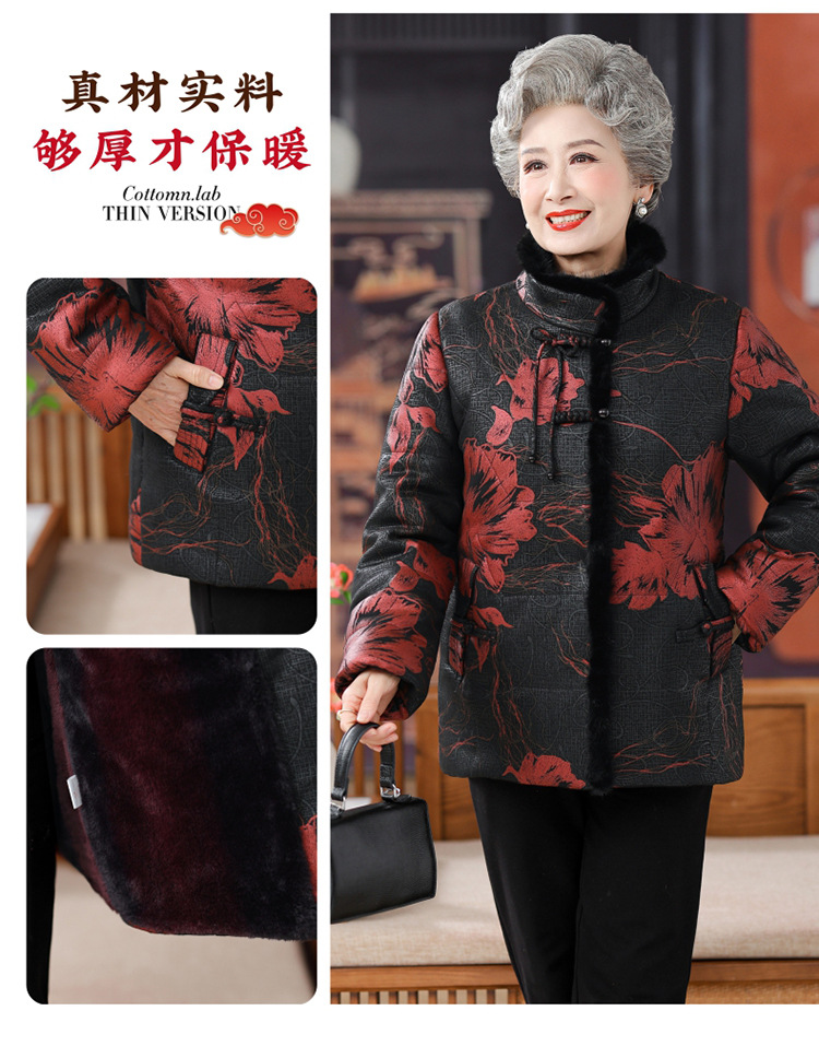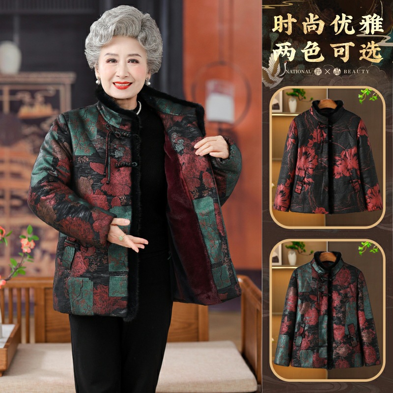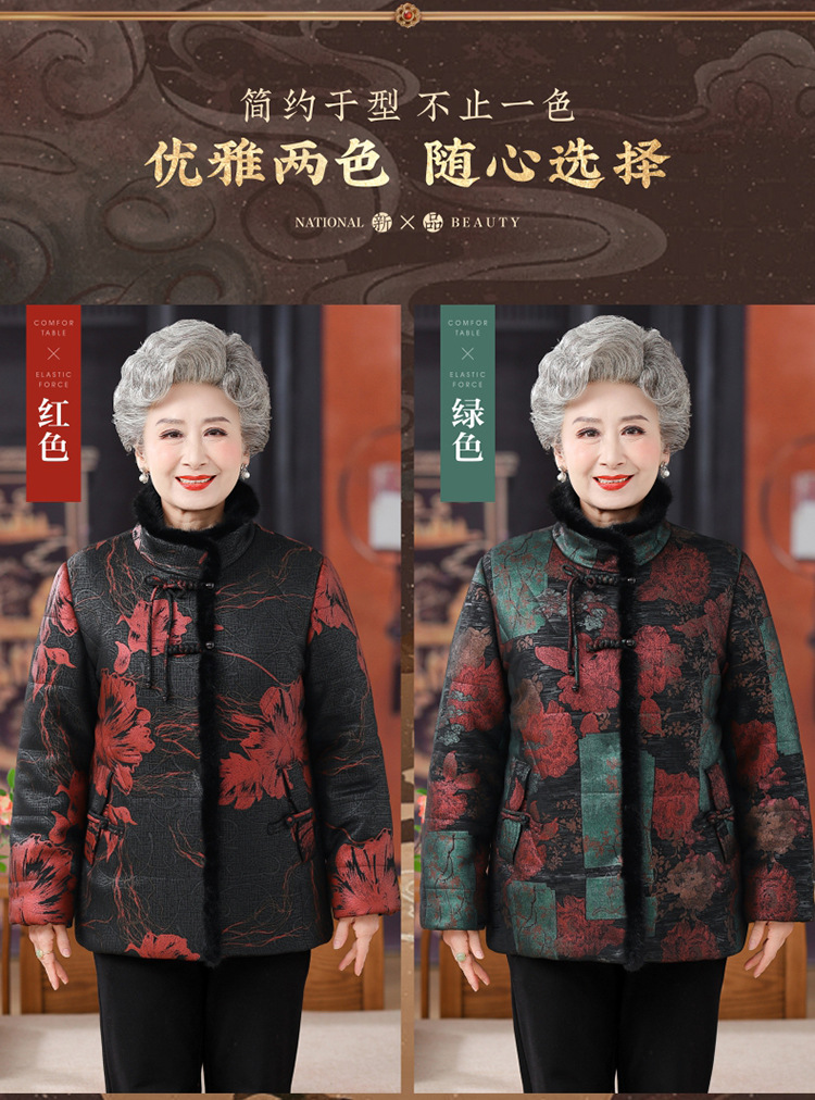 Бабушка зимний бархат толстый хлопчатобумажный костюм женщина пожилая мама норка шерстяной воротник пальто старуха теплая куртка