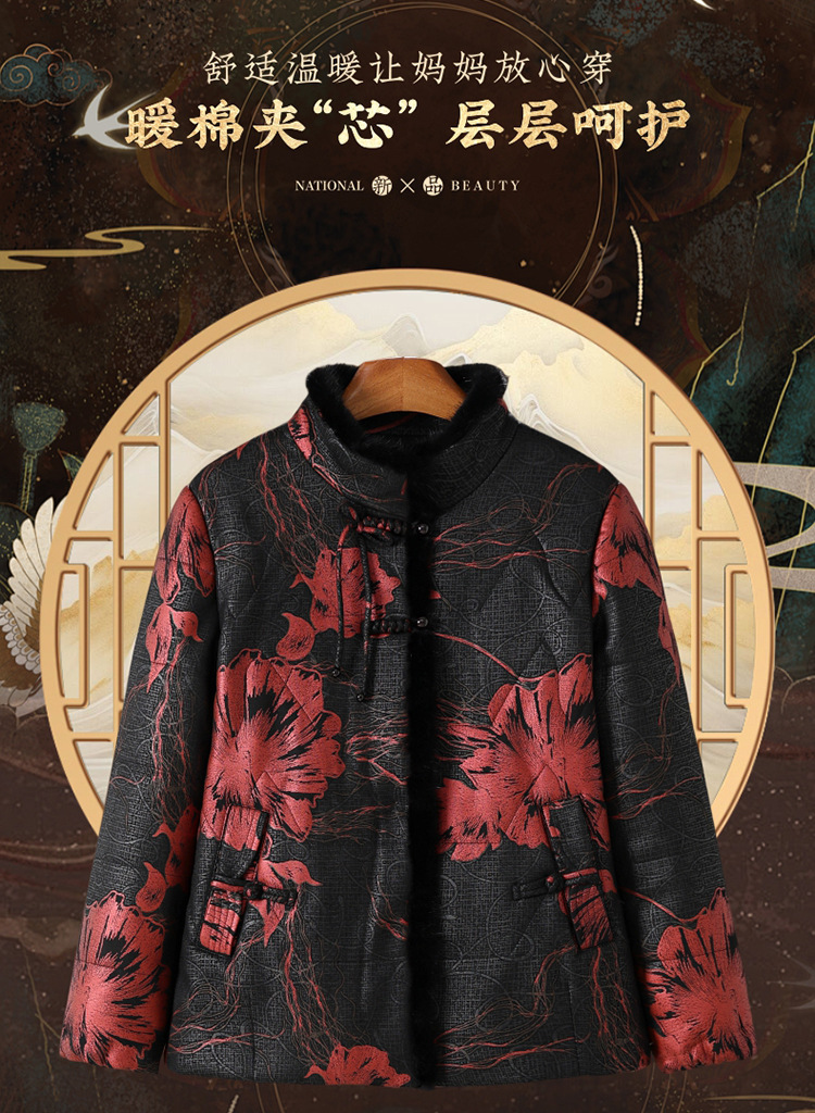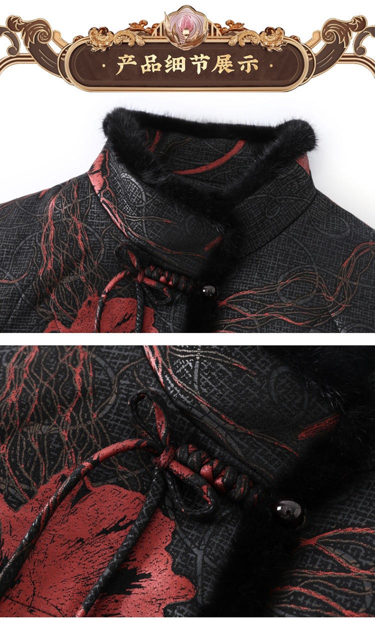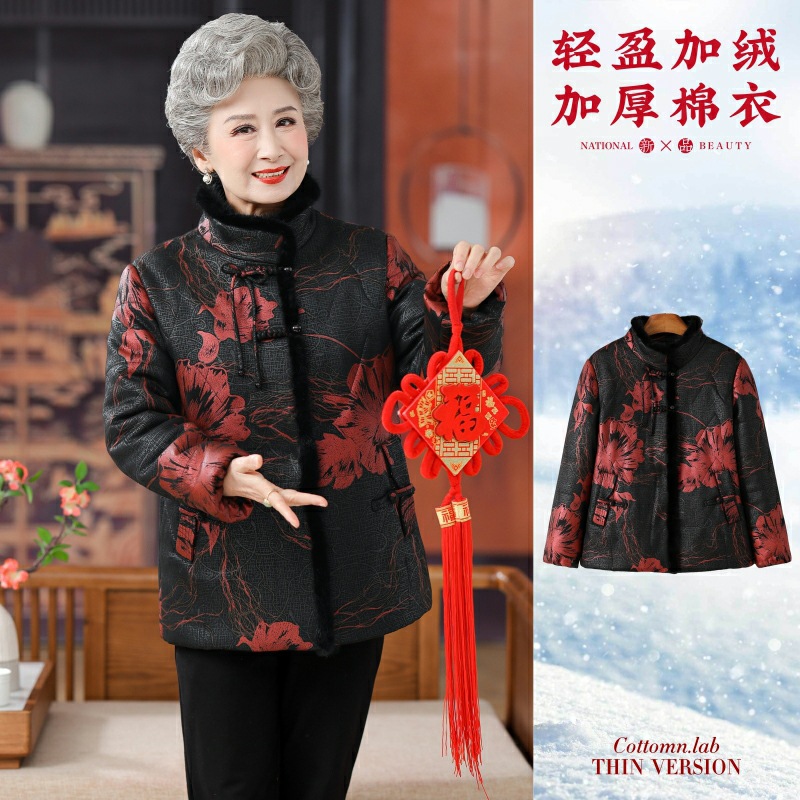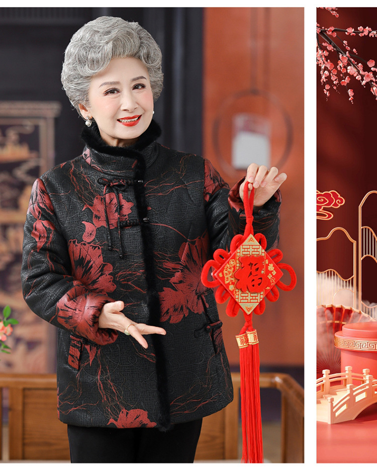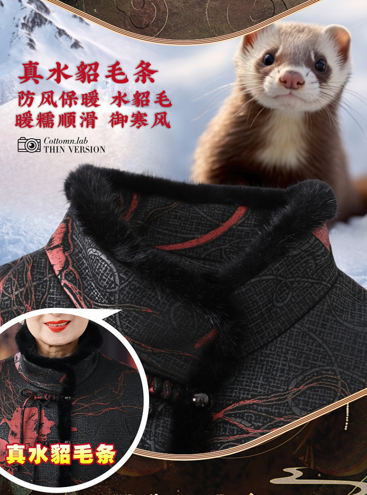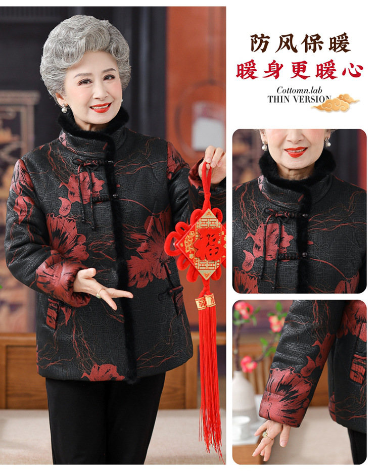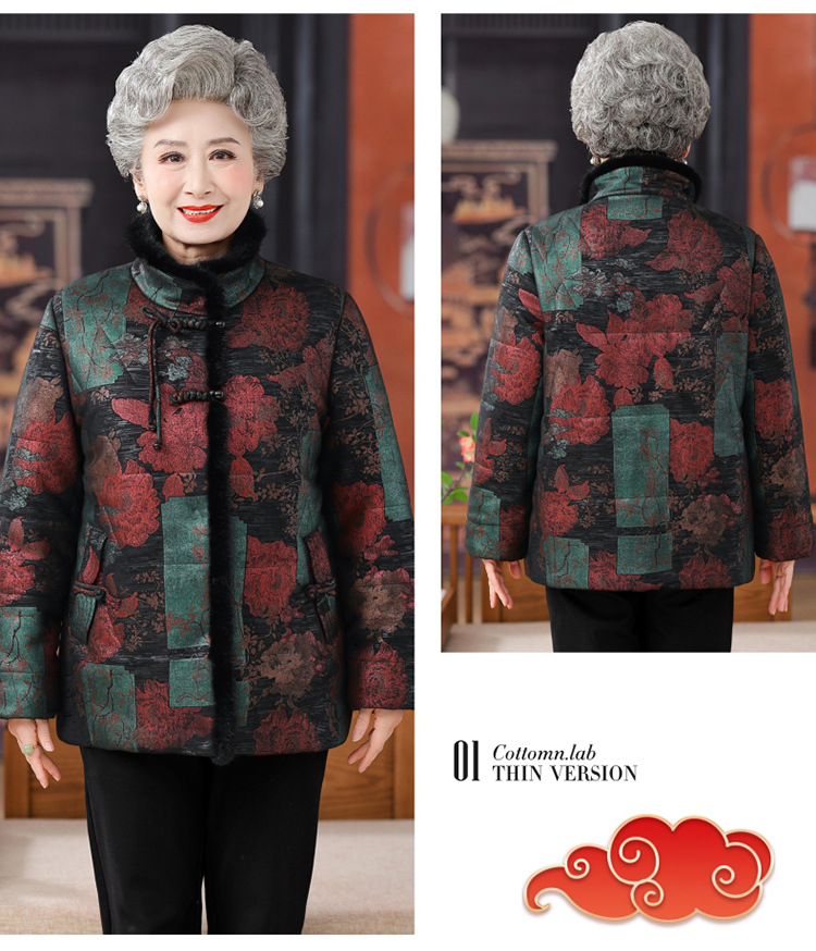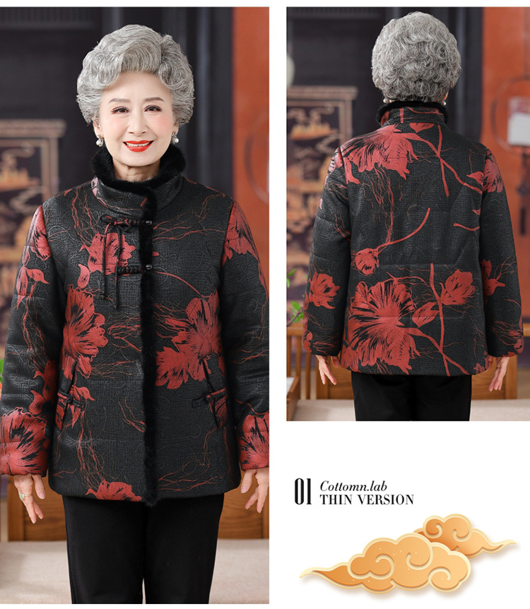 Бабушка зимний бархат толстый хлопчатобумажный костюм женщина пожилая мама норка шерстяной воротник пальто старуха теплая куртка