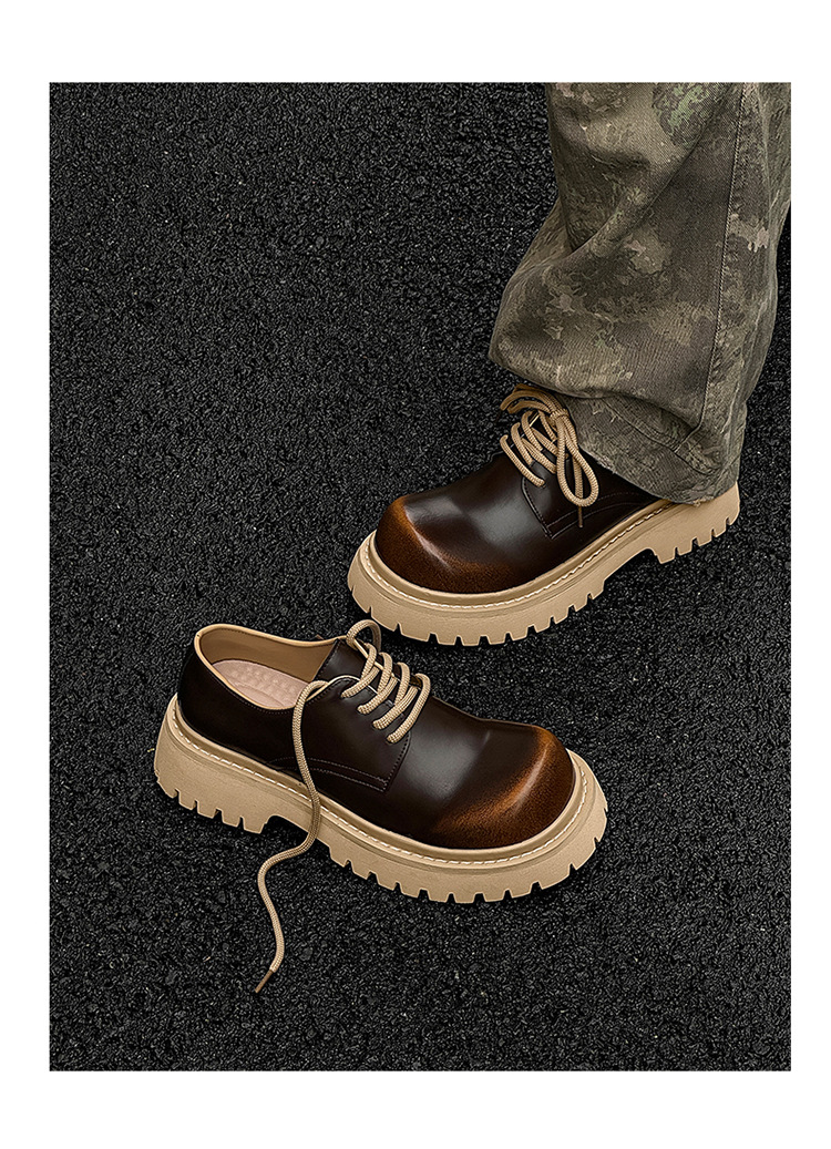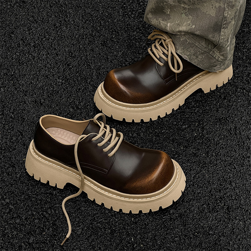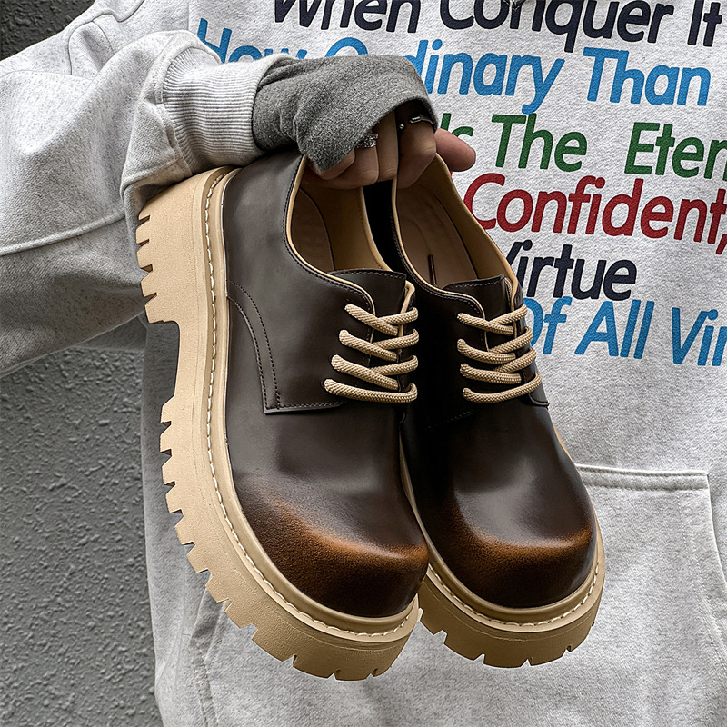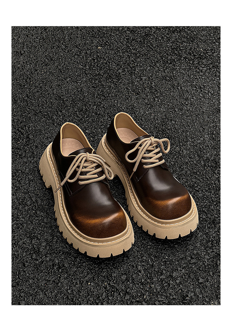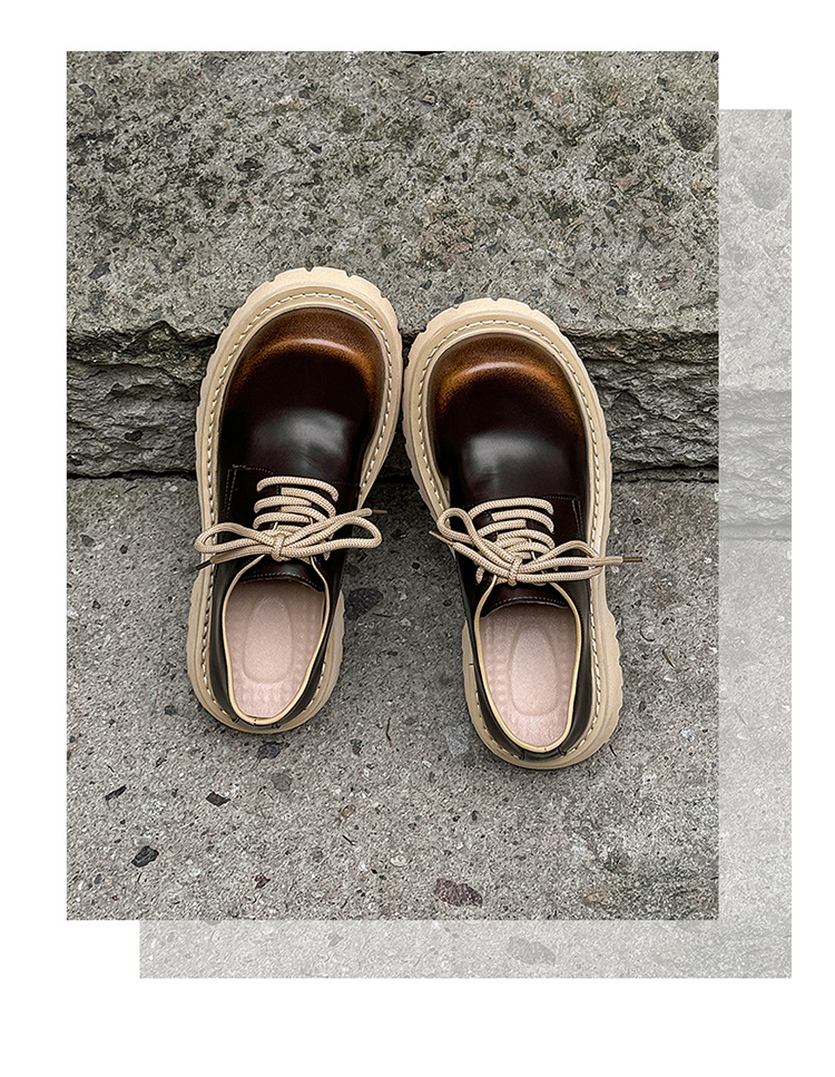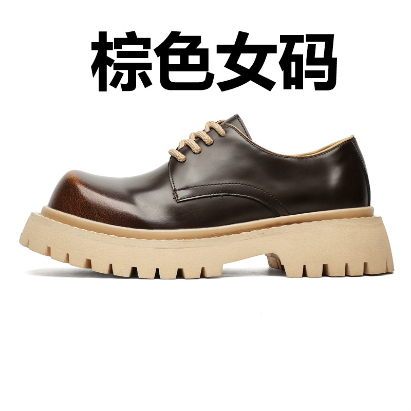 Туфли дерби с большой головкой Микки для мужчин и женщин, маленькие кожаные туфли на толстой подошве в британском стиле, с круглым носком 14702, коричневые-J