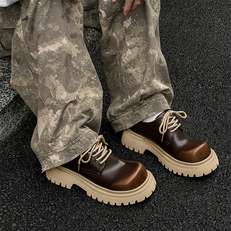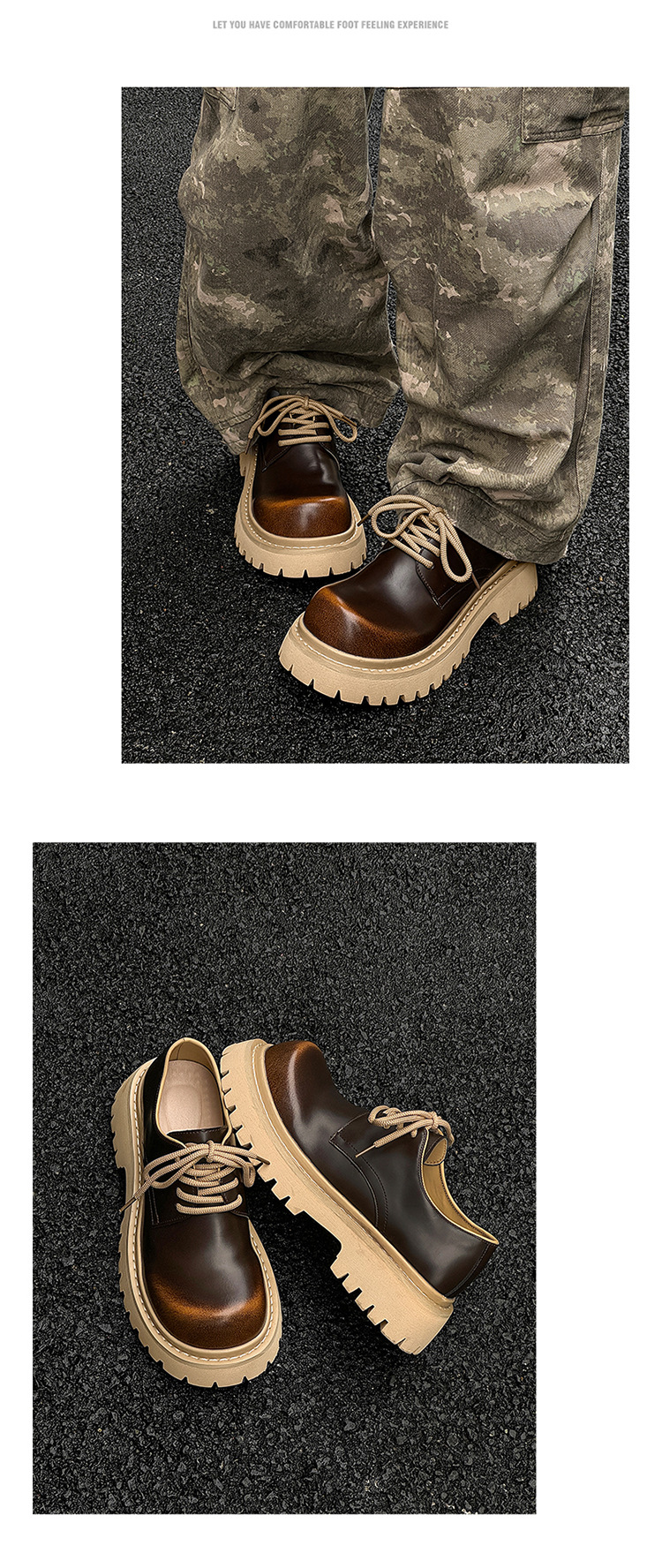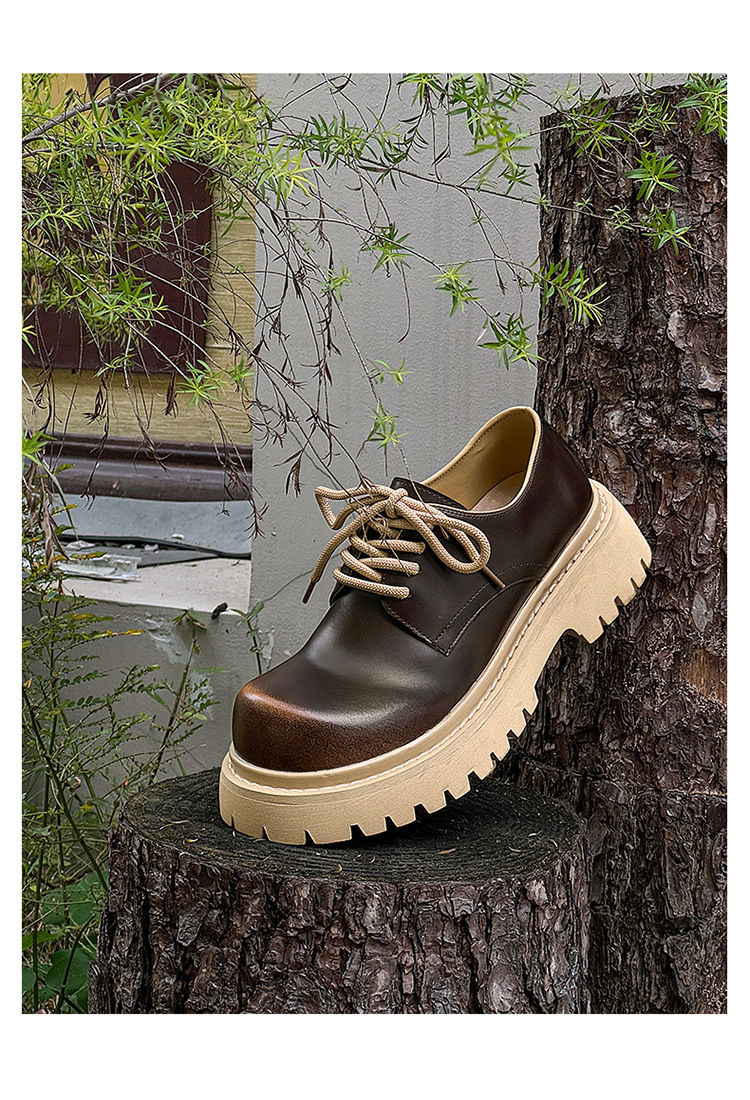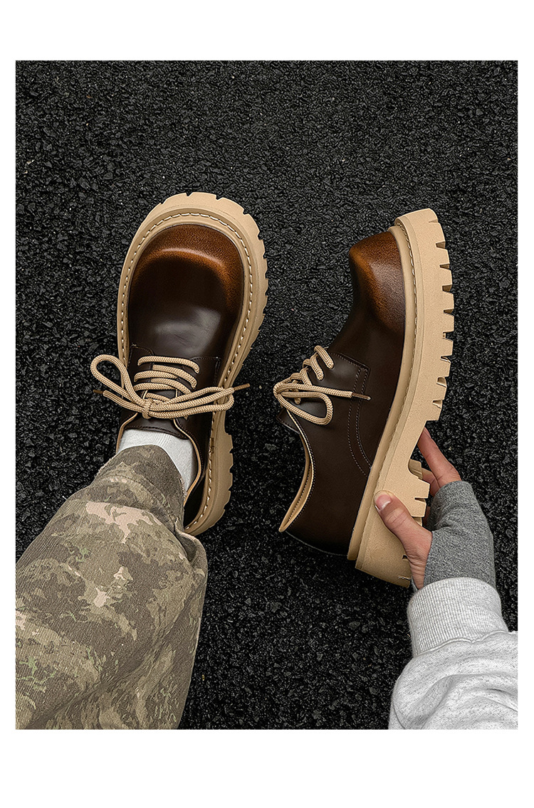 Туфли дерби с большой головкой Микки для мужчин и женщин, маленькие кожаные туфли на толстой подошве в британском стиле, с круглым носком 14702, коричневые-J