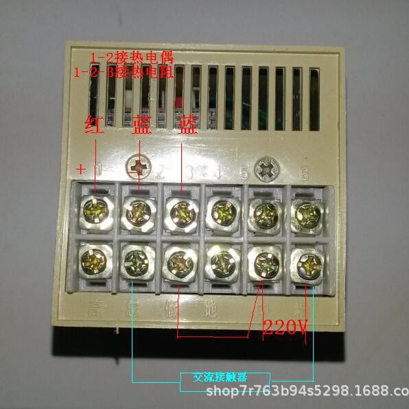 仪表接线1、2是接热电偶1是正极,2是负极(热电阻是接1 2 3,1是正极,2,3是接负极)红色的是正极哦! 仪表接负载的话,一般只能带动几百瓦所以要接交流接触器来带动,如图 先把仪表的低跟中用一根导线连接,中、相是接电源220VAC,总跟相是接接触器的线圈,最后线圈的两根头接负载(就是加热器之类的)