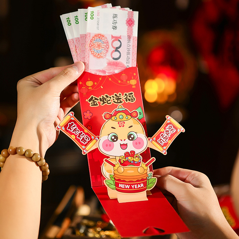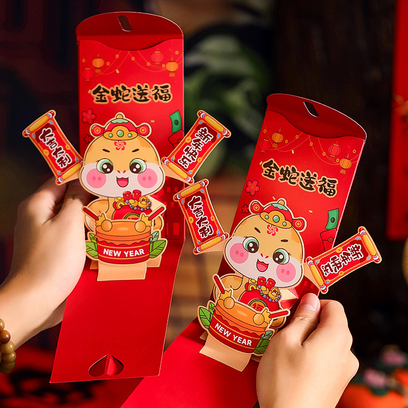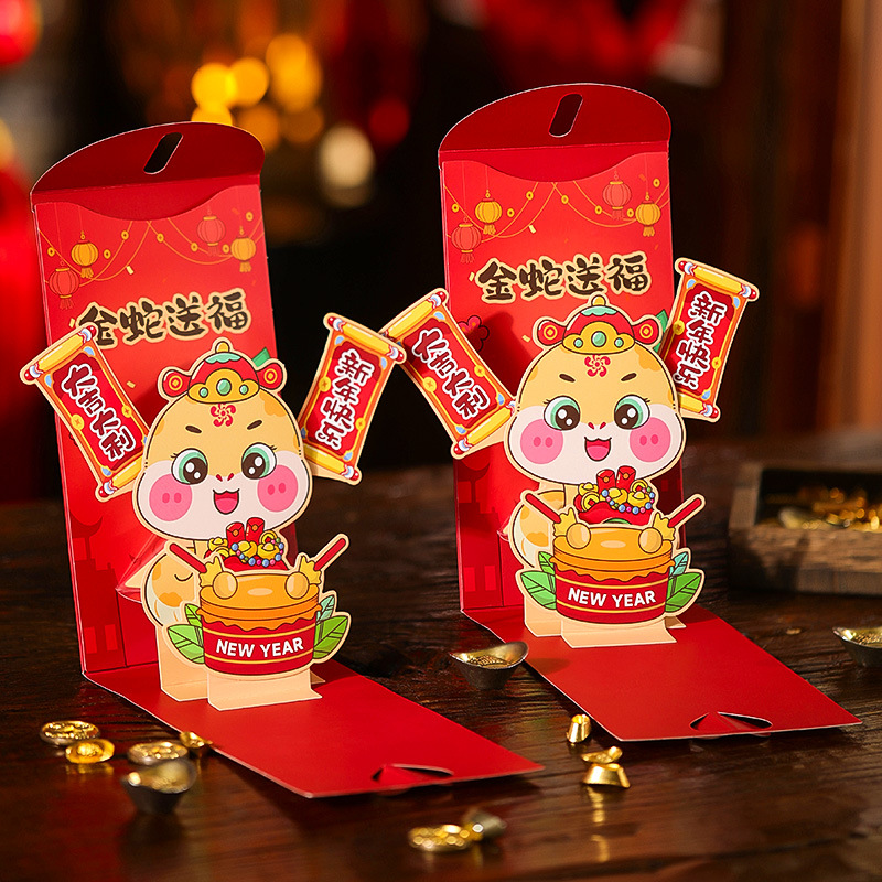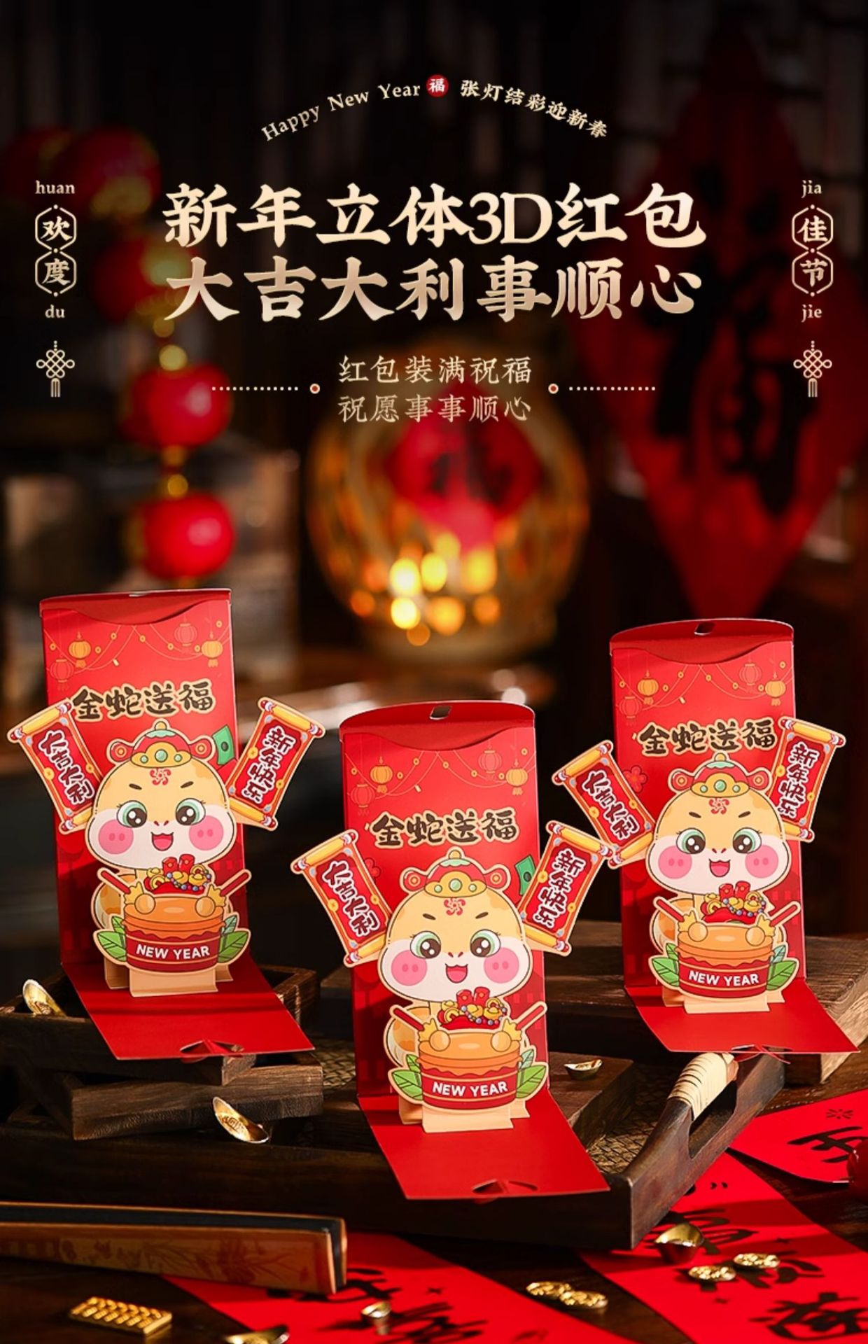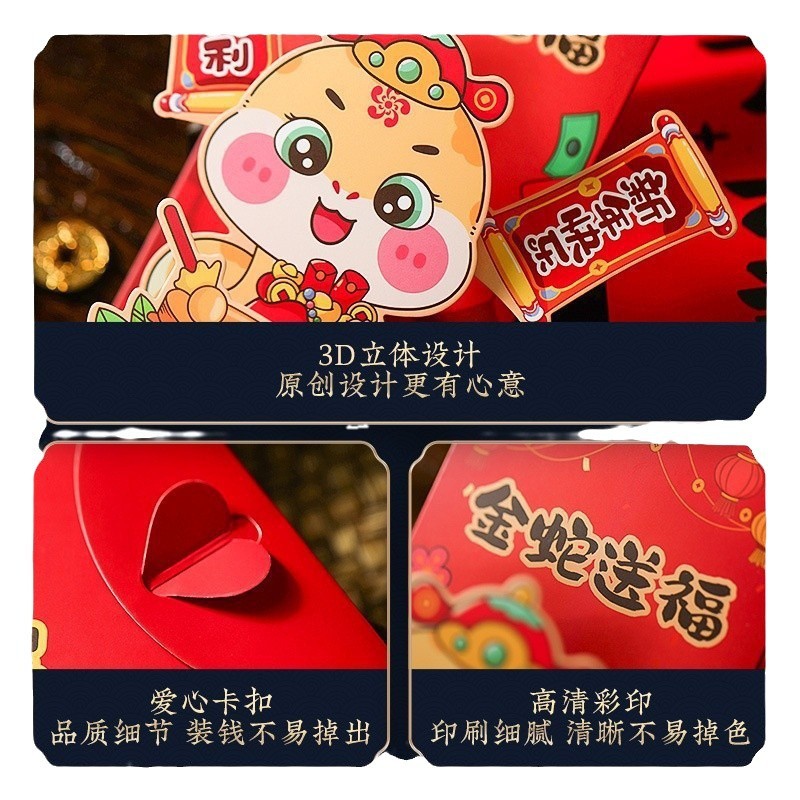 Год Смеи 2025Новое поступление, креативная красная сумка-конверт, новогодний мультяшный стереокрасный пакет, новогодний весенний фестиваль, нейтральный новогодний кошелек