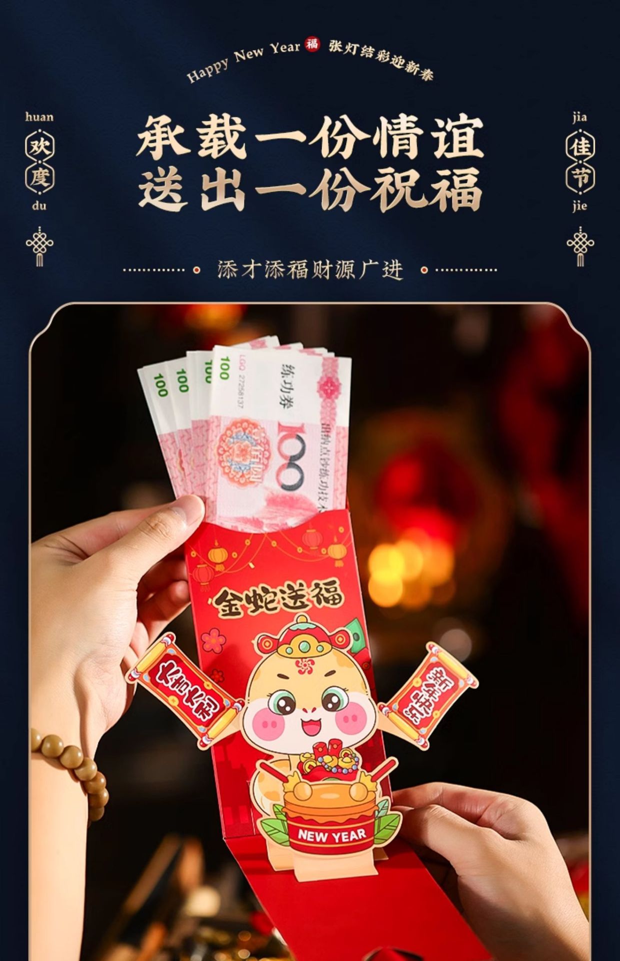 Год змеи 2025 новый творческий красный мешок новогодний мультфильм трехмерная прибыль