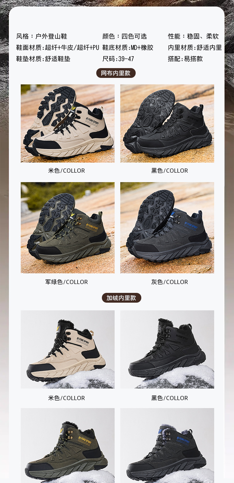 Трансграничные сапоги большого размера мужского пола на открытом воздухе высокая горная обувь зимой плюс бархат теплые толстые подошвы снежные сапоги модные сапоги оптом