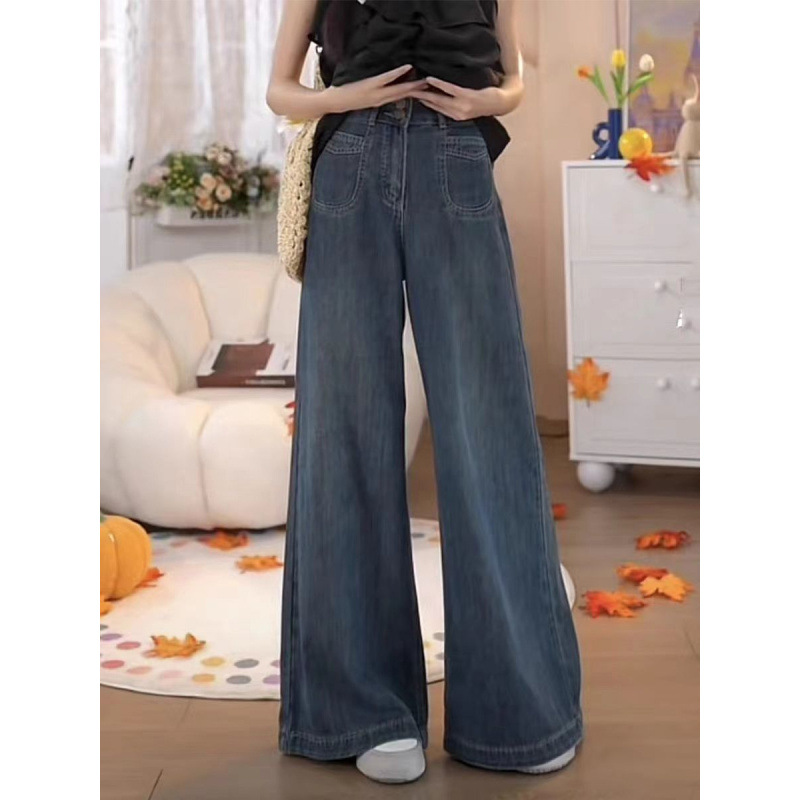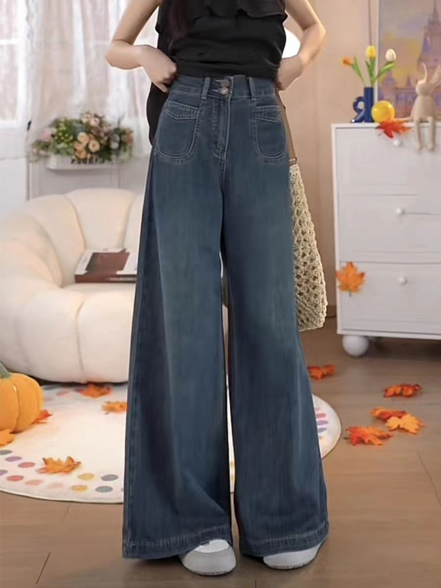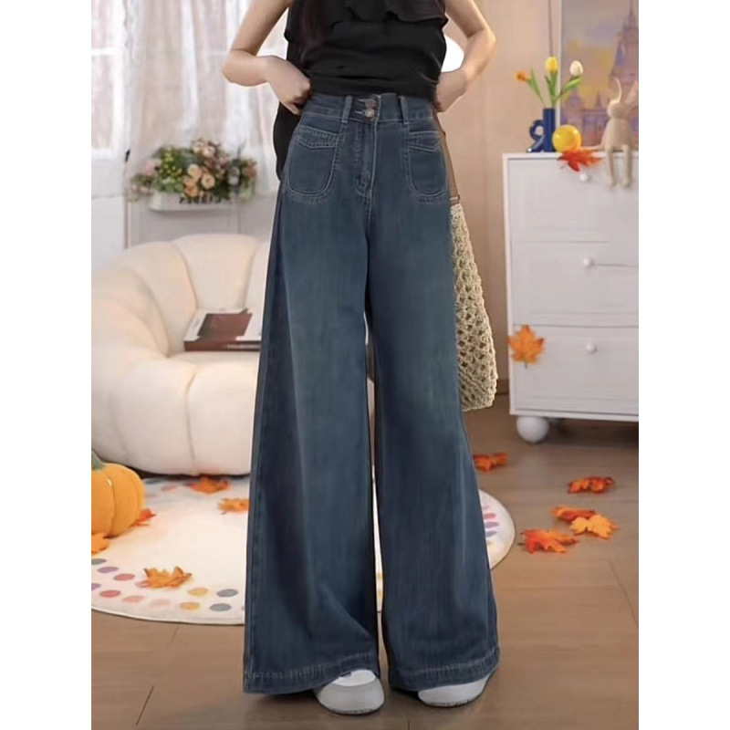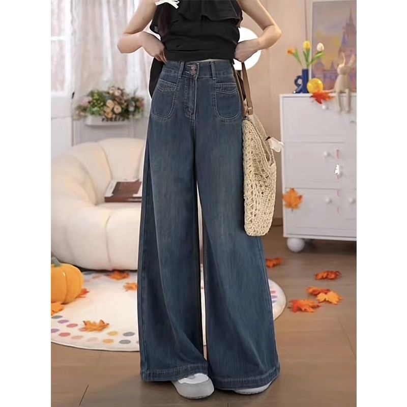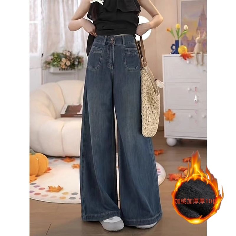 Ретро широкие джинсы женские осенние и зимние бархатные толстые новые свободные с высокой талией тонкие прямые брюки