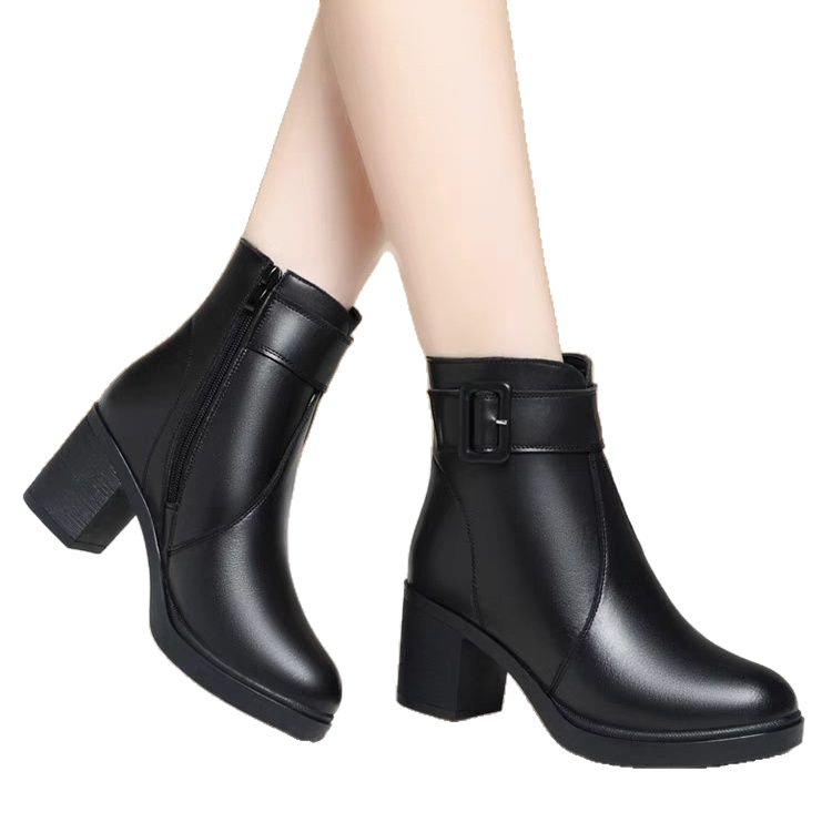 Женские короткие сапоги толстые кожаные туфли на каблуках зимние бархатные толстые женские туфли среднего возраста толстые толстые кожаные мамочки хлопчатобумажные туфли