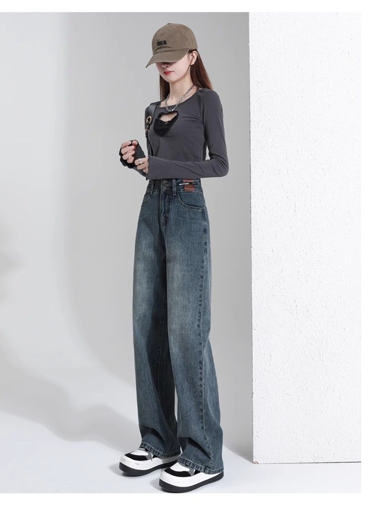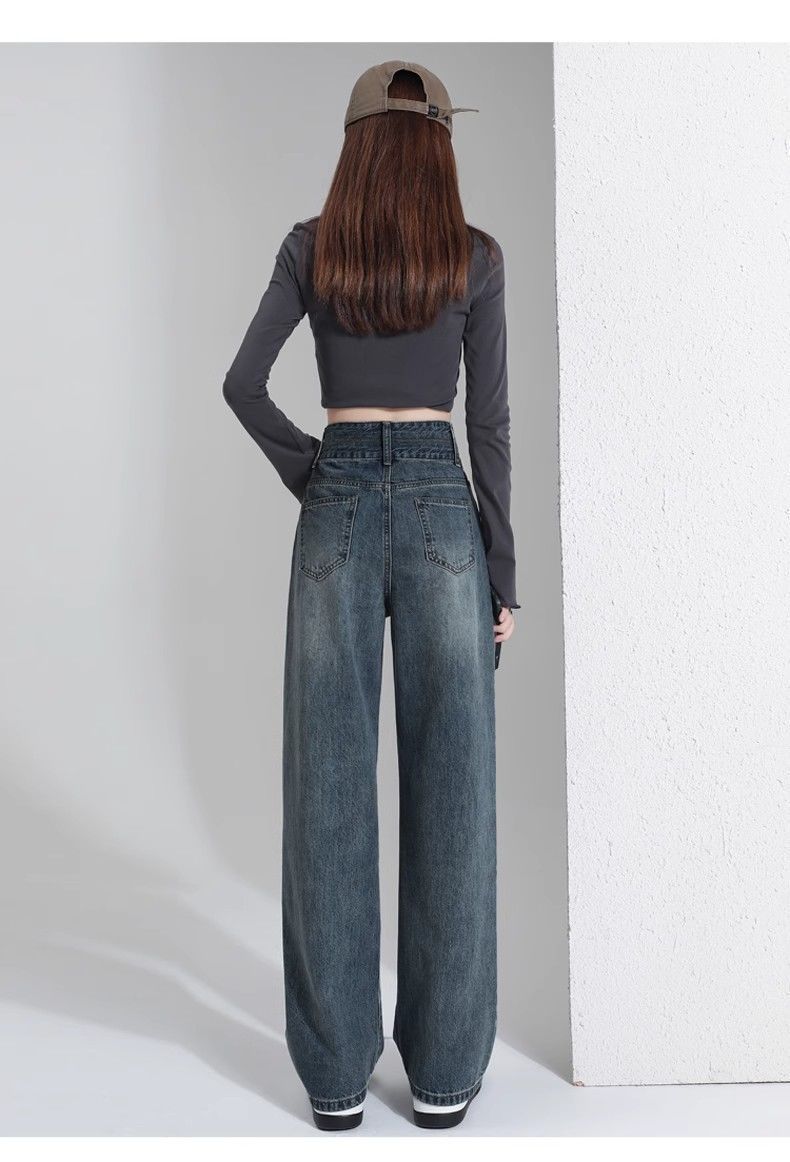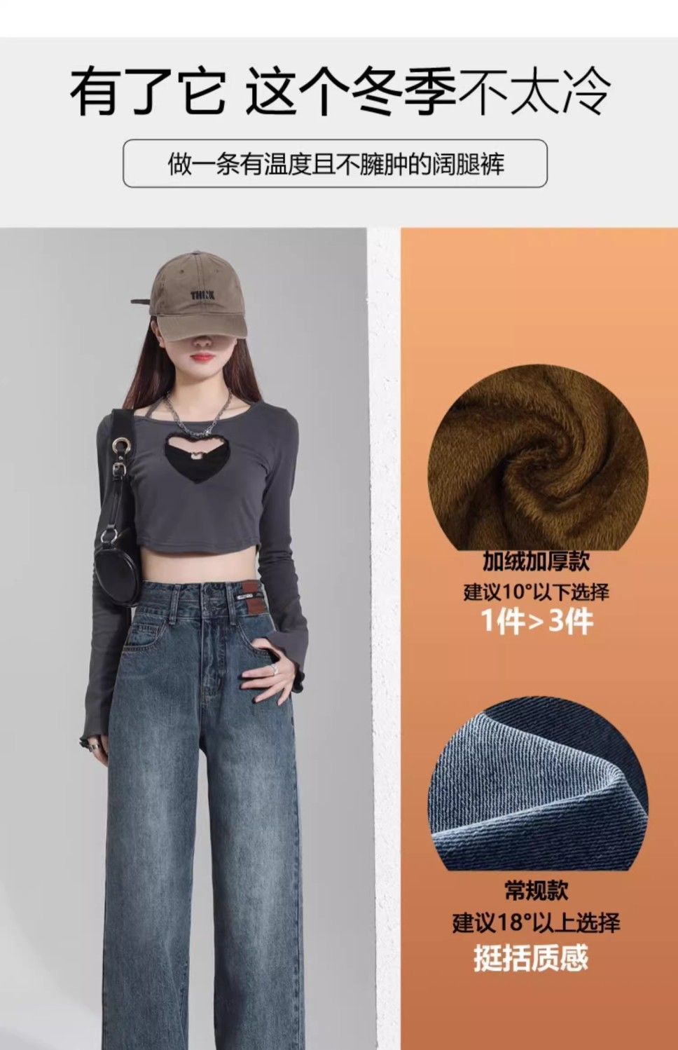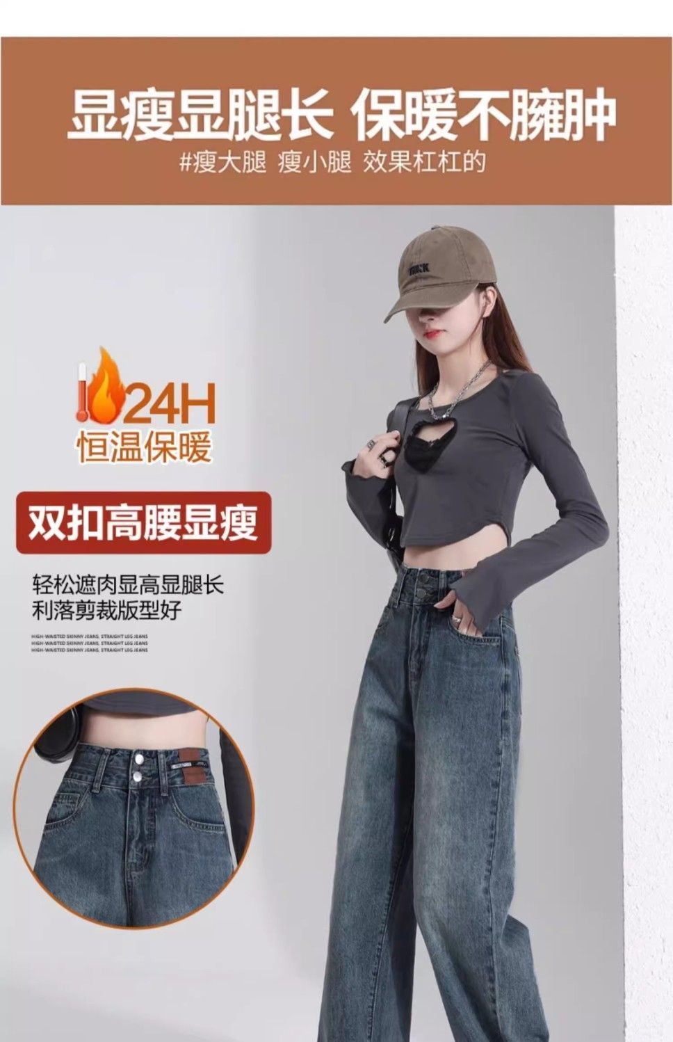 Плюшевые толстые широкие джинсы женские осенние и зимние модели 2024 грушевидное тело с высокой талией узкие прямые брюки