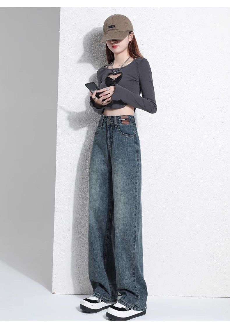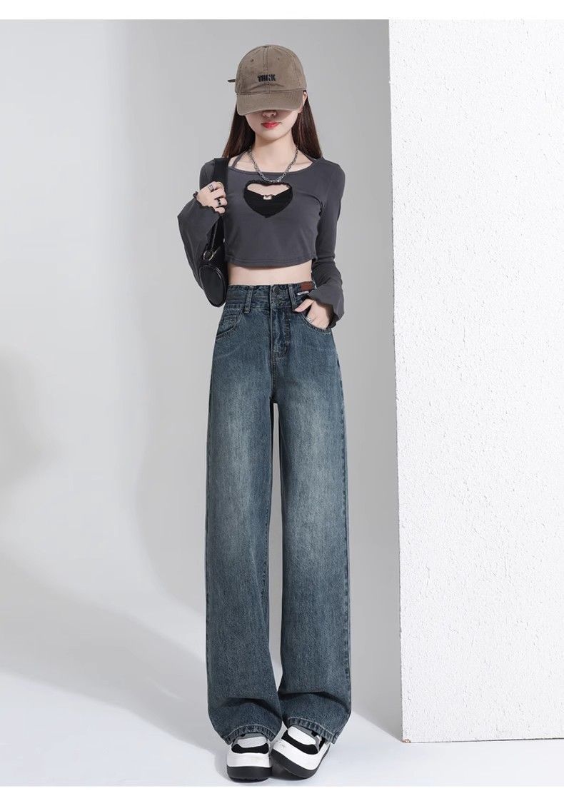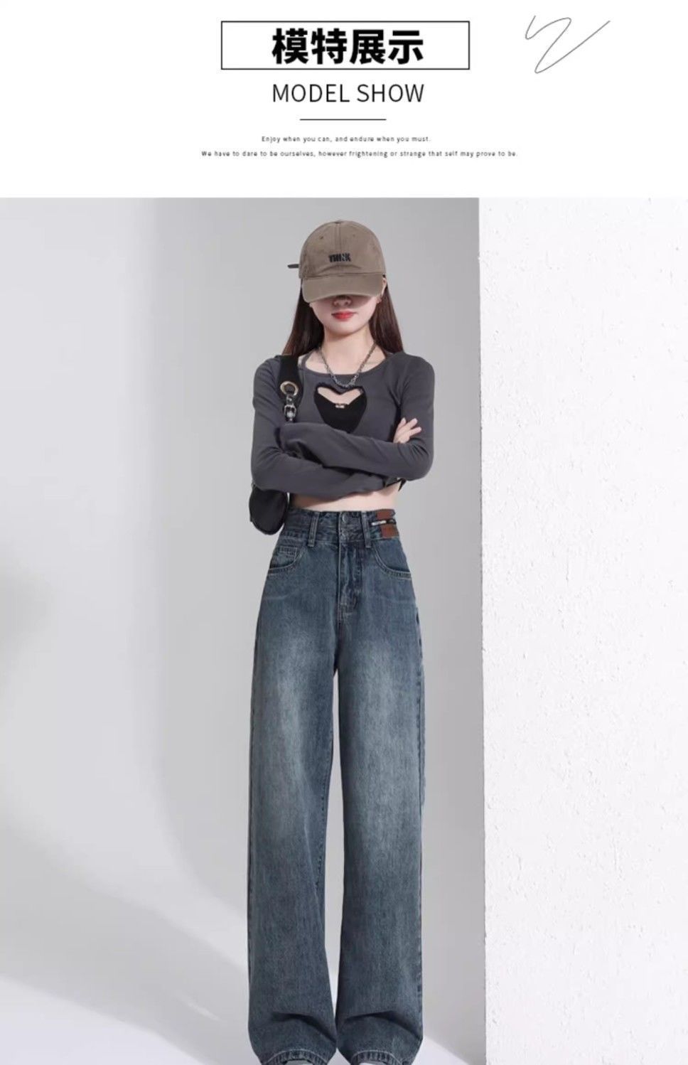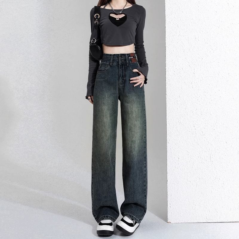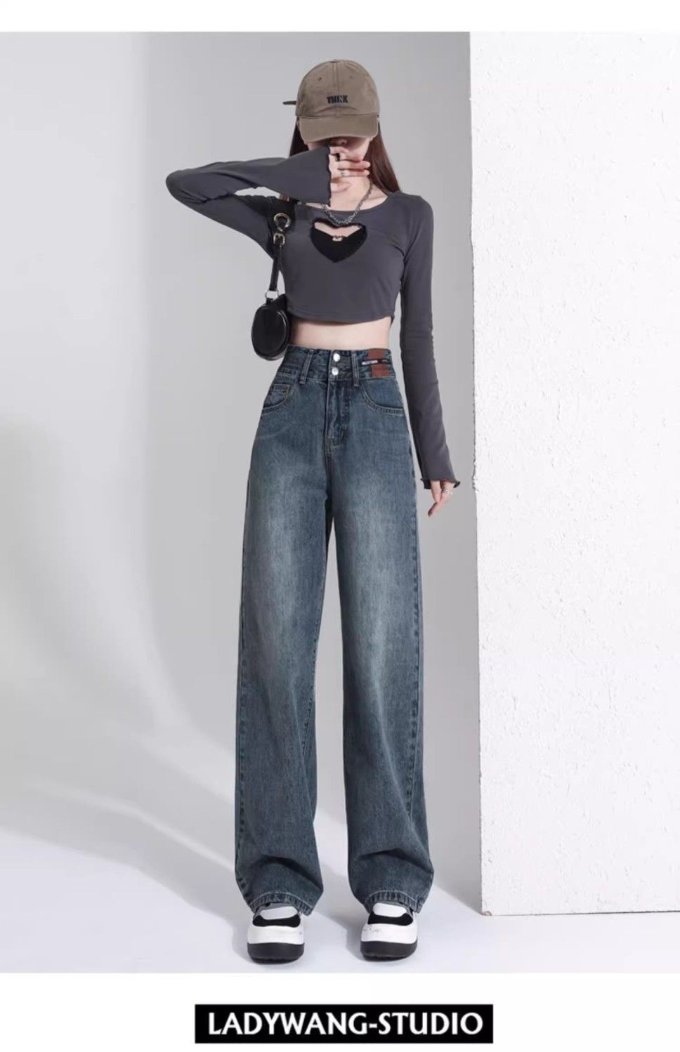 Плюшевые толстые широкие джинсы женские осенние и зимние модели 2024 грушевидное тело с высокой талией узкие прямые брюки