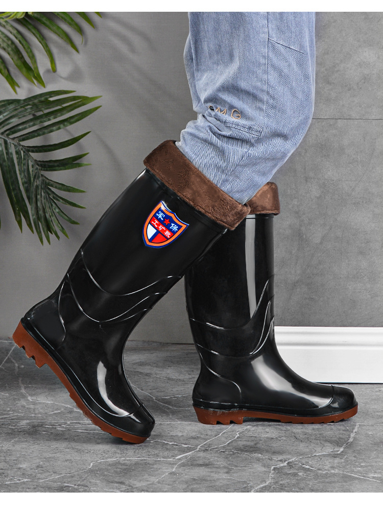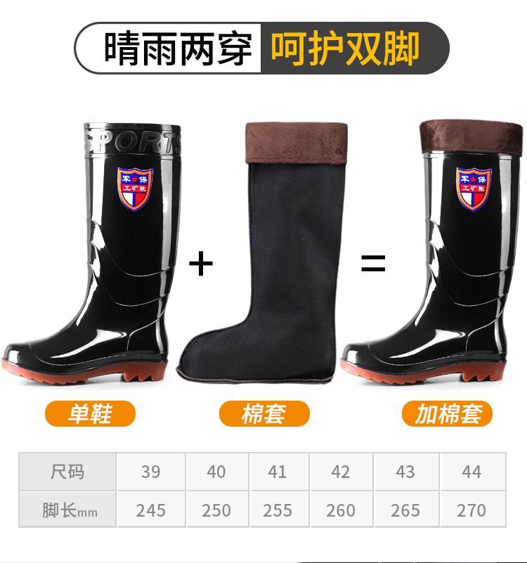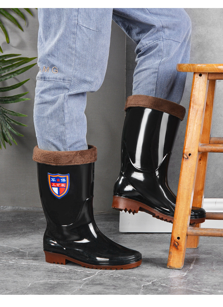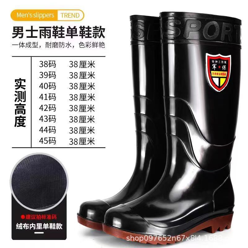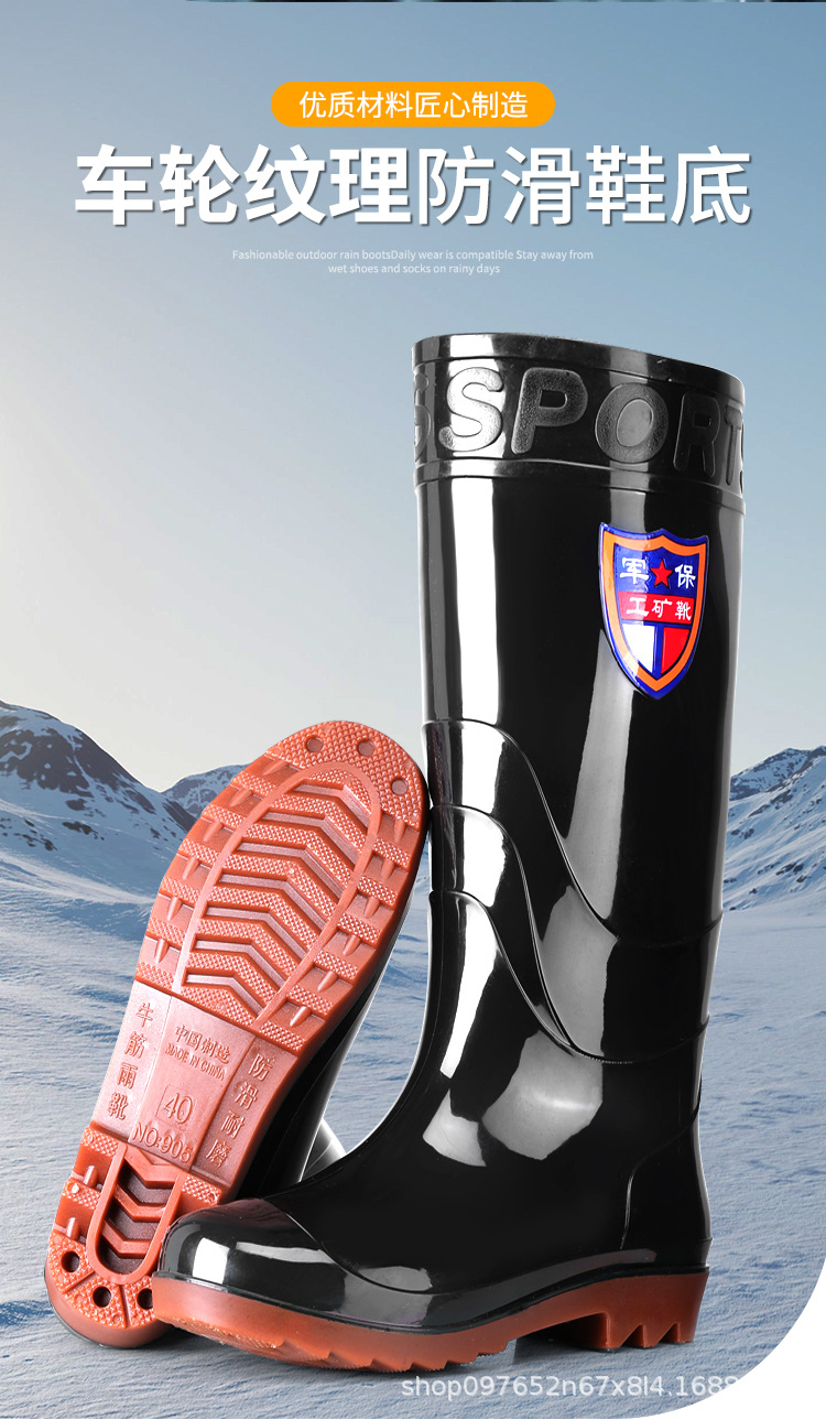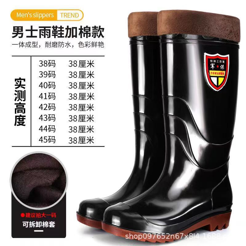 Военное страхование труда Мужская дождевая обувь высокого уровня производитель оптовая утолщенная говяжья сухожилие водяная обувь плюс бархат строительная площадка резиновая обувь рыболовная обувь
