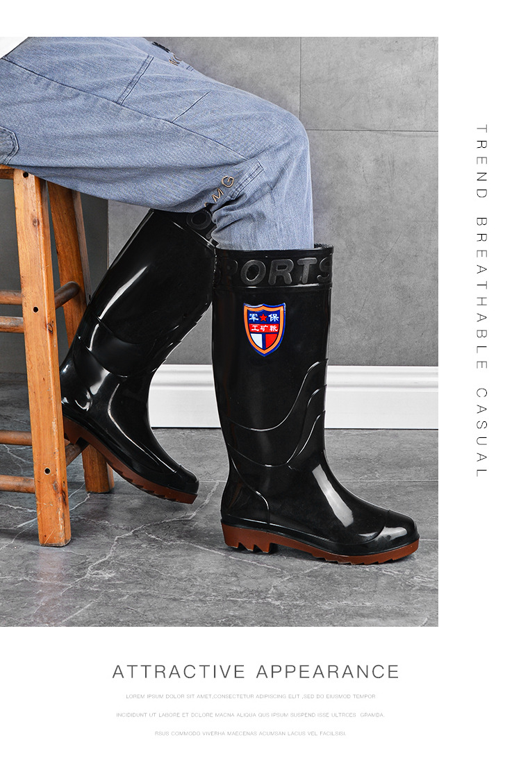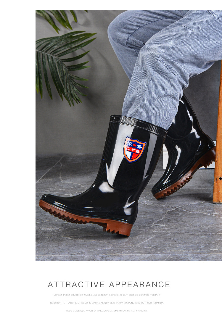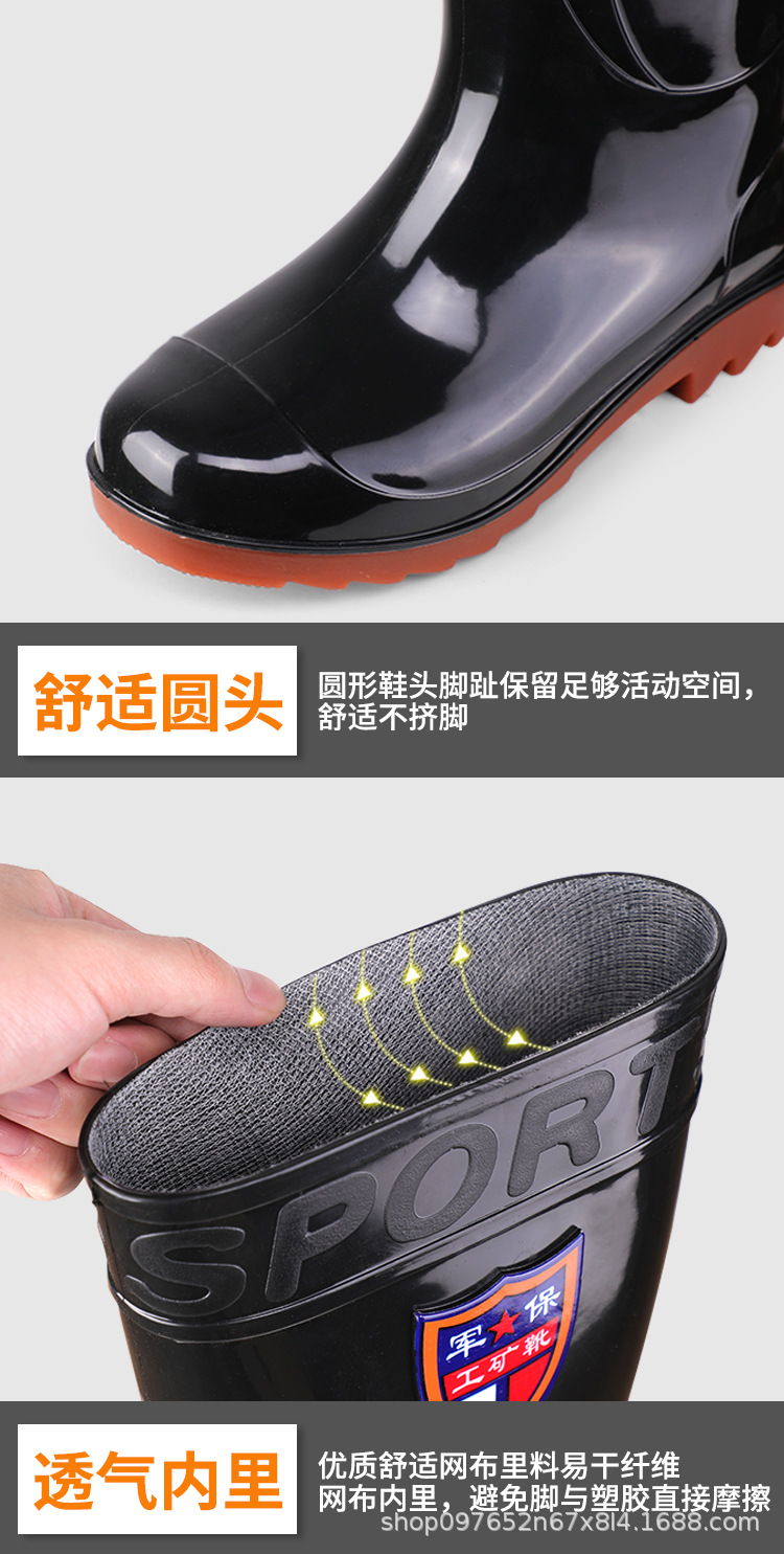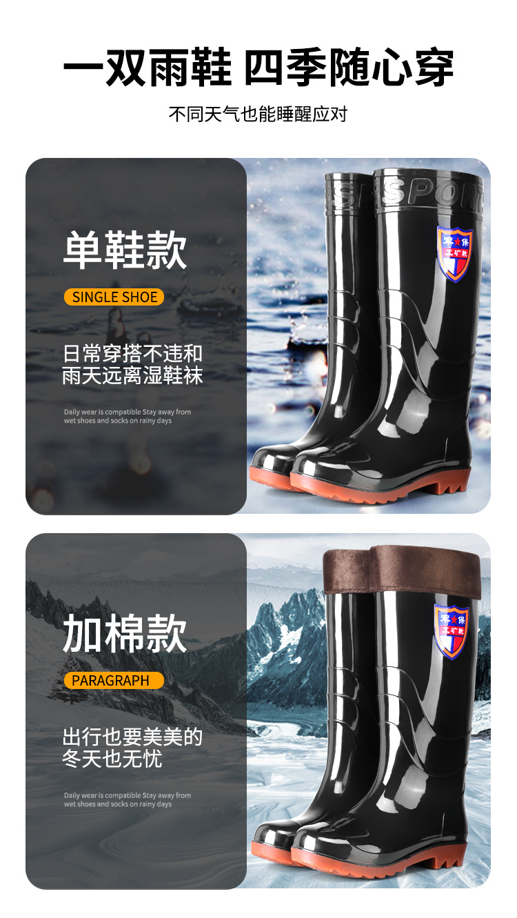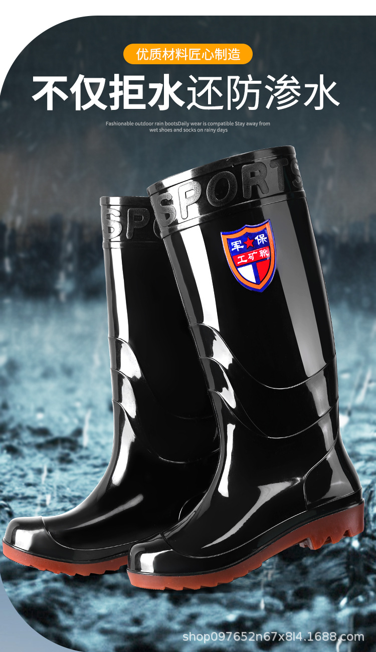 Военное страхование труда Мужская дождевая обувь высокого уровня производитель оптовая утолщенная говяжья сухожилие водяная обувь плюс бархат строительная площадка резиновая обувь рыболовная обувь