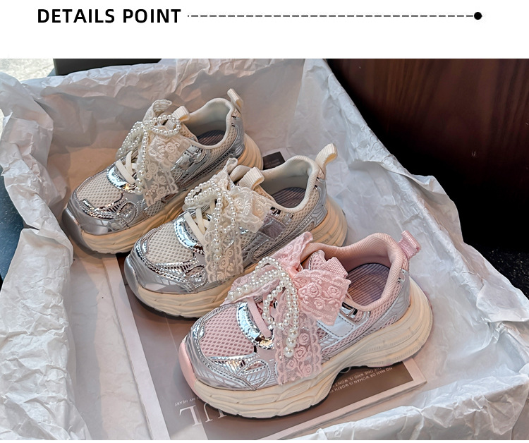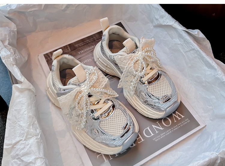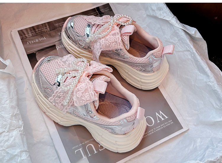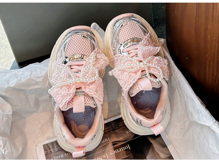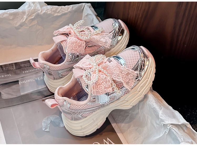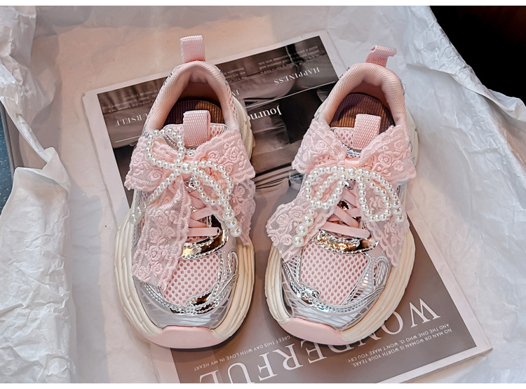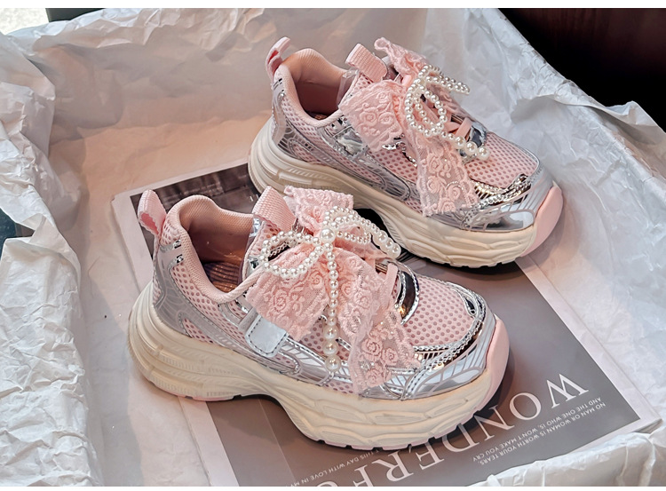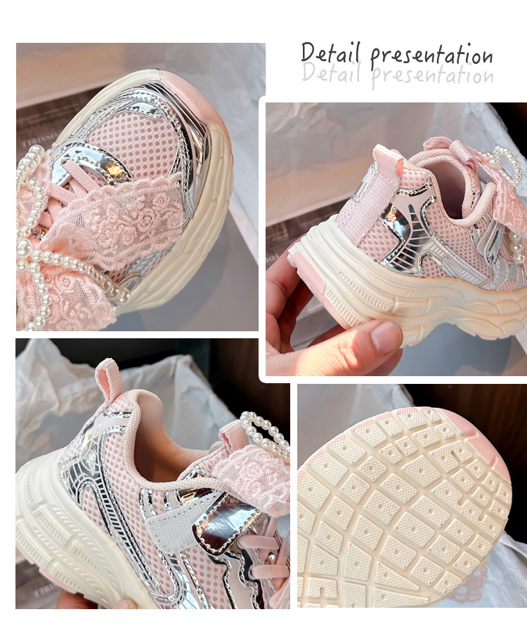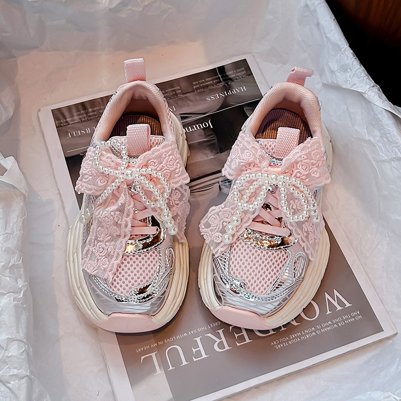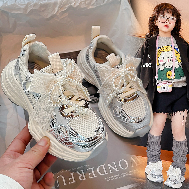 Кроссовки для девочек Симпатичные кроссовки 2025 весна лето новая сетка жемчуг национальный ветер лук обувь для бега