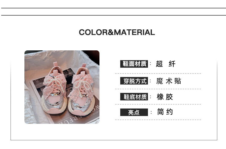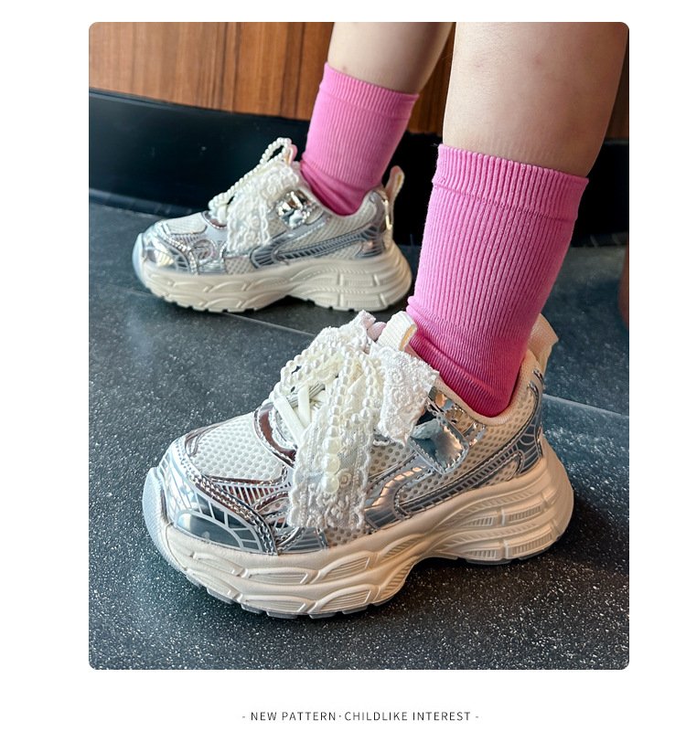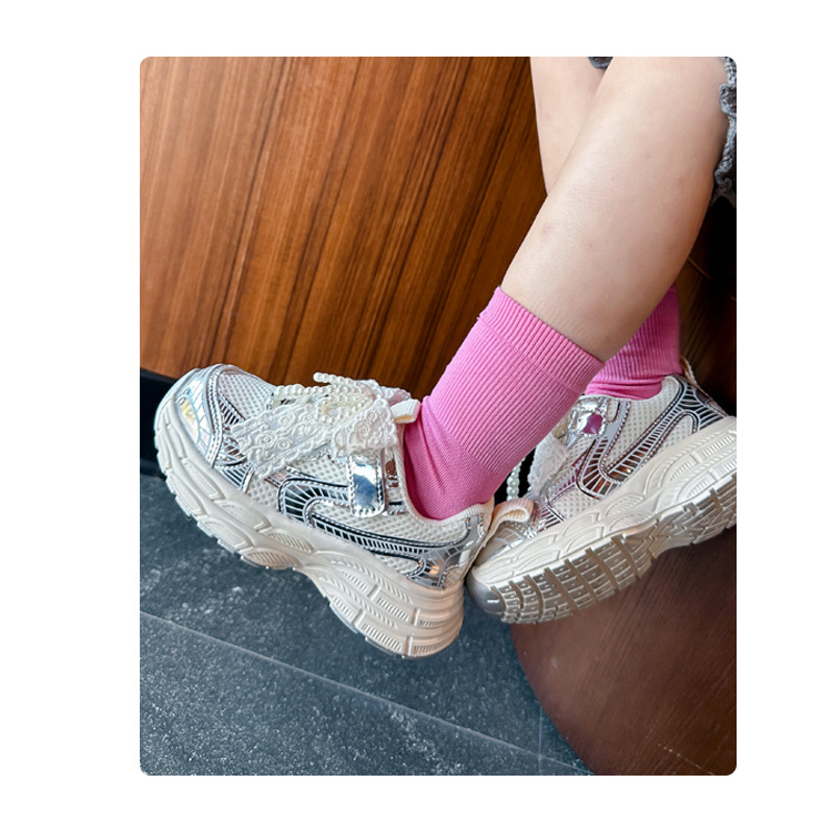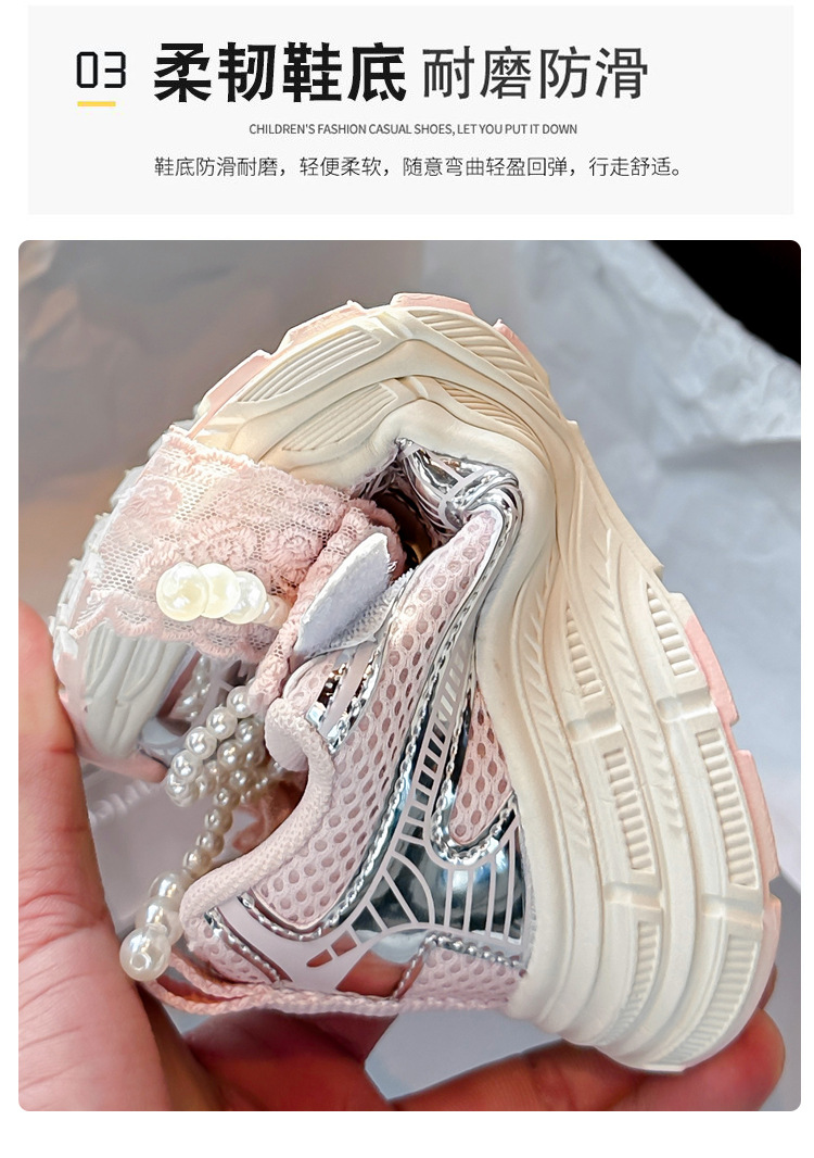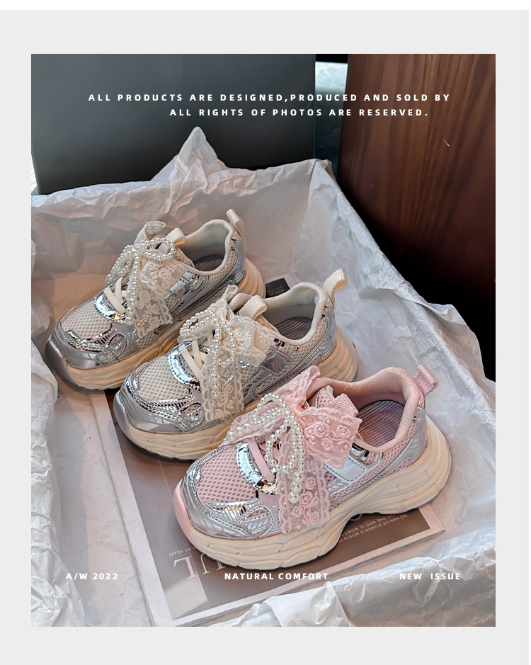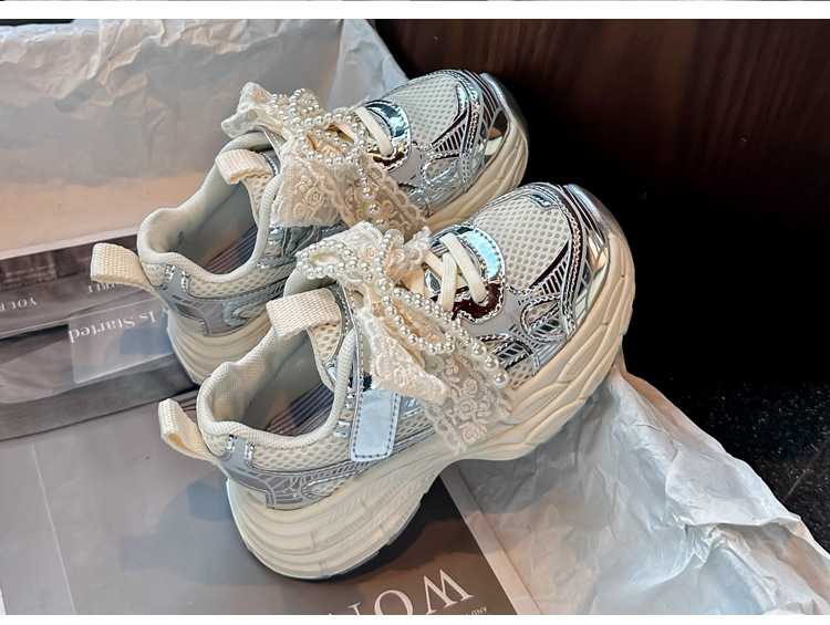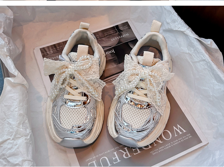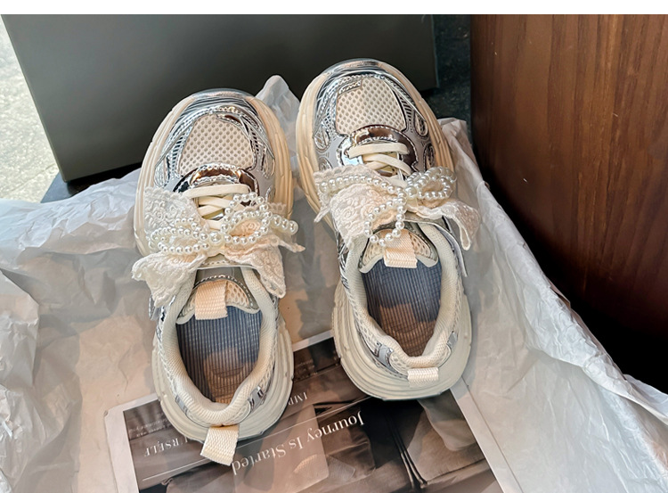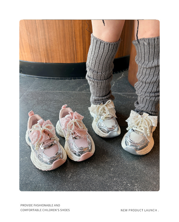 Кроссовки для девочек Симпатичные кроссовки 2025 весна лето новая сетка жемчуг национальный ветер лук обувь для бега
